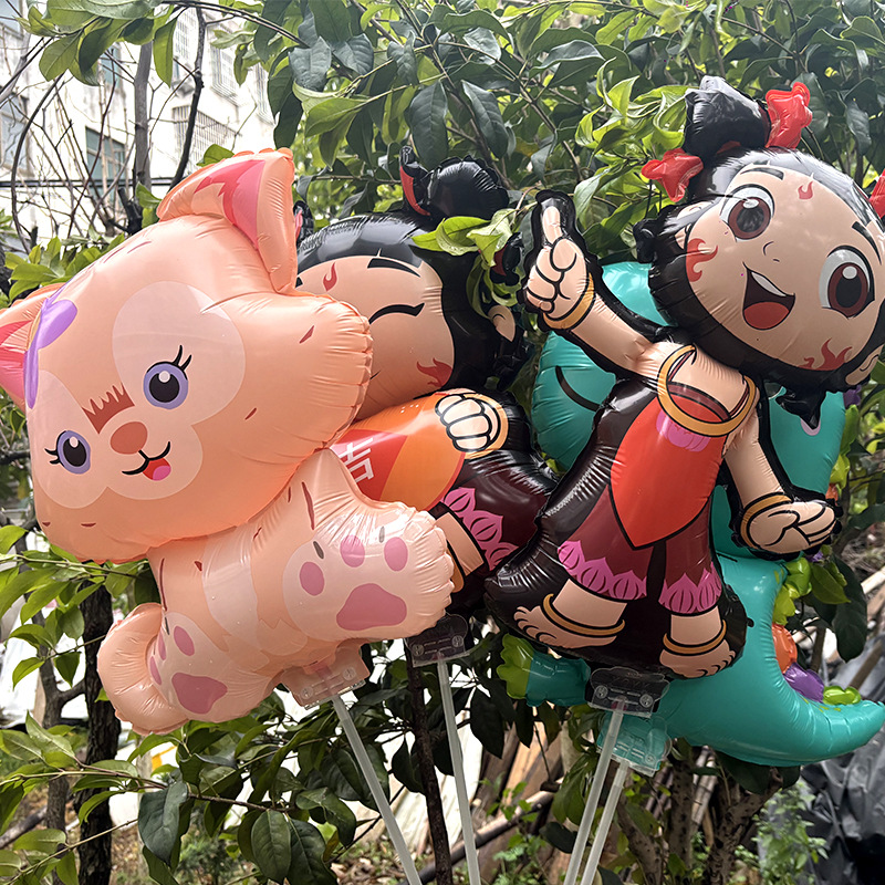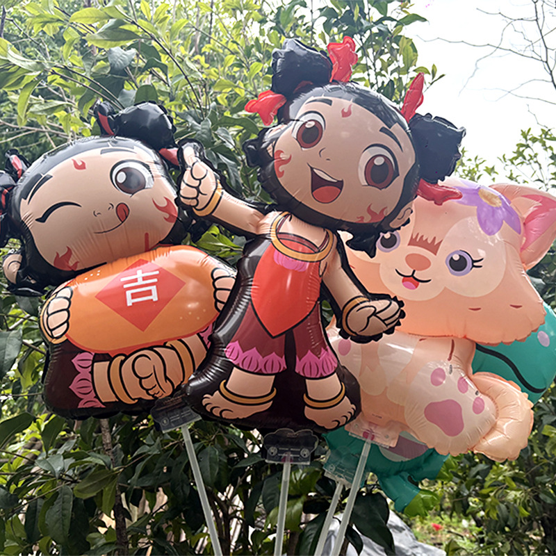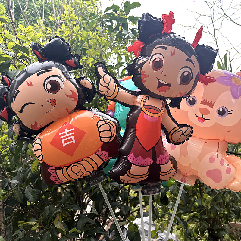 2025 새로운 알루미늄 필름 클립 풍선 Nezha 악마 어린이 만화 스톨 도매 휴대용 풍선 폭발스토어 가기