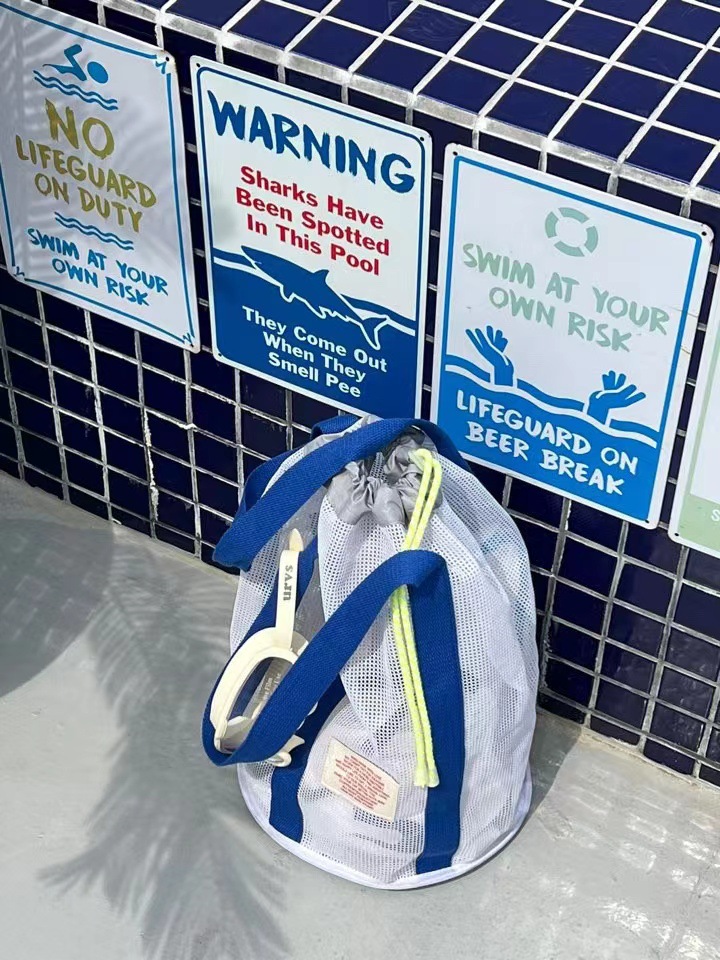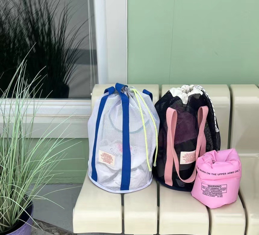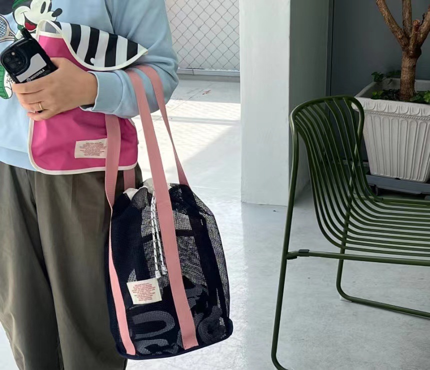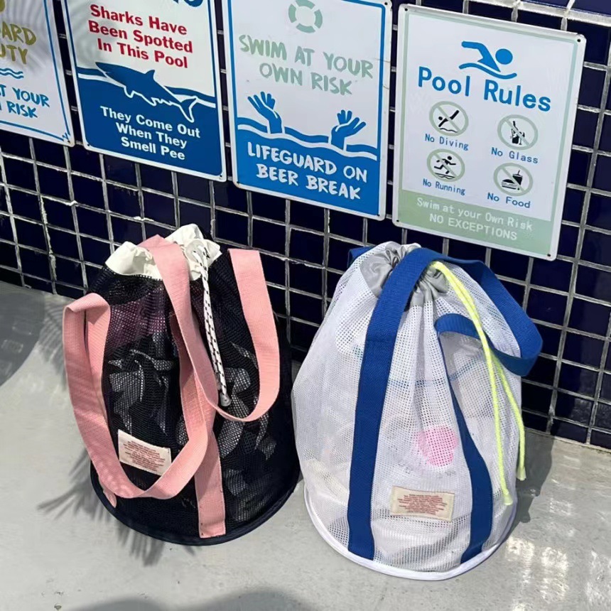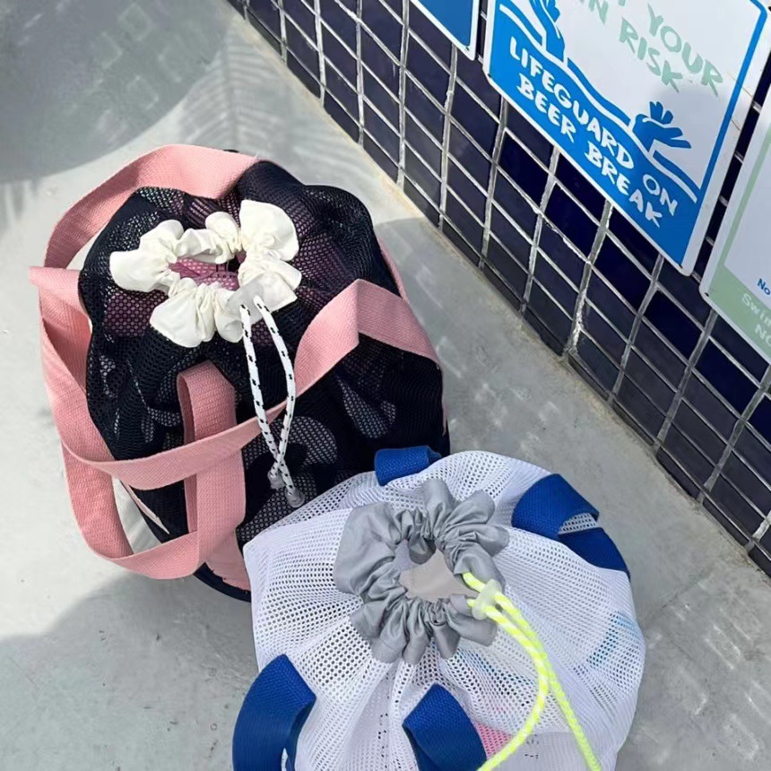 한국 인즈 휴가 여행 비치 백 메쉬 번들 포켓 대용량 핸드백 수영 통기성 메쉬 보관 가방