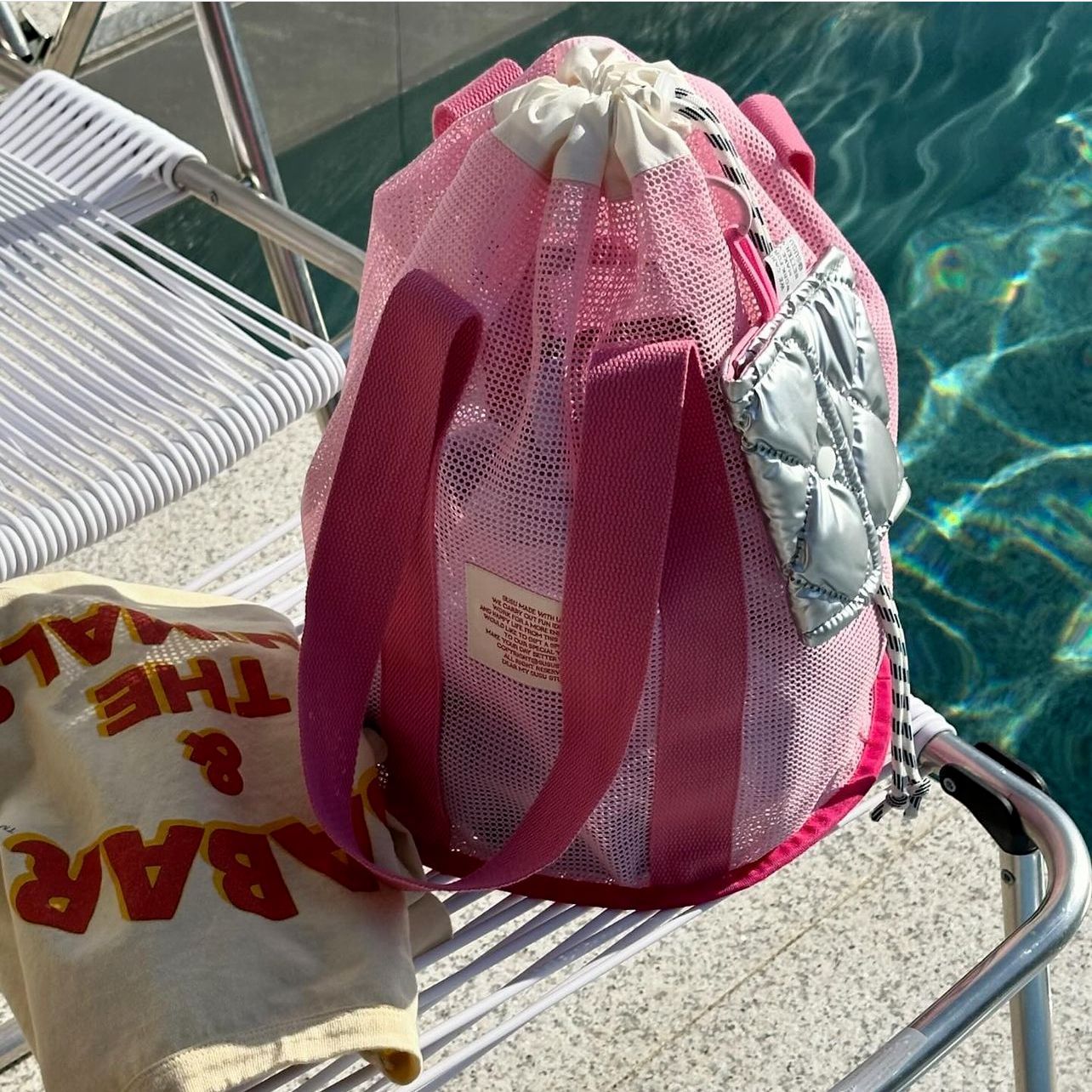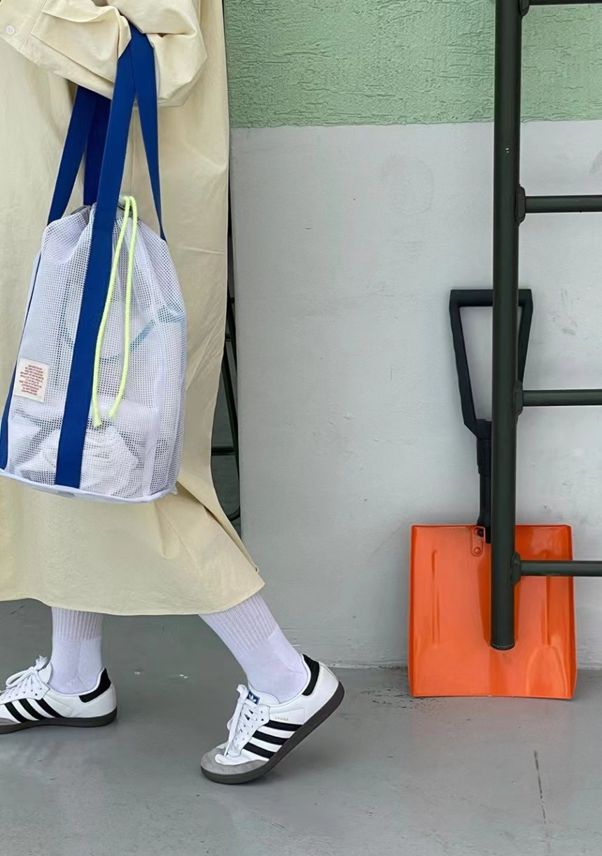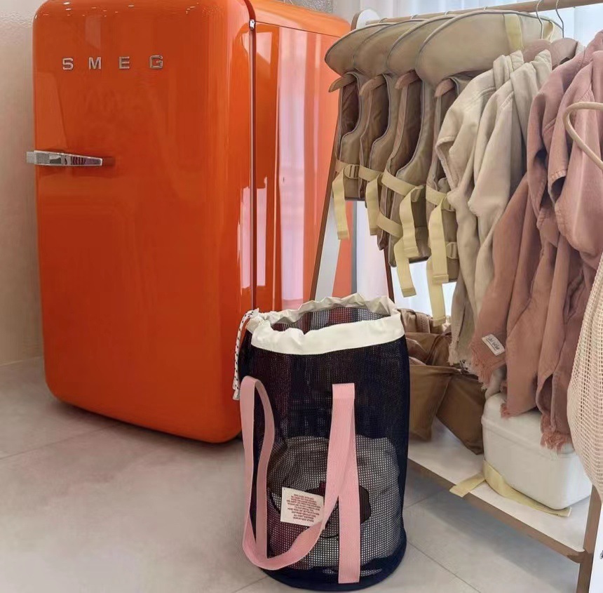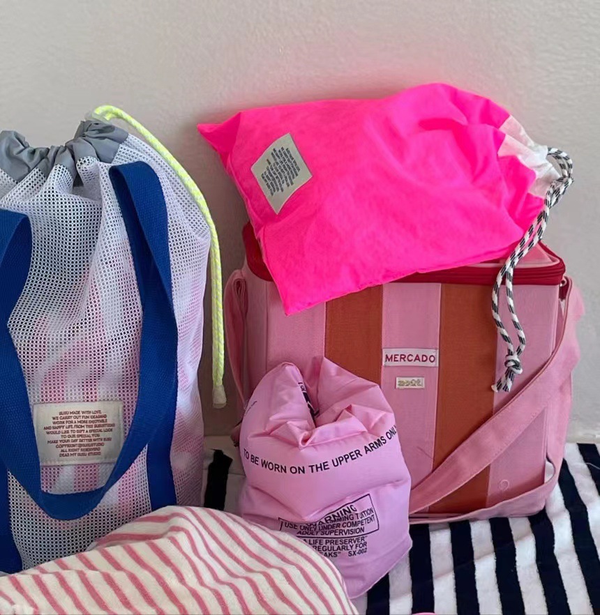 한국 인즈 휴가 여행 비치 백 메쉬 번들 포켓 대용량 핸드백 수영 통기성 메쉬 보관 가방