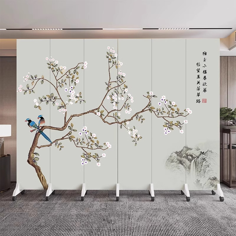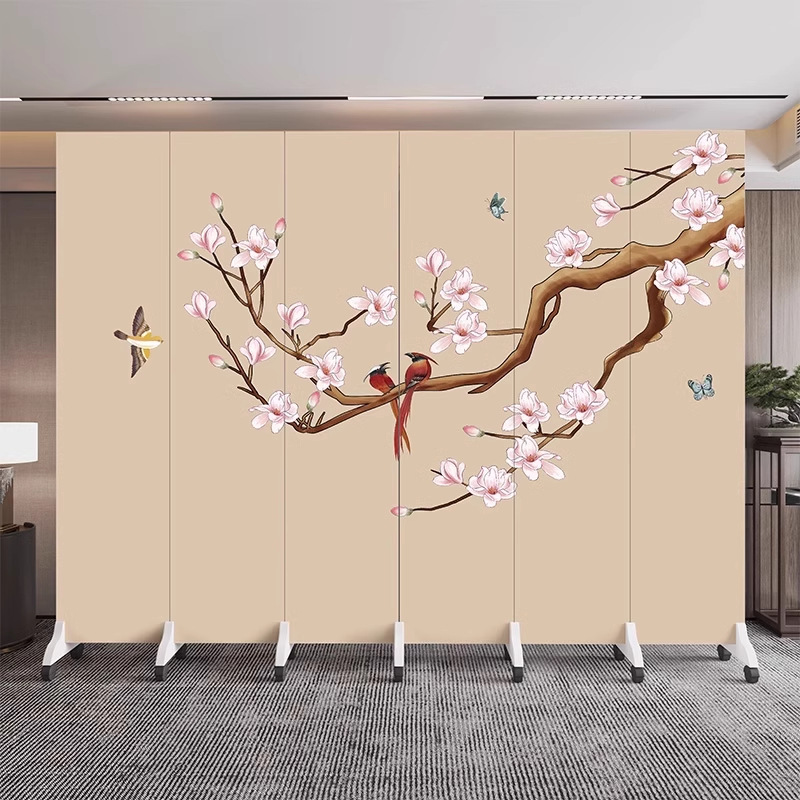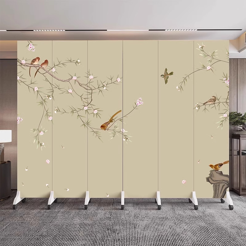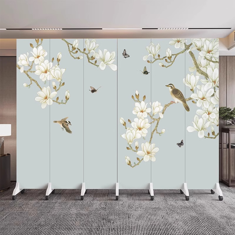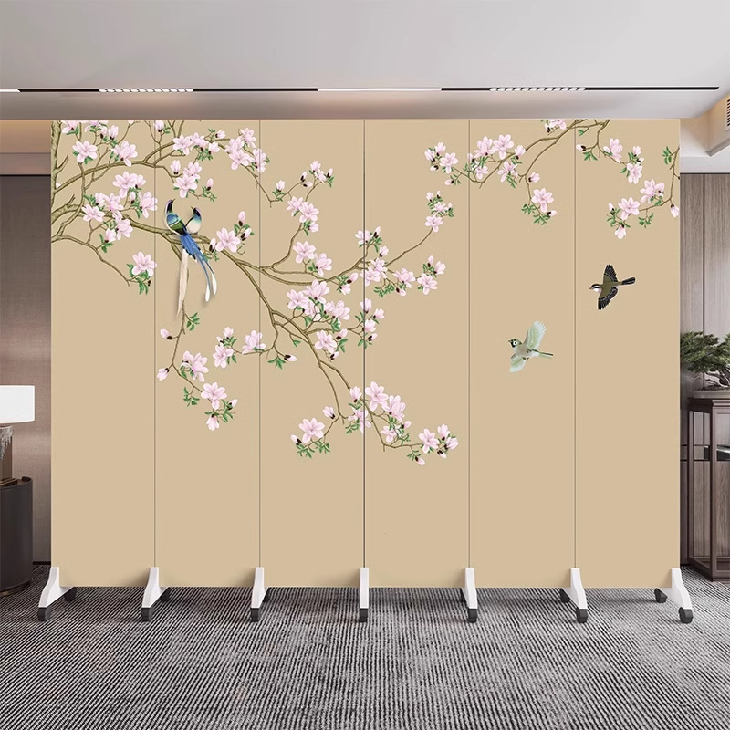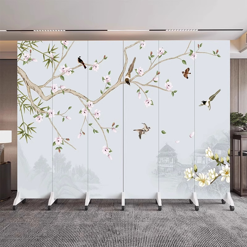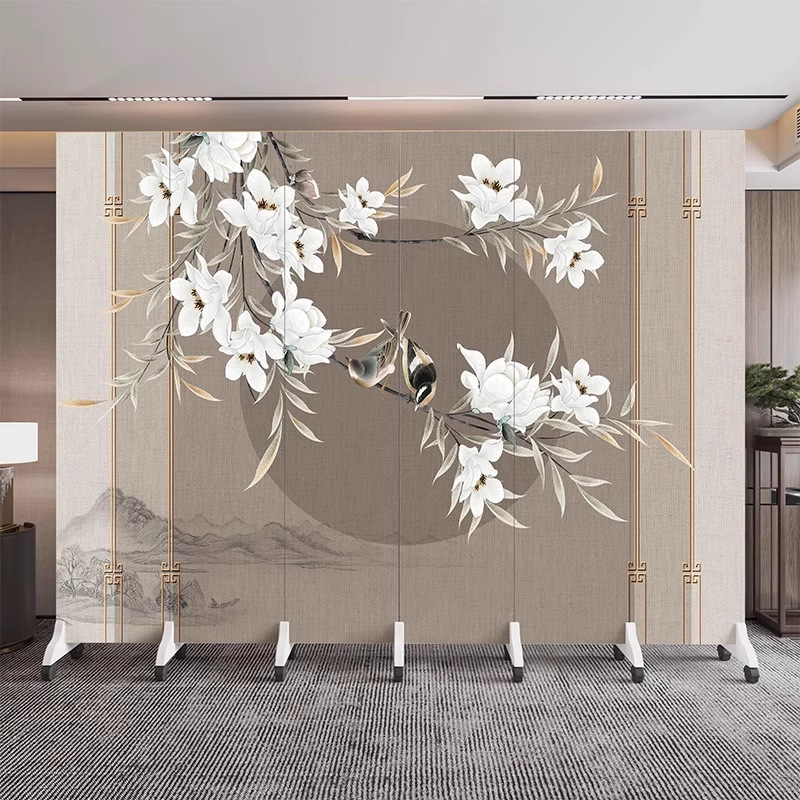 새로운 중국식 오피스 스크린 파티션 거실 도어 투 도어 가정용 접이식 이동식 호텔 로비 꽃과 새
