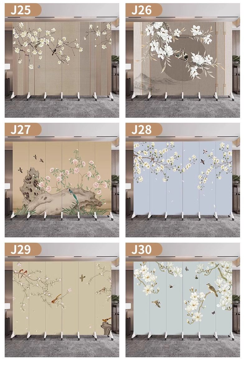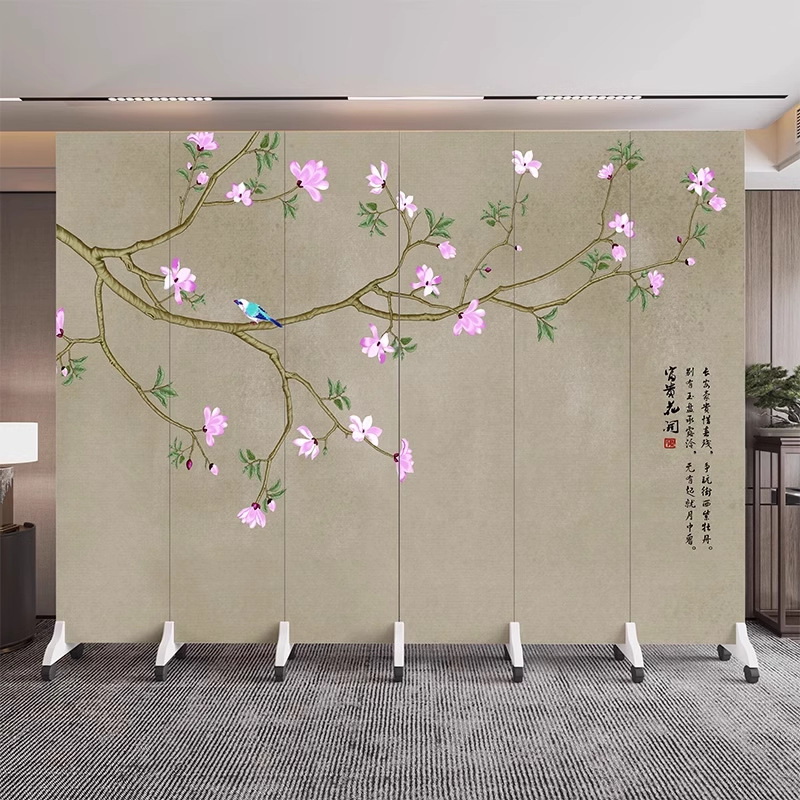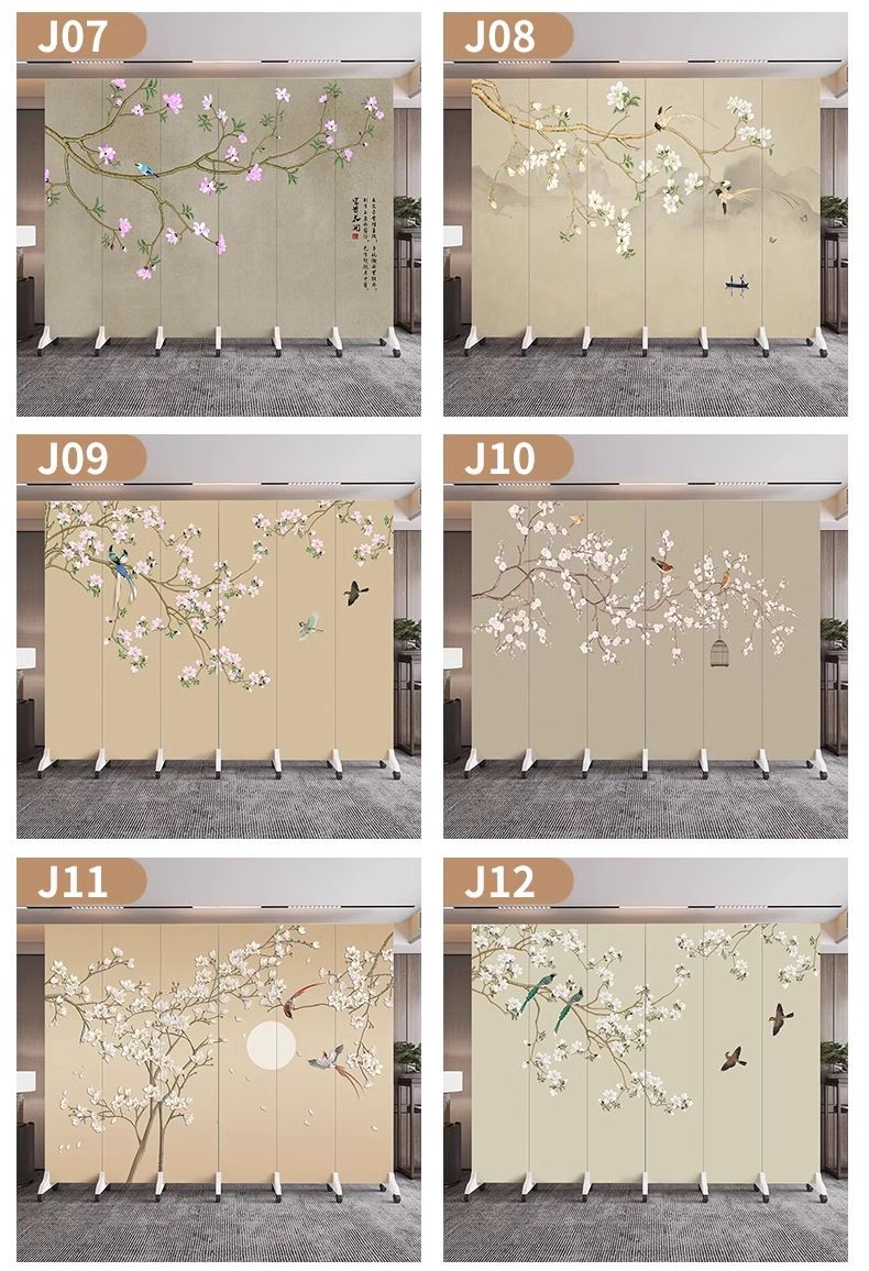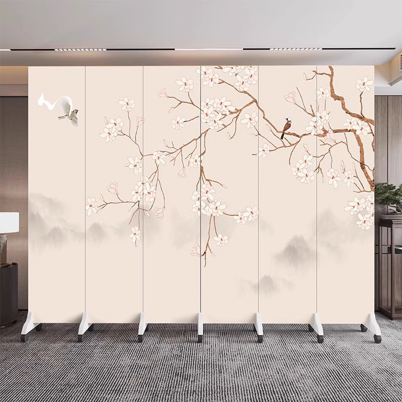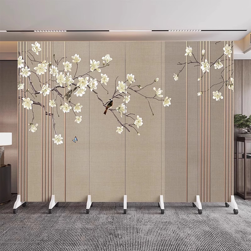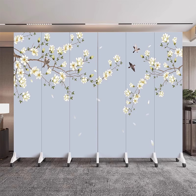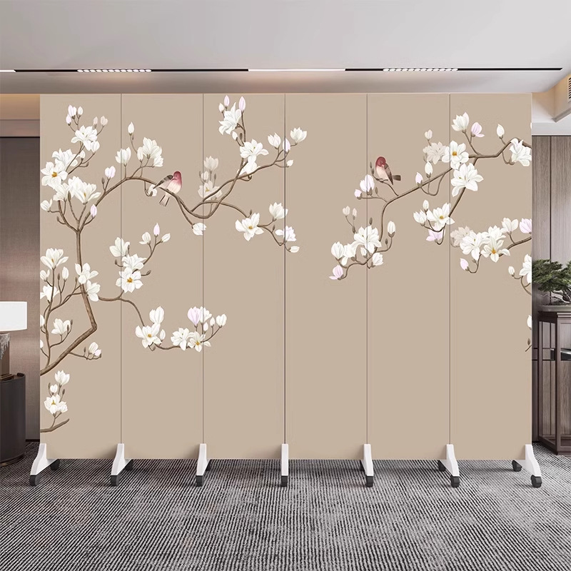 새로운 중국식 오피스 스크린 파티션 거실 도어 투 도어 가정용 접이식 이동식 호텔 로비 꽃과 새