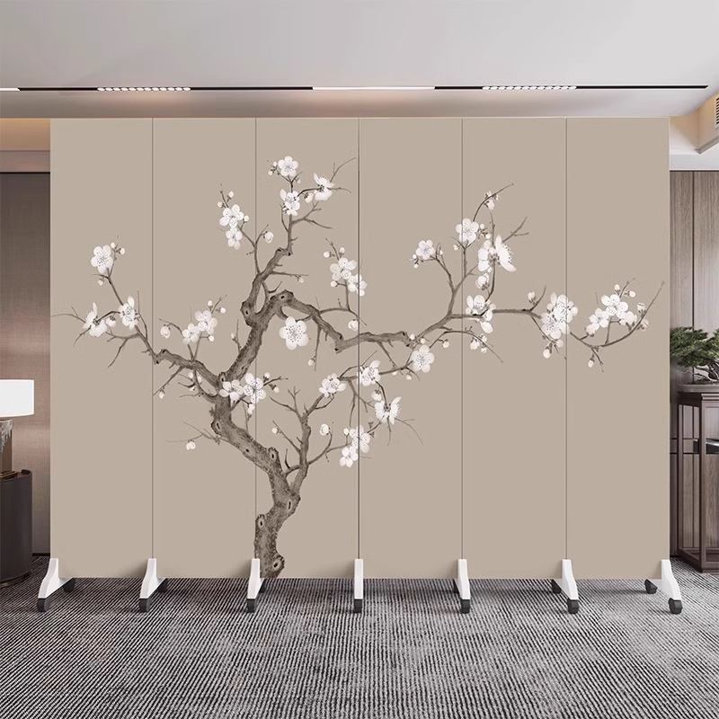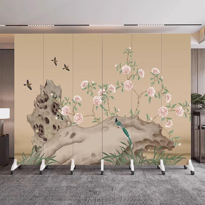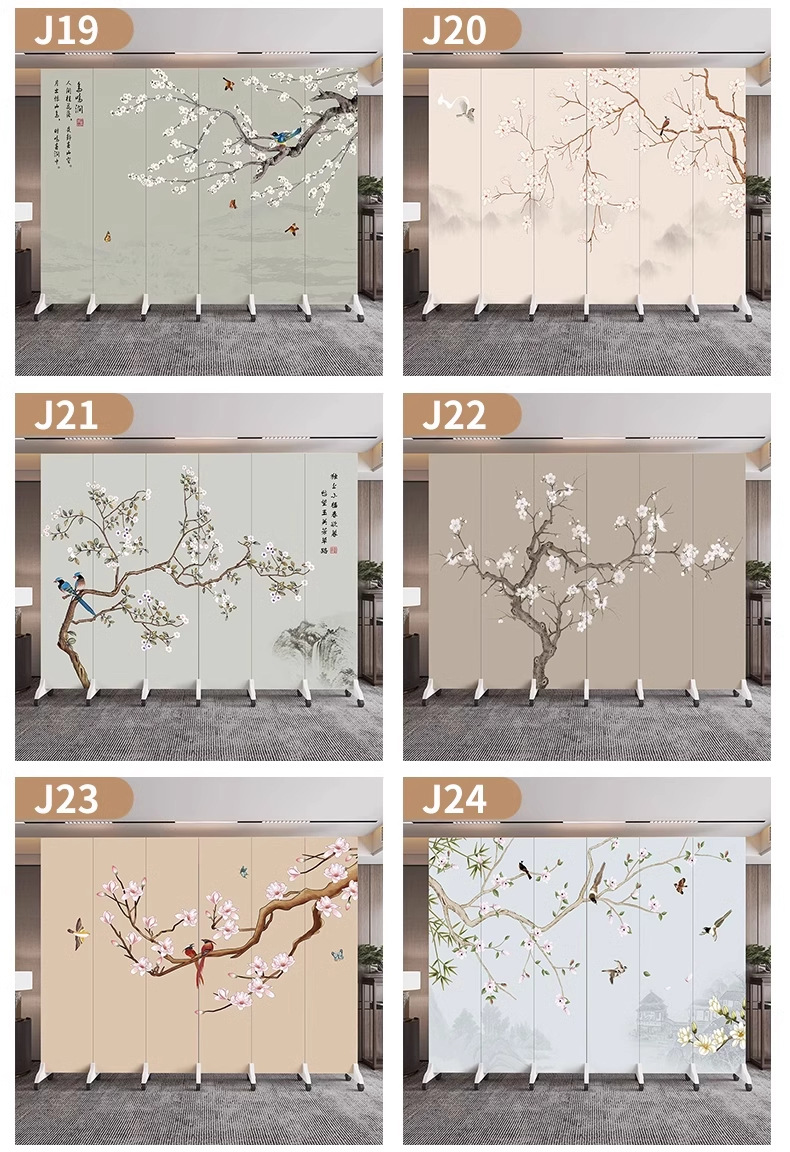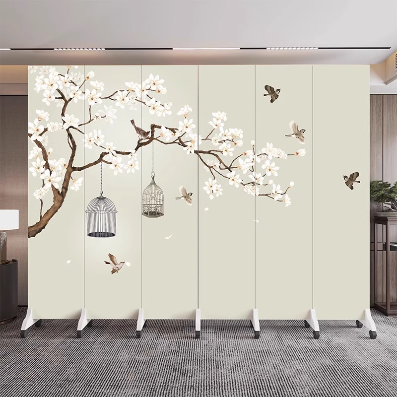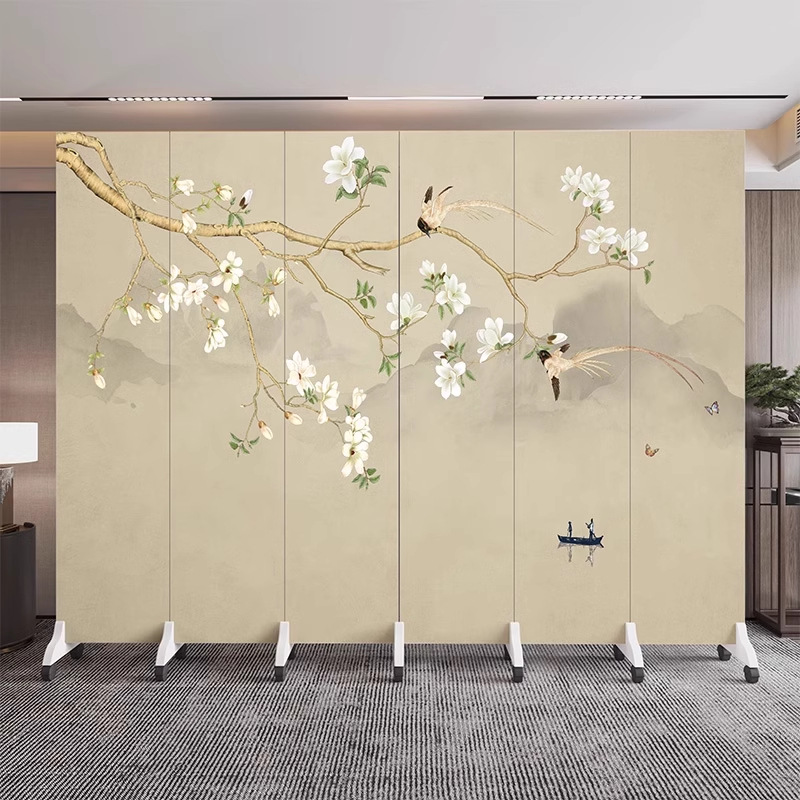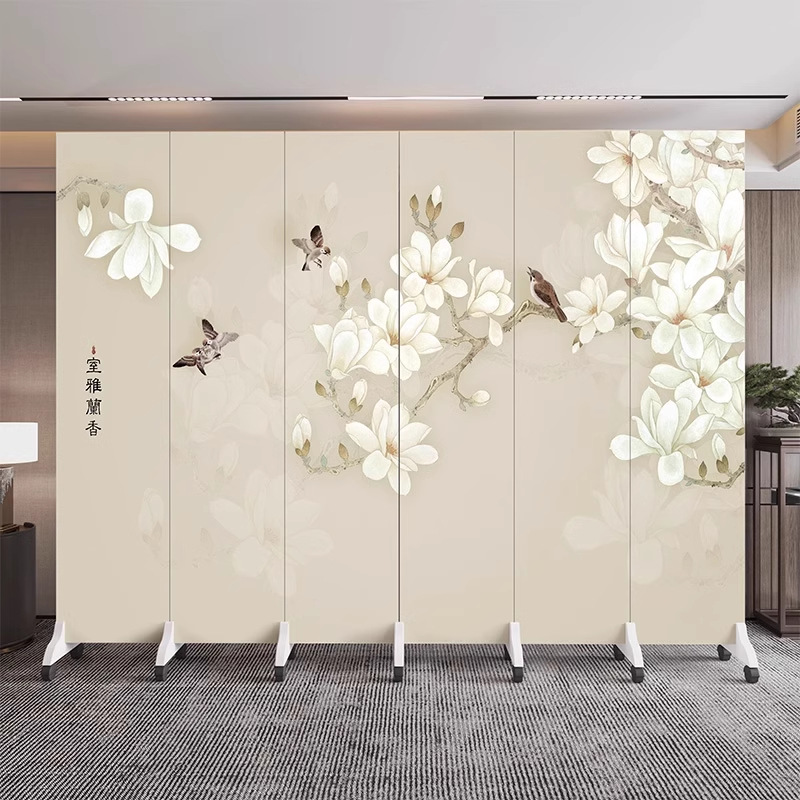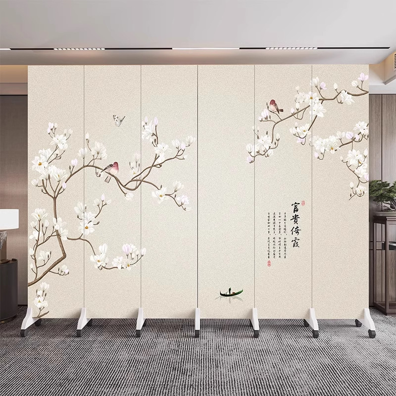 새로운 중국식 오피스 스크린 파티션 거실 도어 투 도어 가정용 접이식 이동식 호텔 로비 꽃과 새
