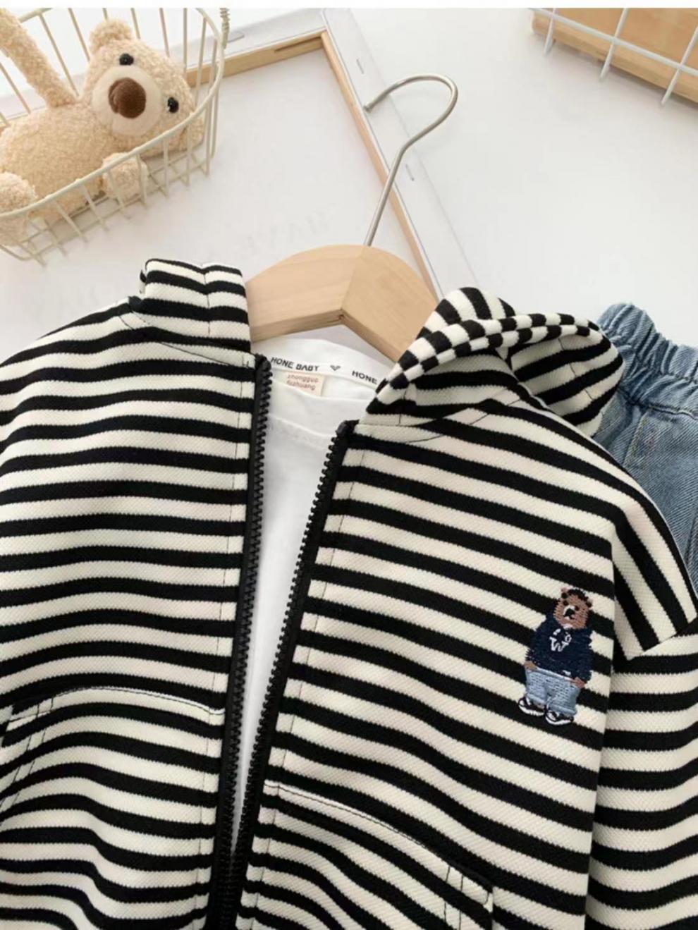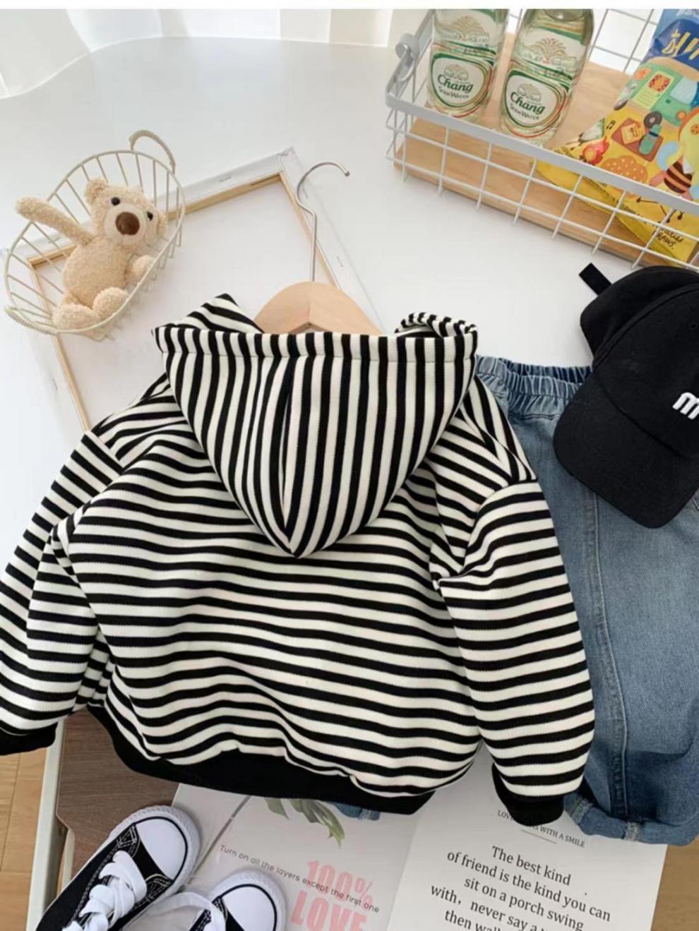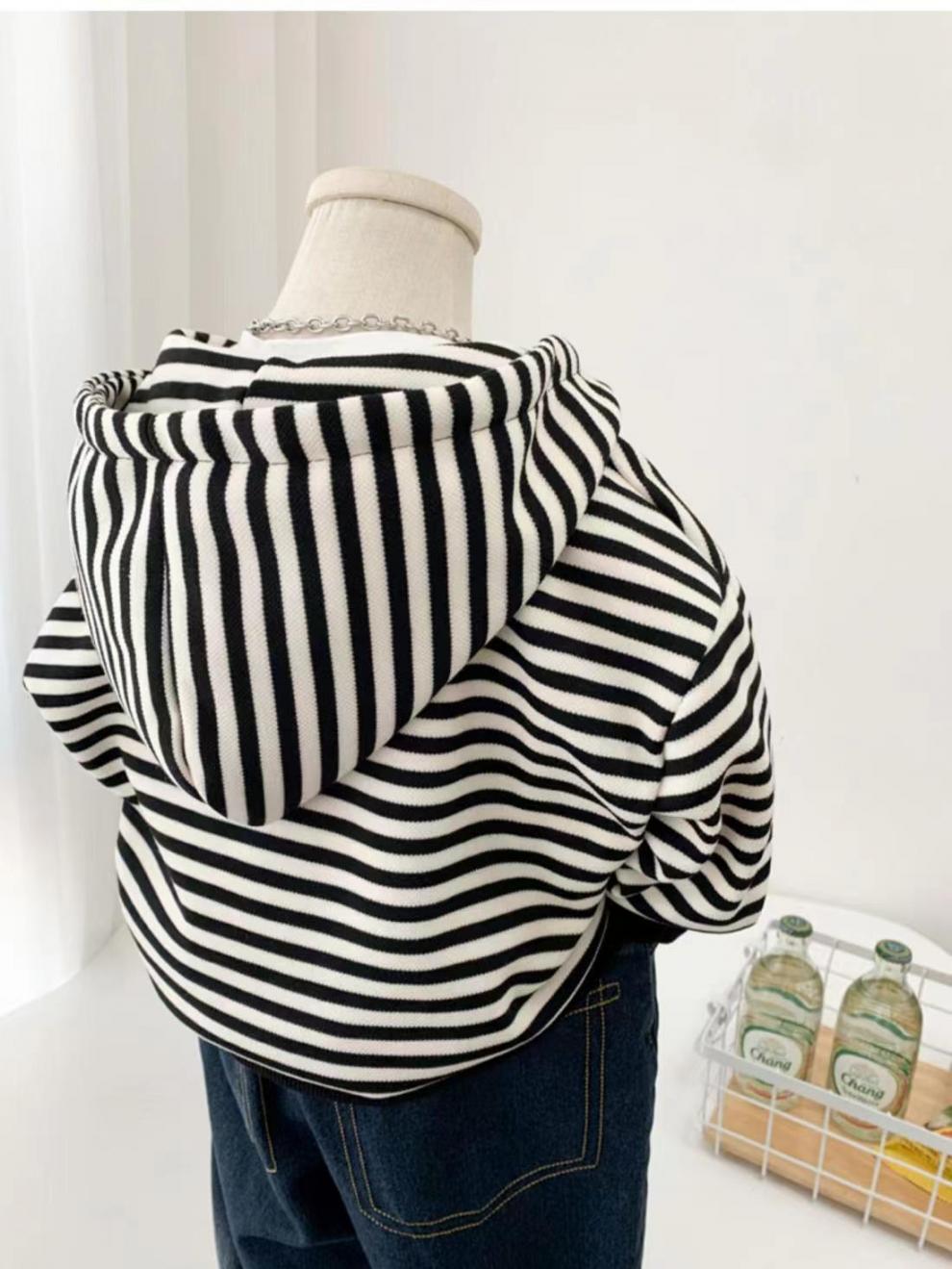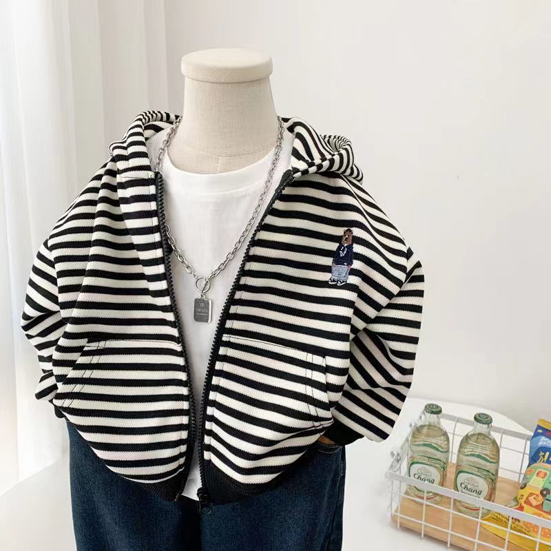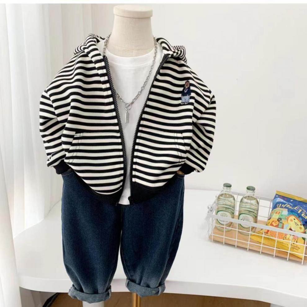 소년 스트라이프 코트 봄, 가을 2025 새로운 한국어 스타일 어린이 캐주얼 스웨터 후드 어린이 카디건스토어 가기