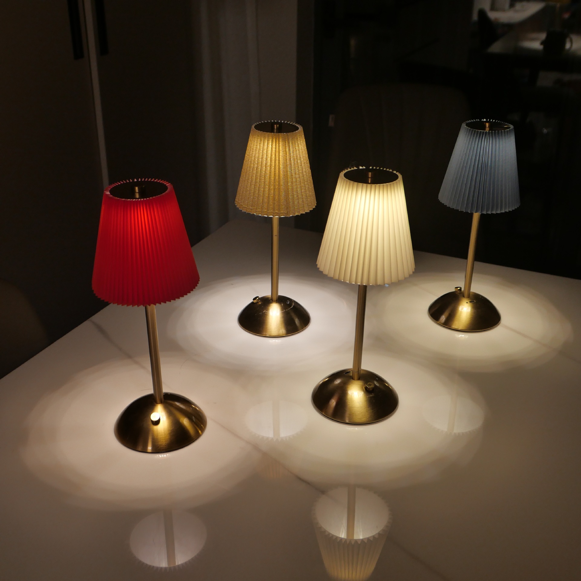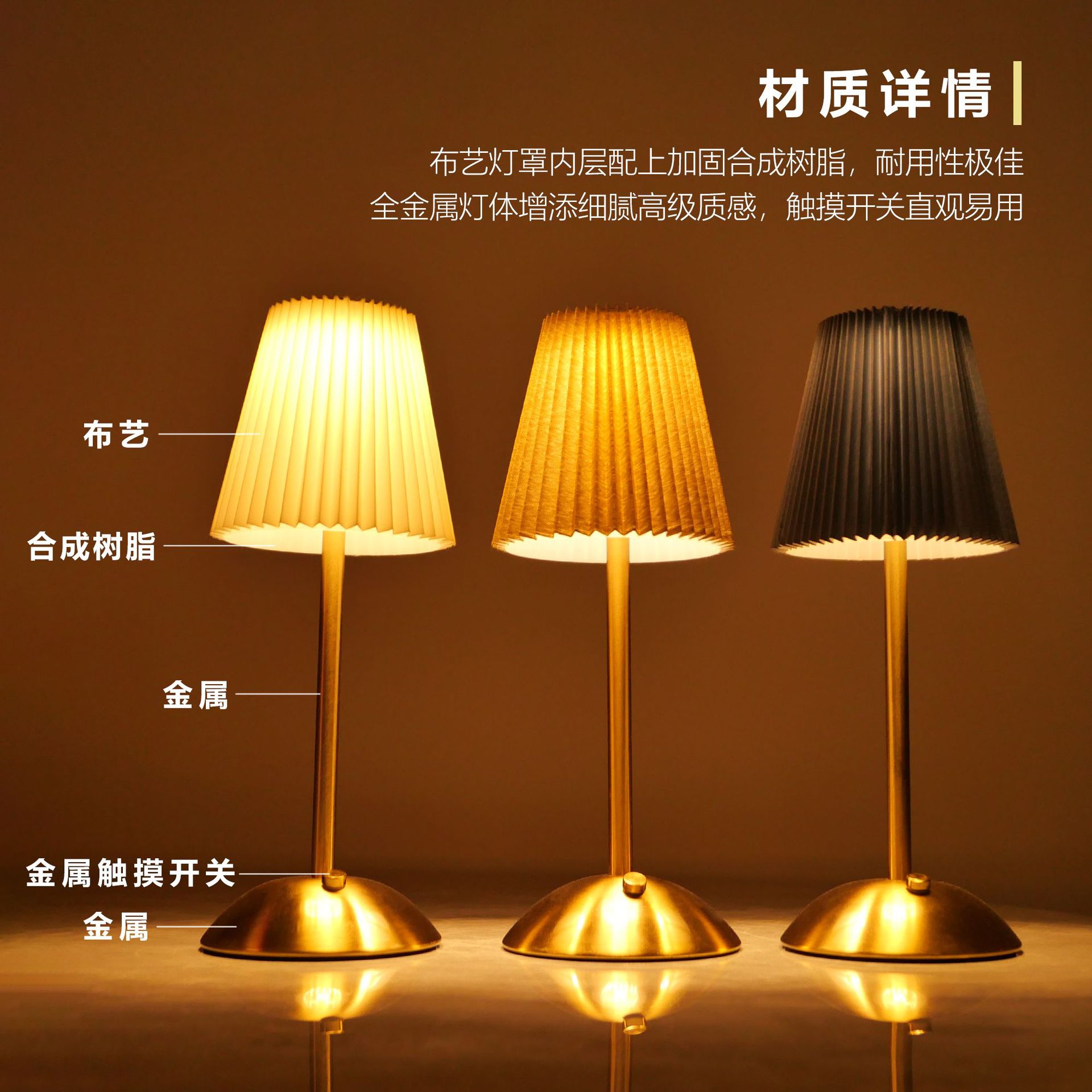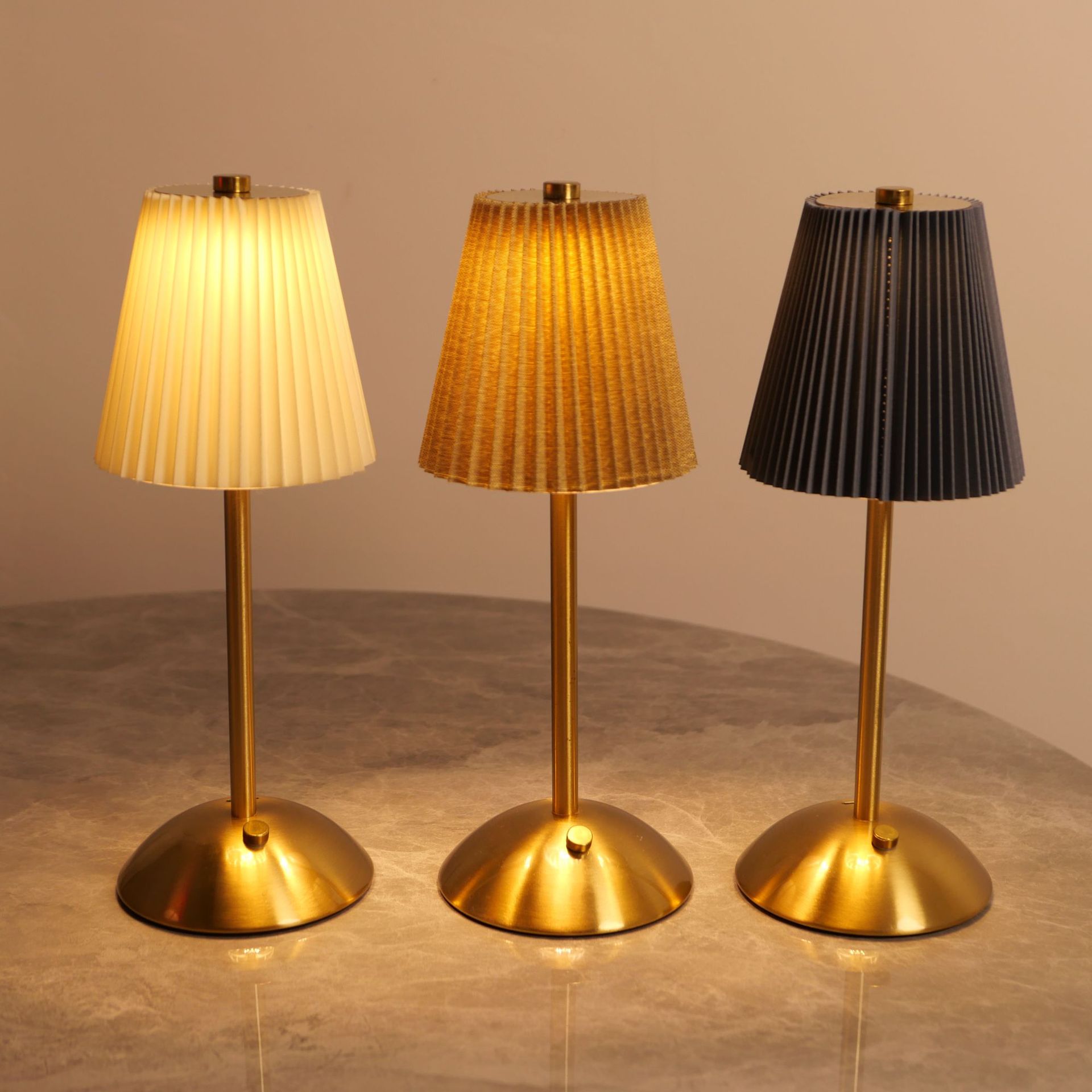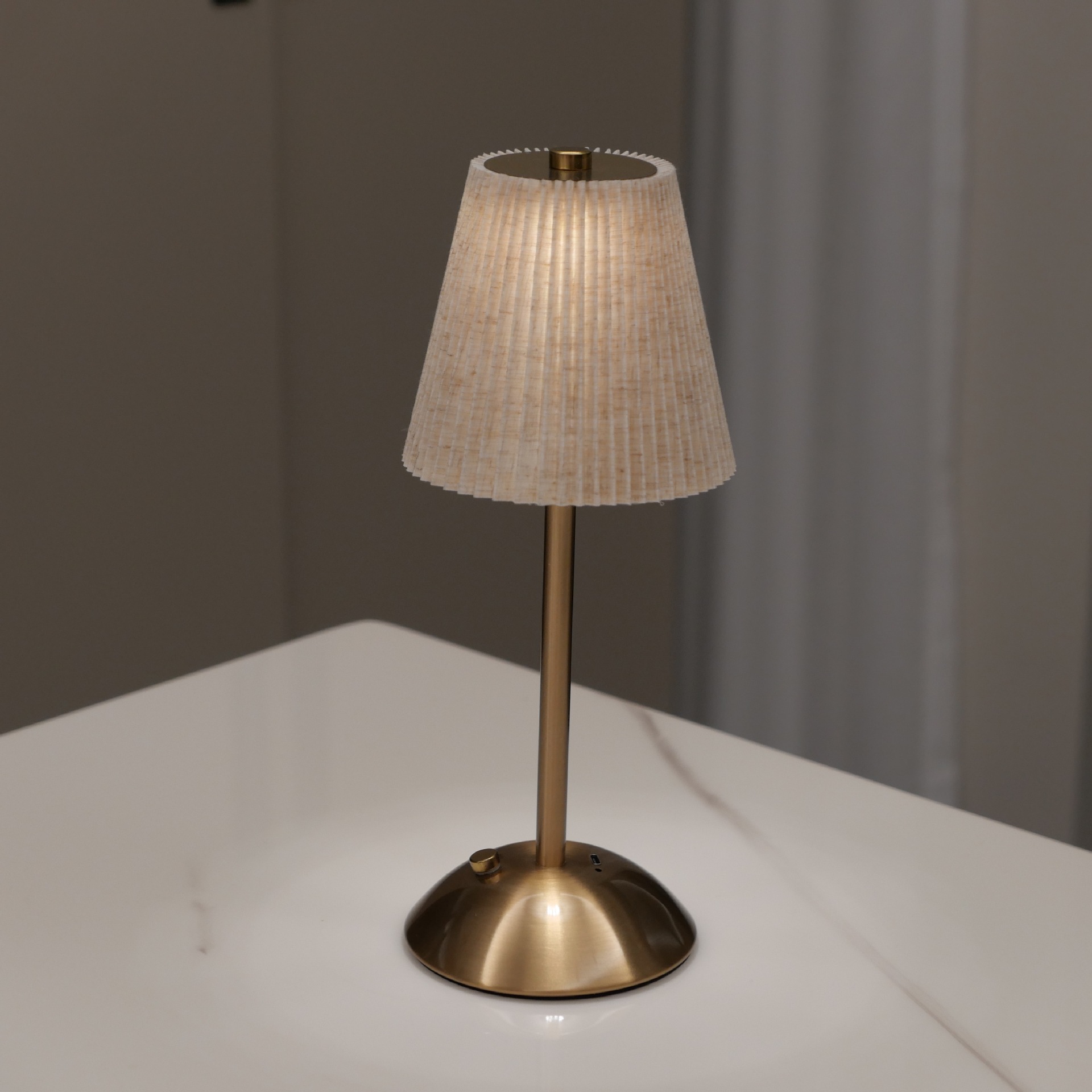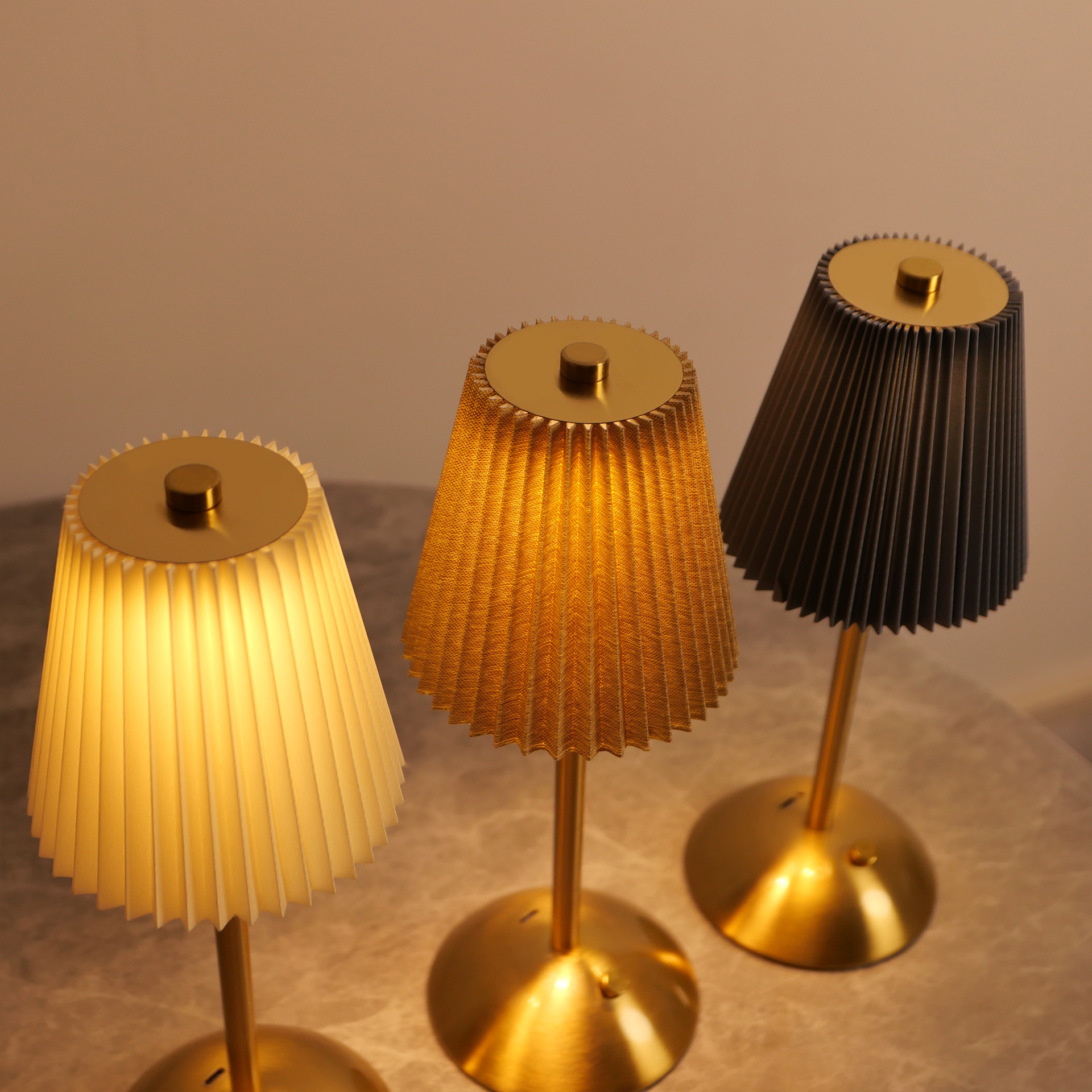 국경 간 아마존 침대 옆 복고풍 테이블 램프 북유럽 주름 패브릭 금속 테이블 램프 충전식 레스토랑 바 분위기 램프
