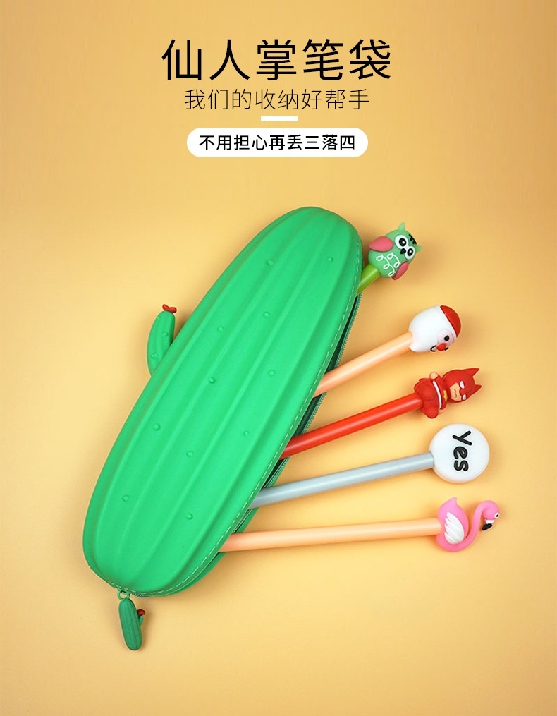 선인장 실리콘 필통, 야채 과일 모양 필통, 창의적인 학생 필통, 대용량 문구 가방, 수납 가방스토어 가기