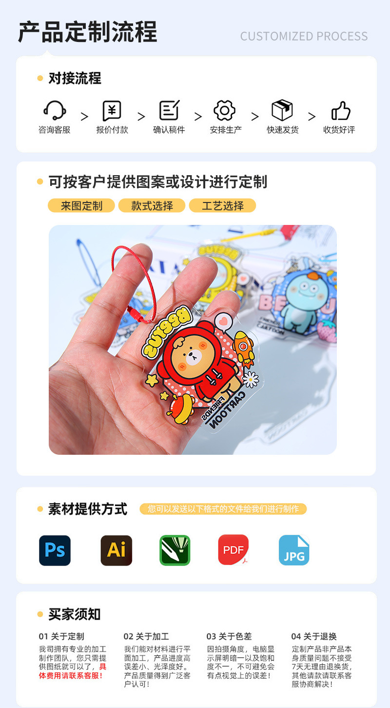 아크릴 키체인 맞춤 제작 창의적인 만화 조각 스탠드 키홀더 애니메이션 스타 주변 상품 맞춤 제작