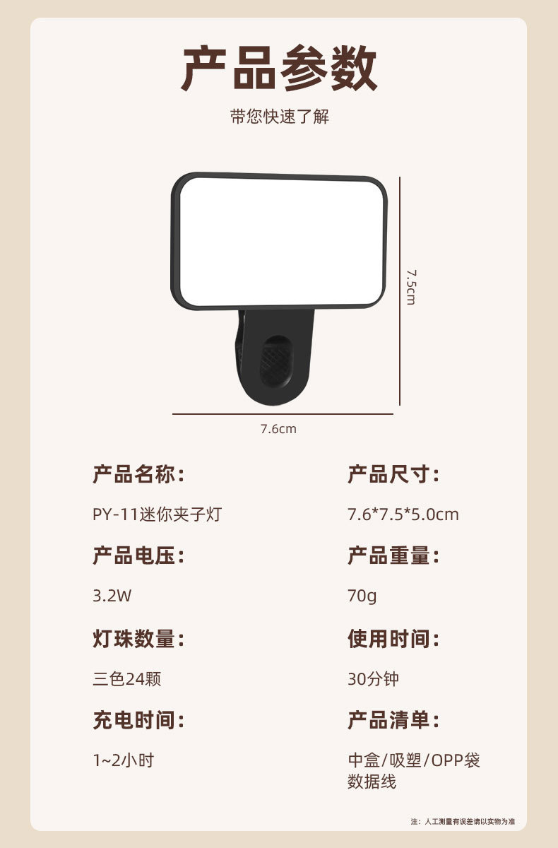py11 포켓 라이트 휴대폰 셀카 야외 라이브 촬영 LED 보조광 미니 휴대용 조명 뷰티 라이트