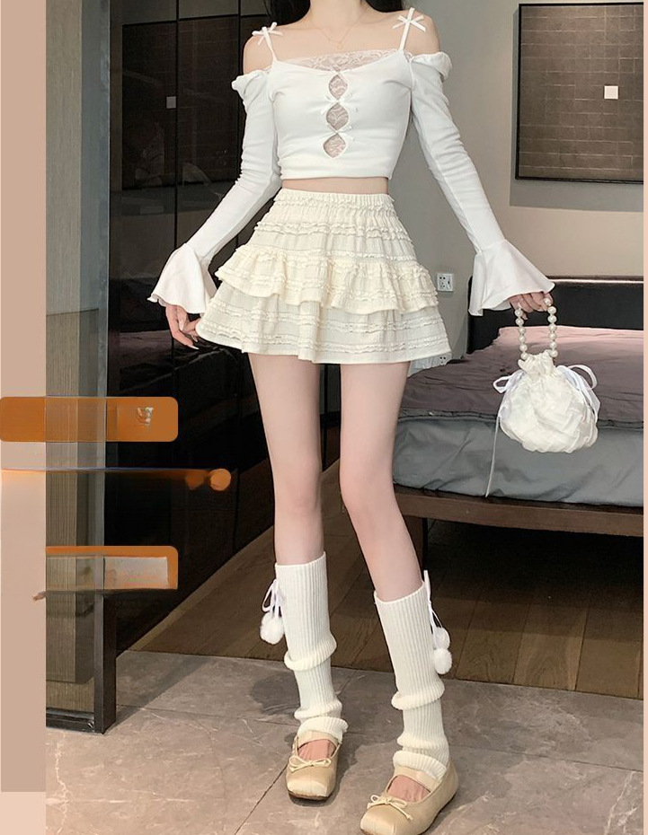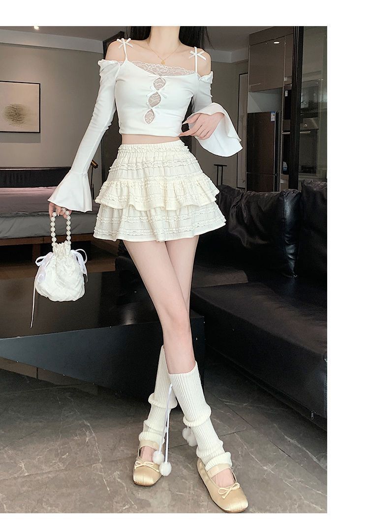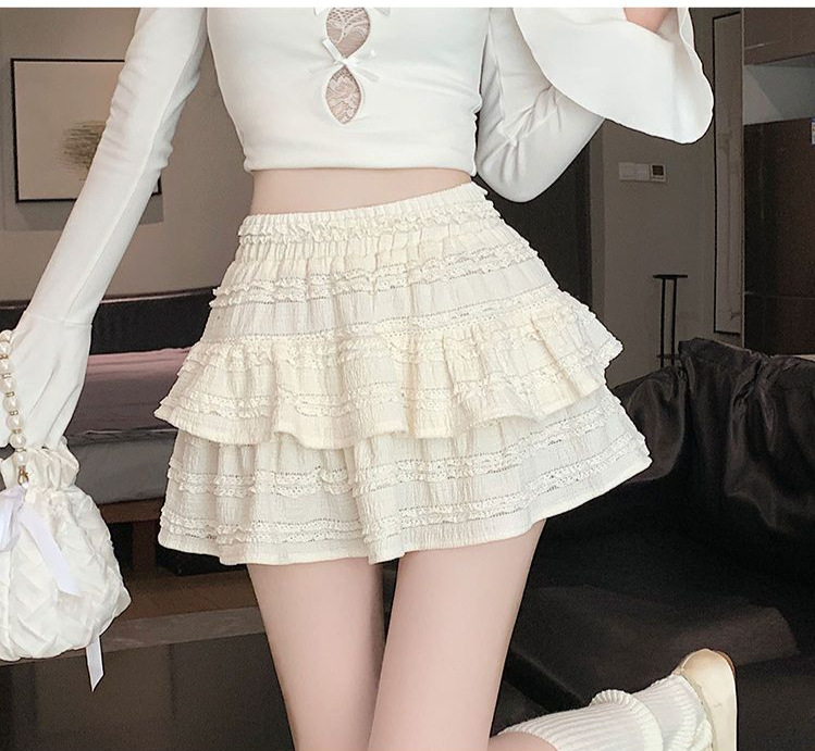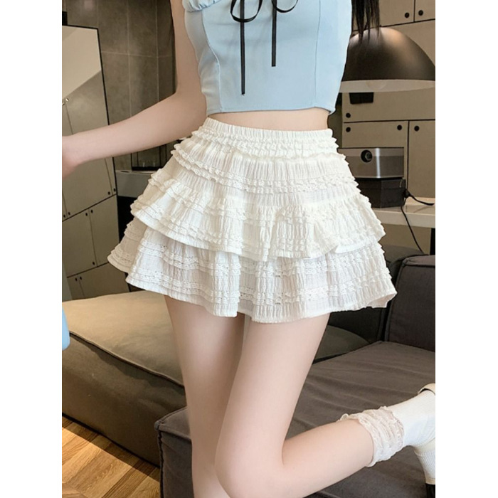 여성을위한 화이트 발레 스타일 퍼프 스커트 여름 새로운 핫 소녀 케이크 스커트 하이 웨이스트 슬림 a 라인 레이스 스커트