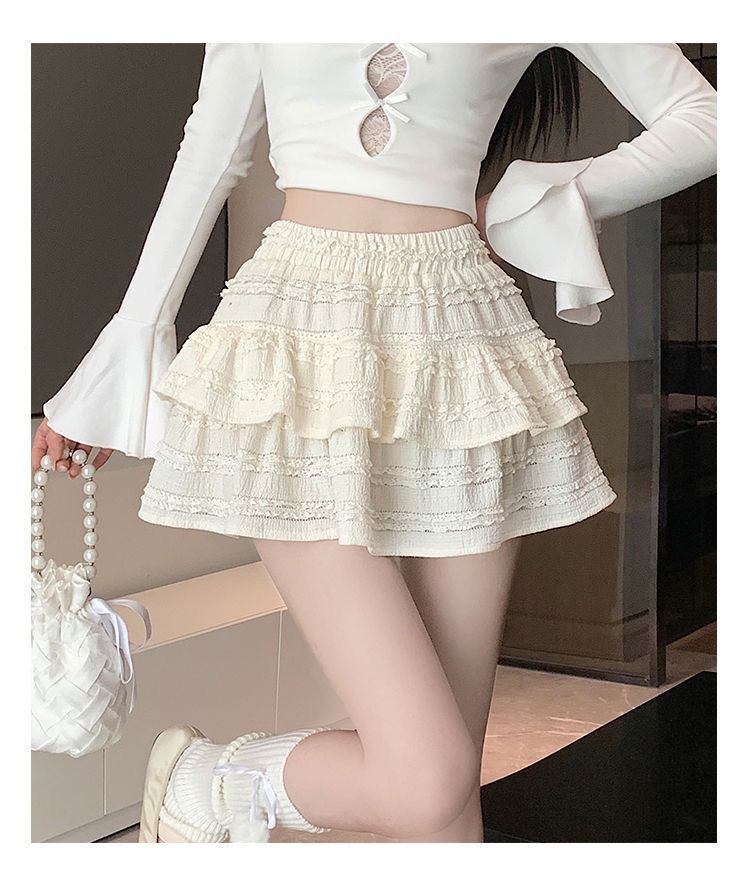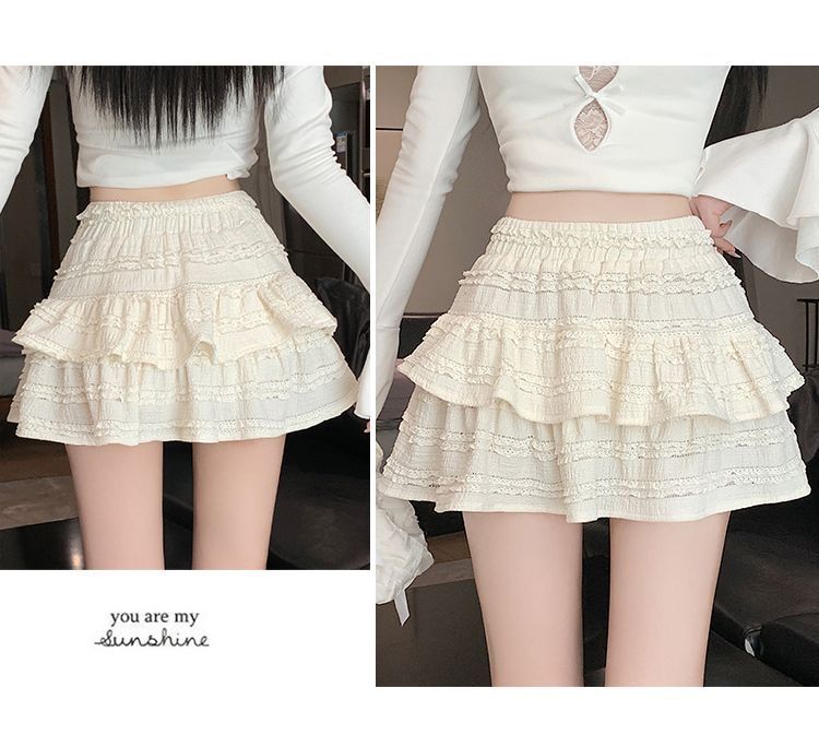 여성을위한 화이트 발레 스타일 퍼프 스커트 여름 새로운 핫 소녀 케이크 스커트 하이 웨이스트 슬림 a 라인 레이스 스커트스토어 가기