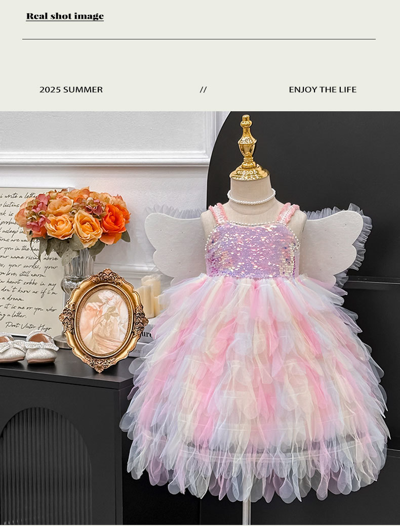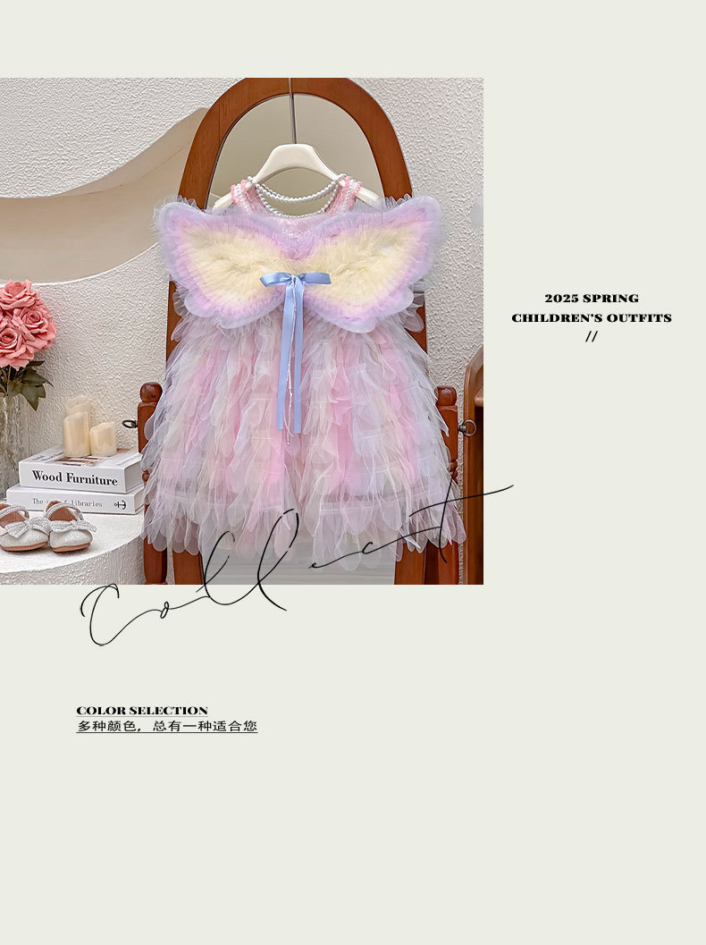 여아 드레스 2025 신상 레인보우 날개 공연 생일 드레스 퍼프 공주 드레스