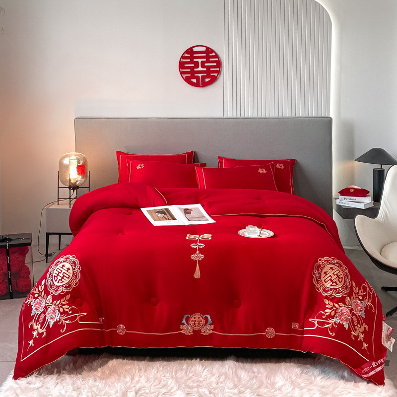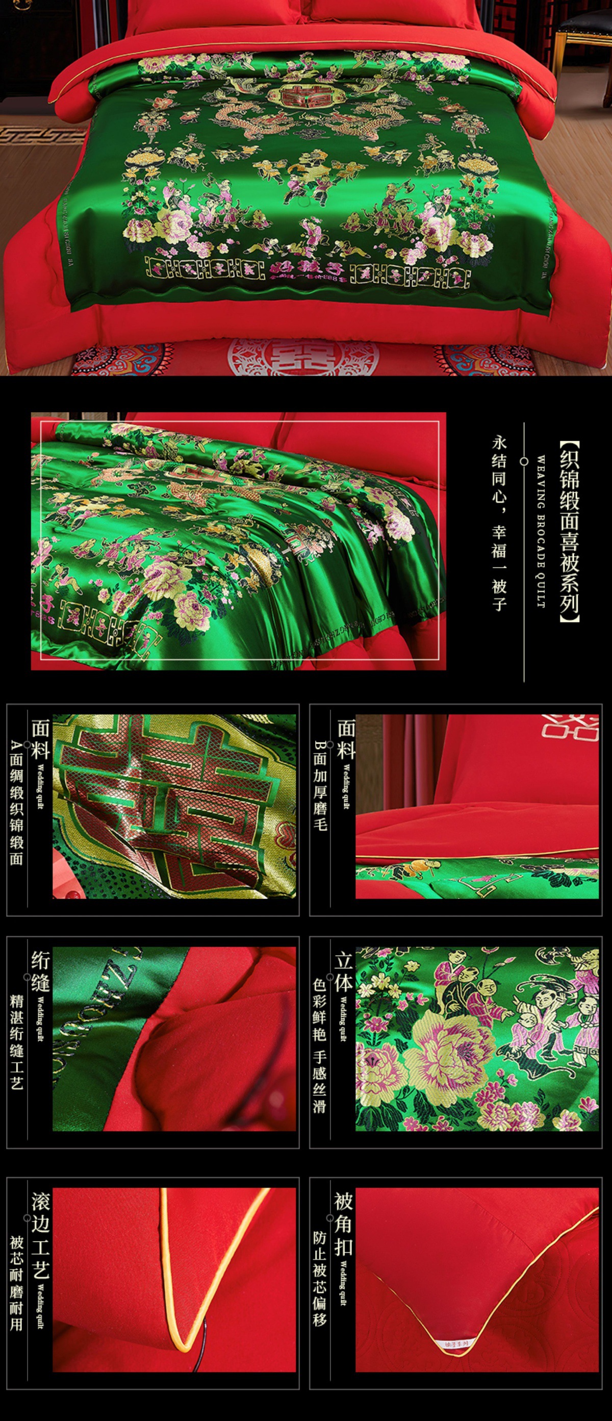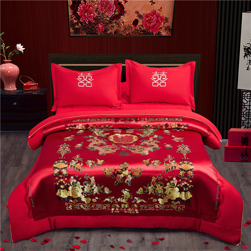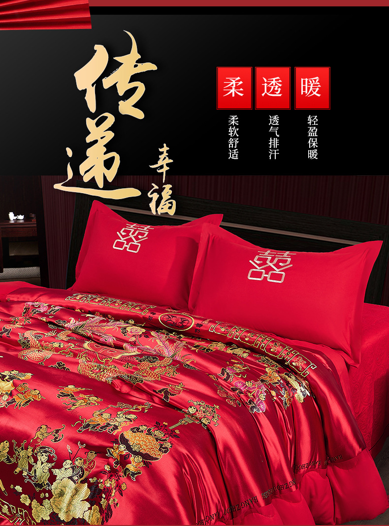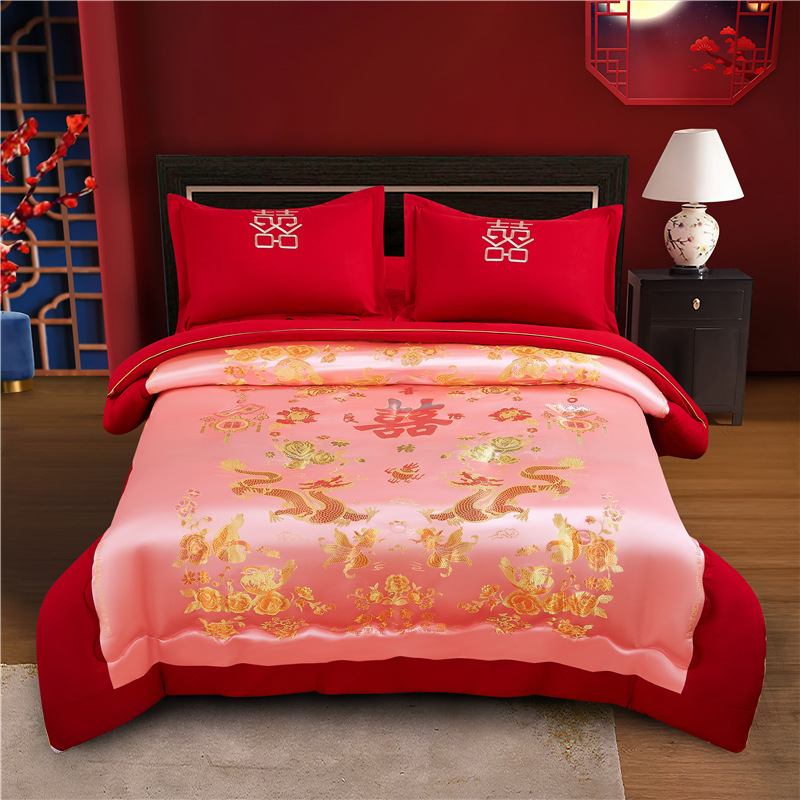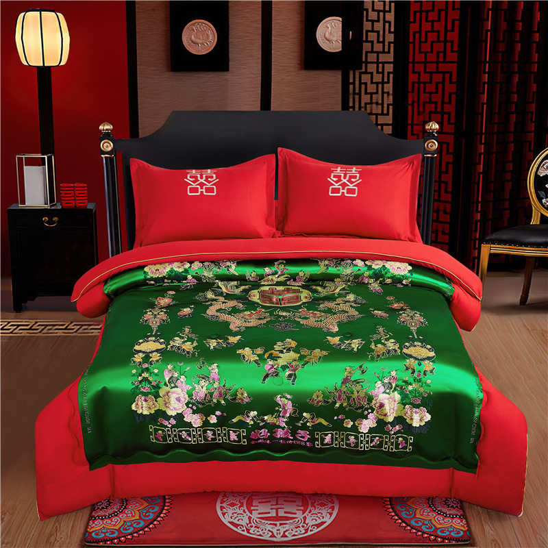 웨딩 퀼트 해피 퀼트 웨딩 용품 빅 레드 웨딩 그린 더블 행복 드래곤 피닉스 실크 새틴 퀼트 코어 퀼트