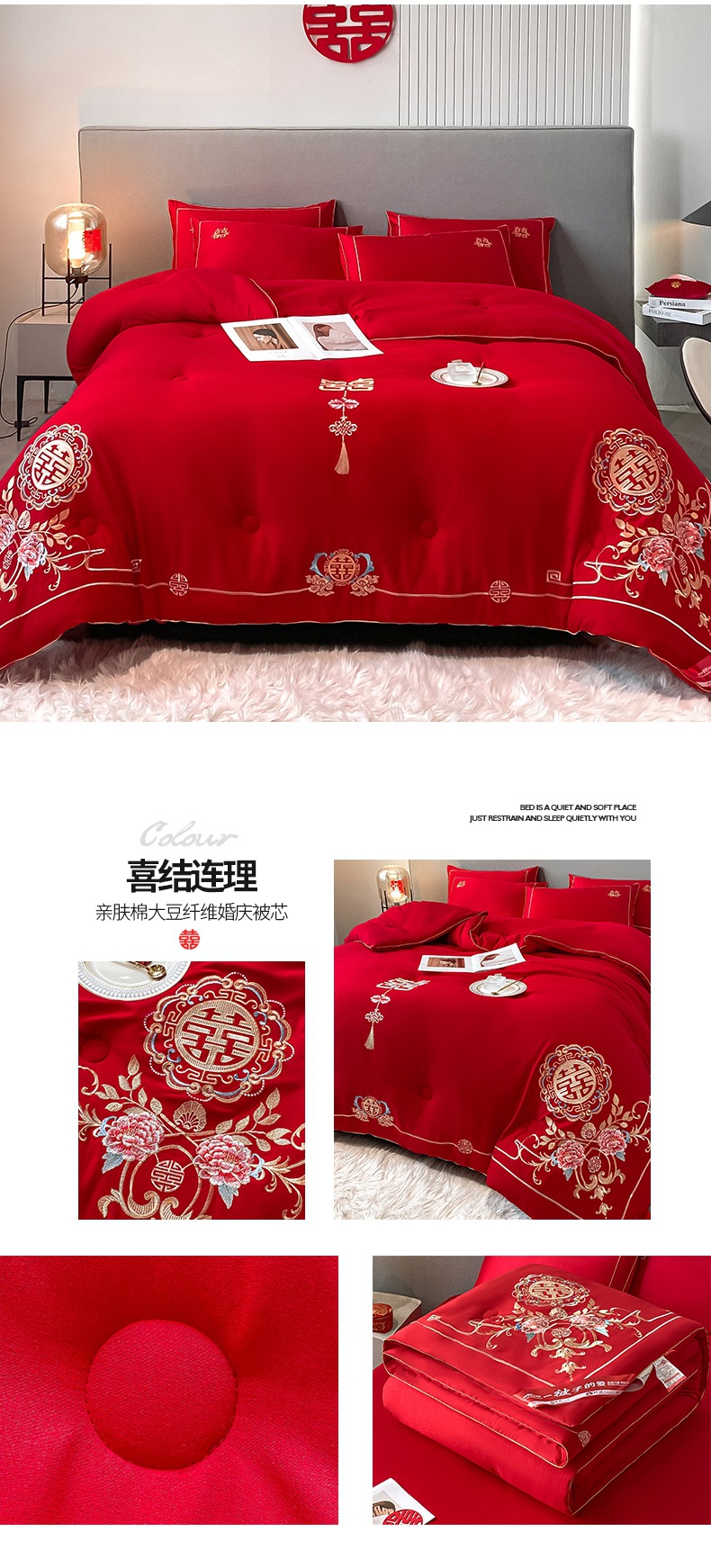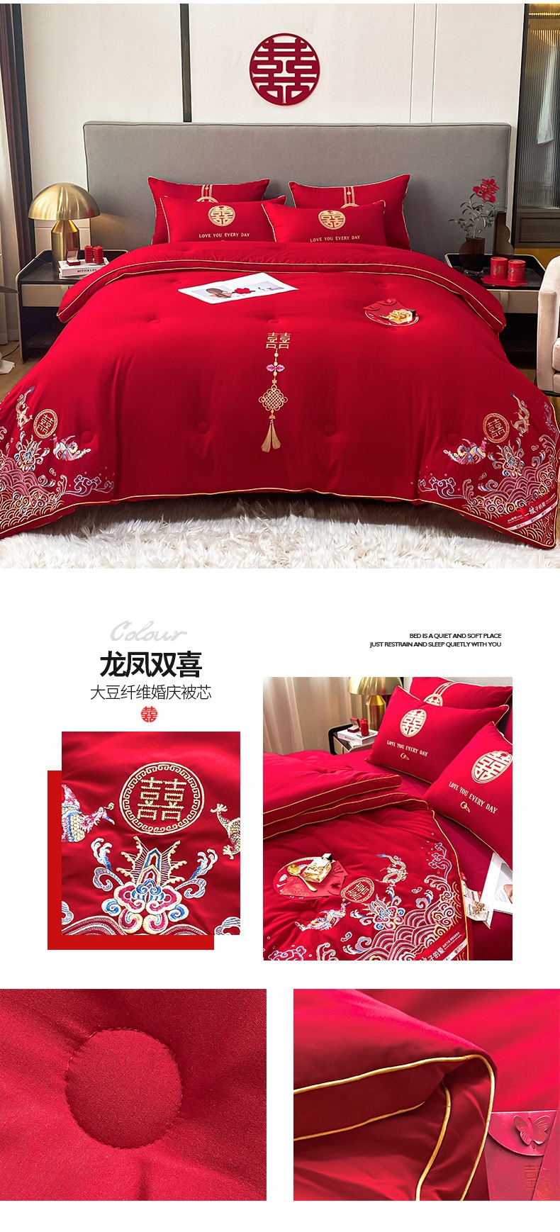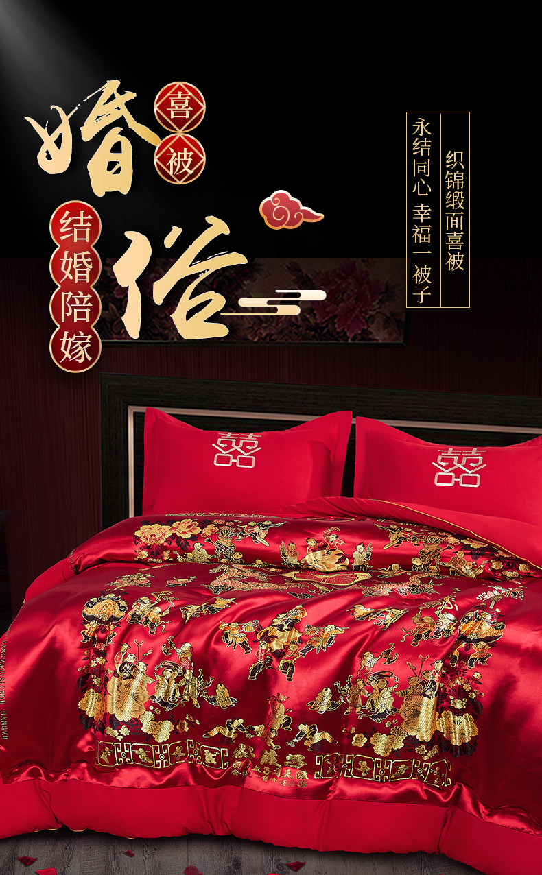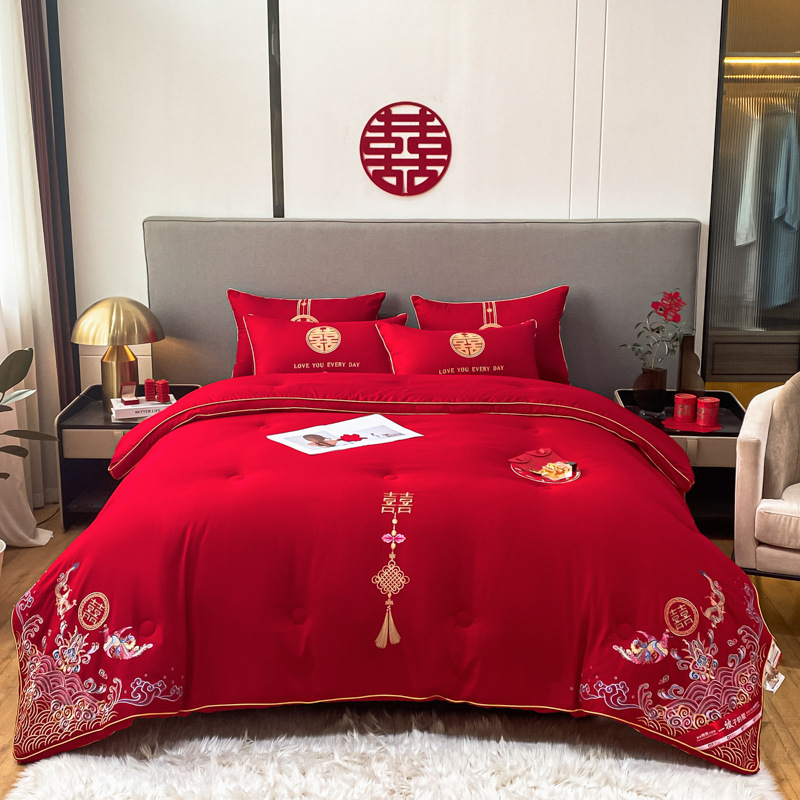 웨딩 퀼트 해피 퀼트 웨딩 용품 빅 레드 웨딩 그린 더블 행복 드래곤 피닉스 실크 새틴 퀼트 코어 퀼트