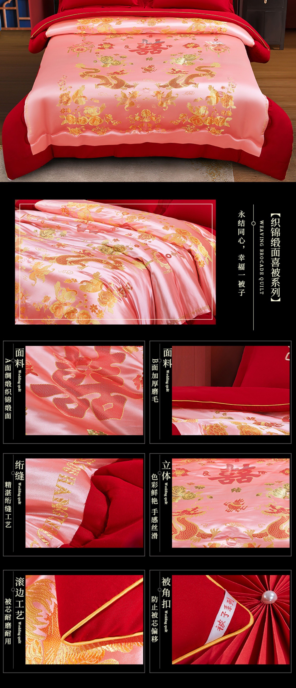 웨딩 퀼트 해피 퀼트 웨딩 용품 빅 레드 웨딩 그린 더블 행복 드래곤 피닉스 실크 새틴 퀼트 코어 퀼트스토어 가기