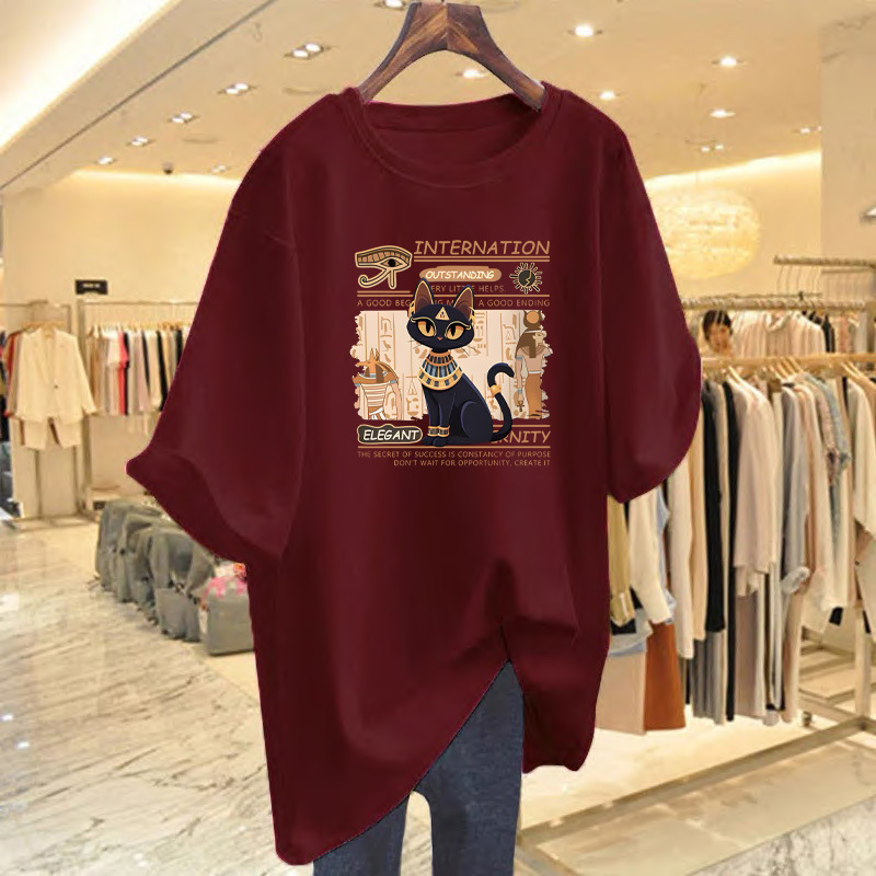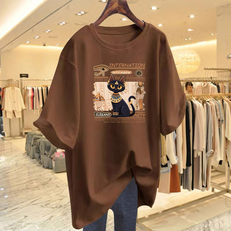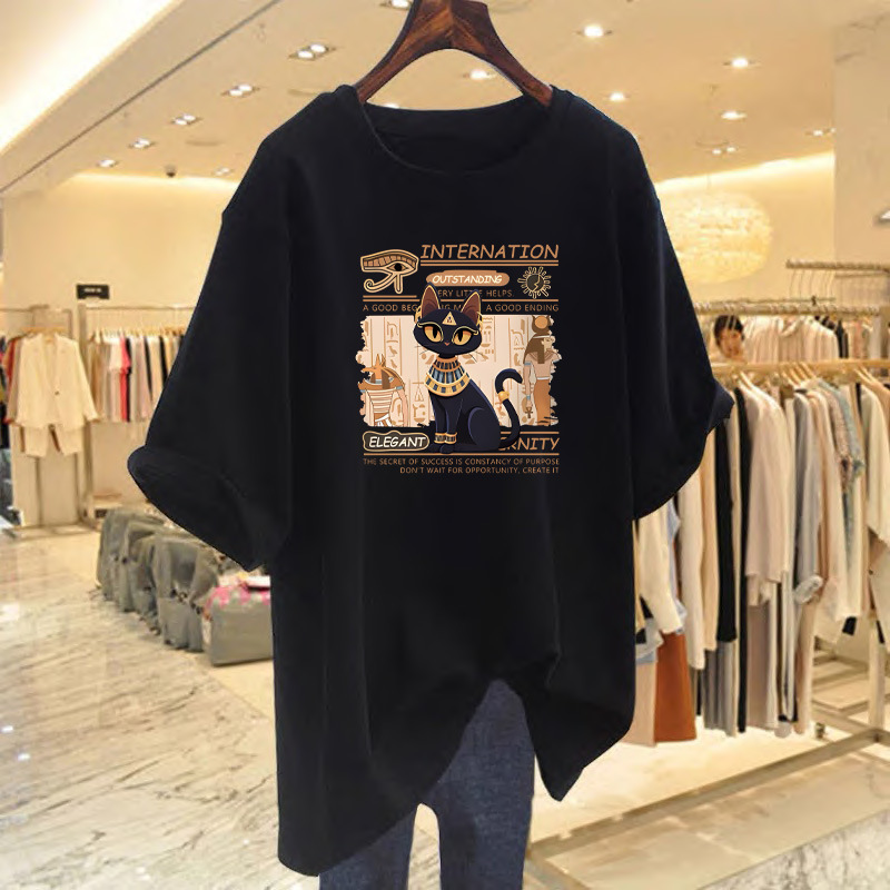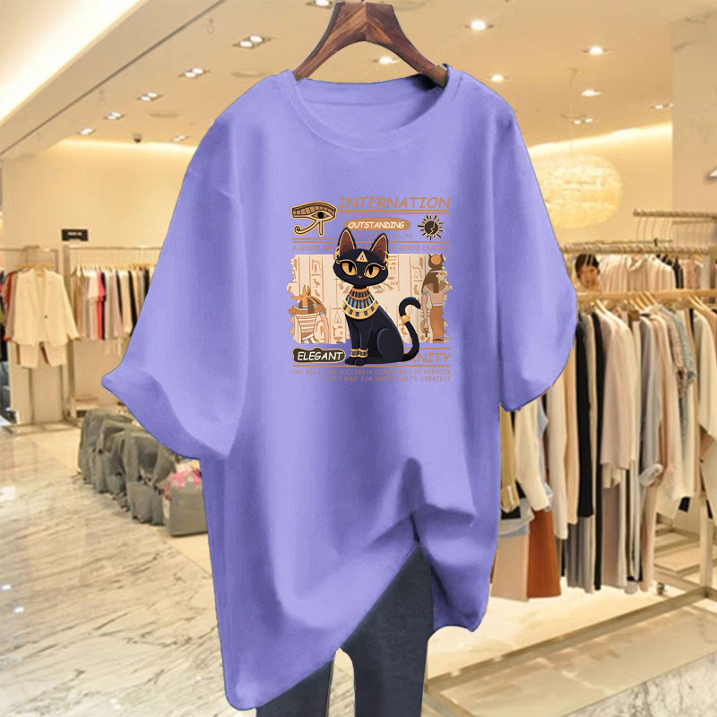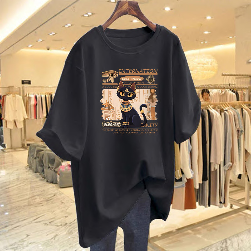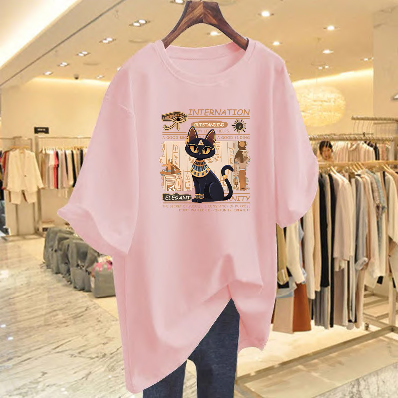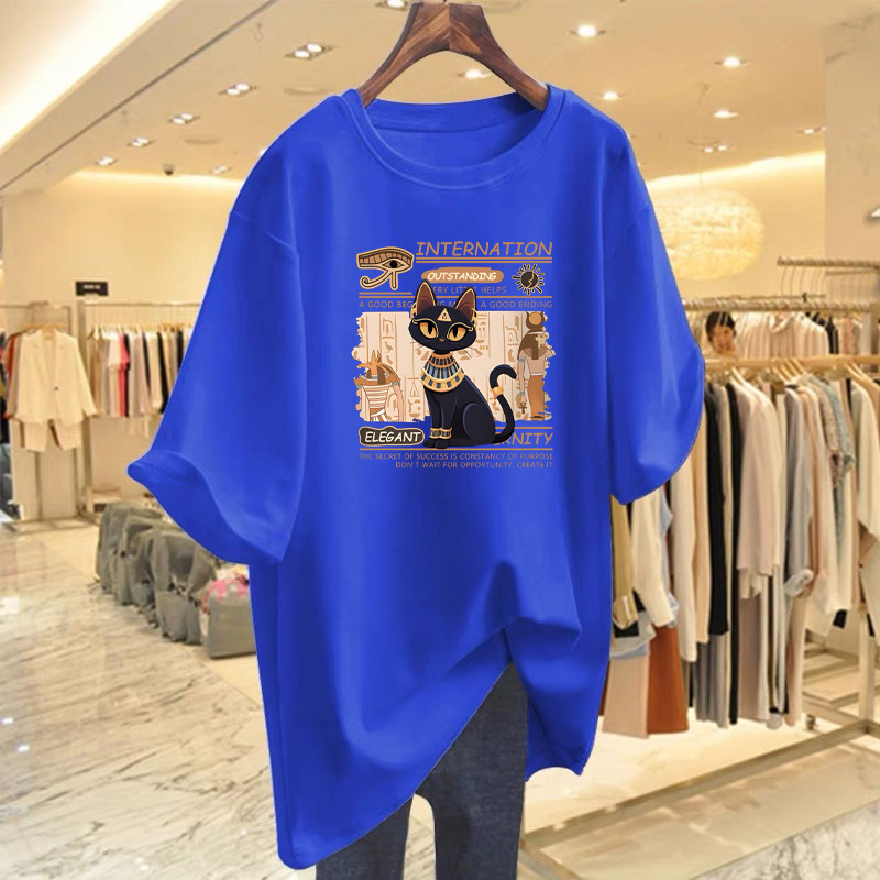 퓨어 코튼 키튼 프린트 루즈 탑 반팔 티셔츠 여성용 여름 새 도착 플러스 사이즈 반소매 중장베이스 셔츠스토어 가기