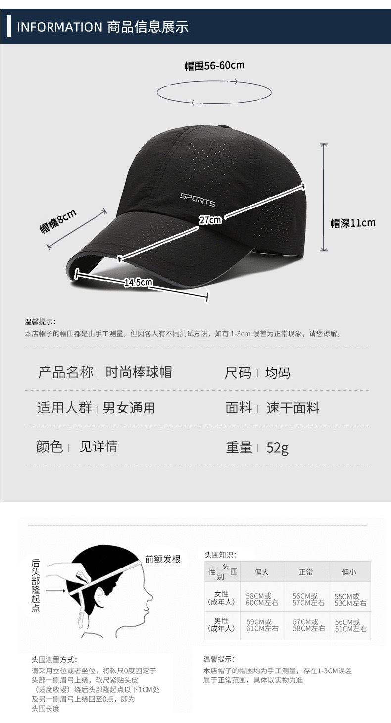 여름 신작 여성용 야구 모자, 반사 피크 캡, 디스코 야광 모자, 남성용 스트리트 속건 피크 캡, 아웃도어 모자스토어 가기