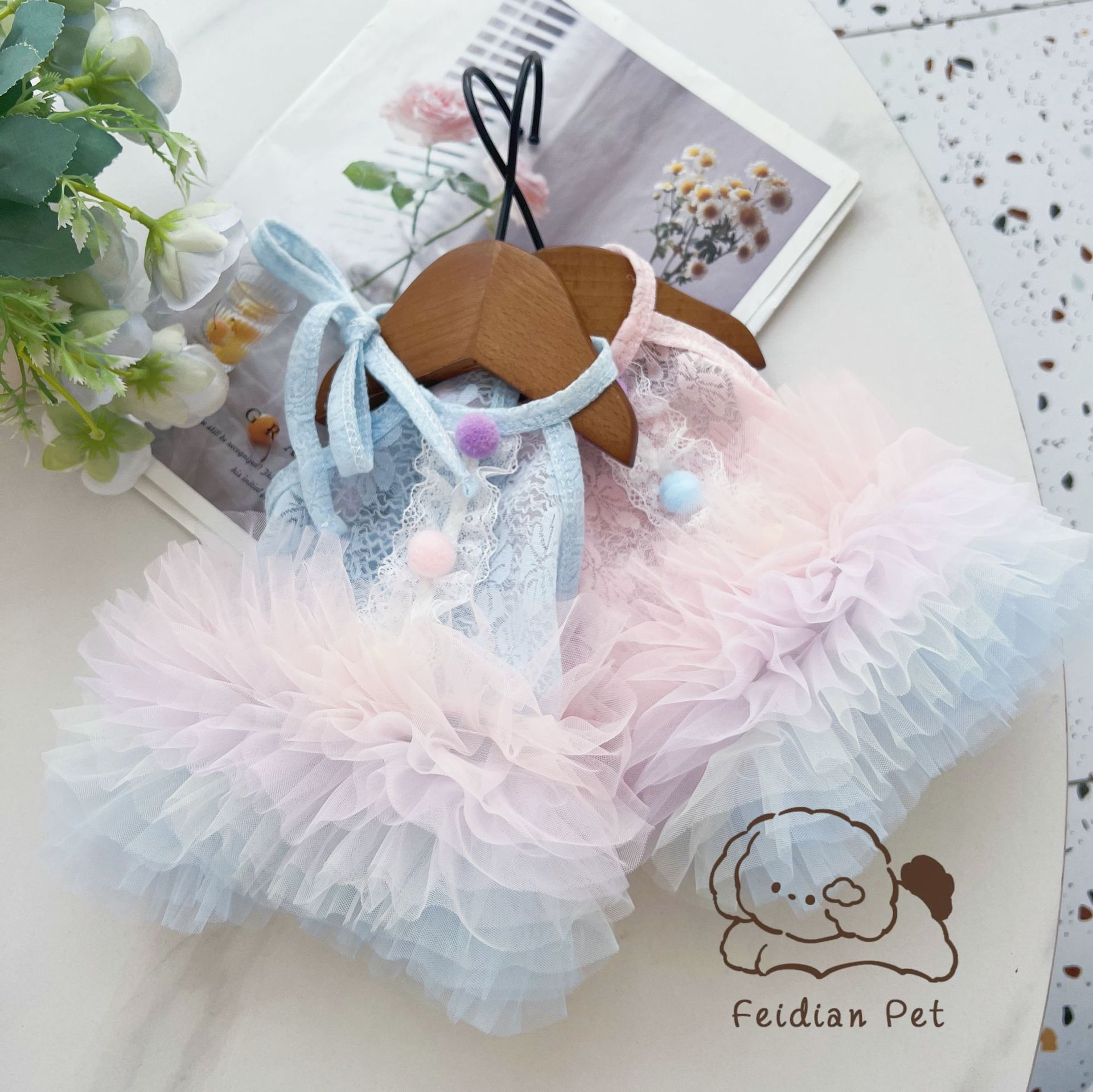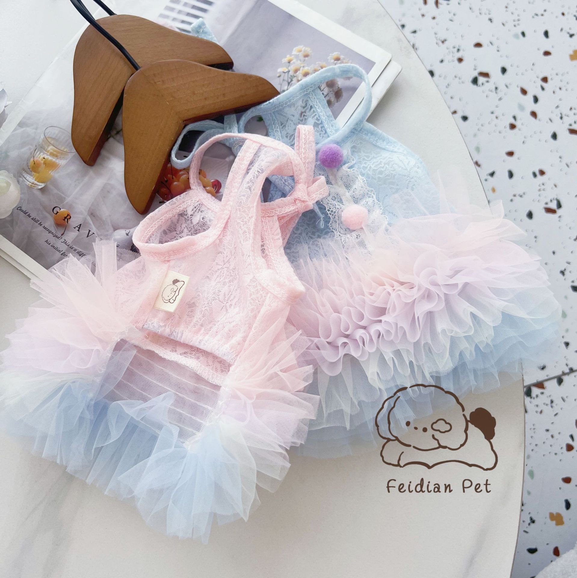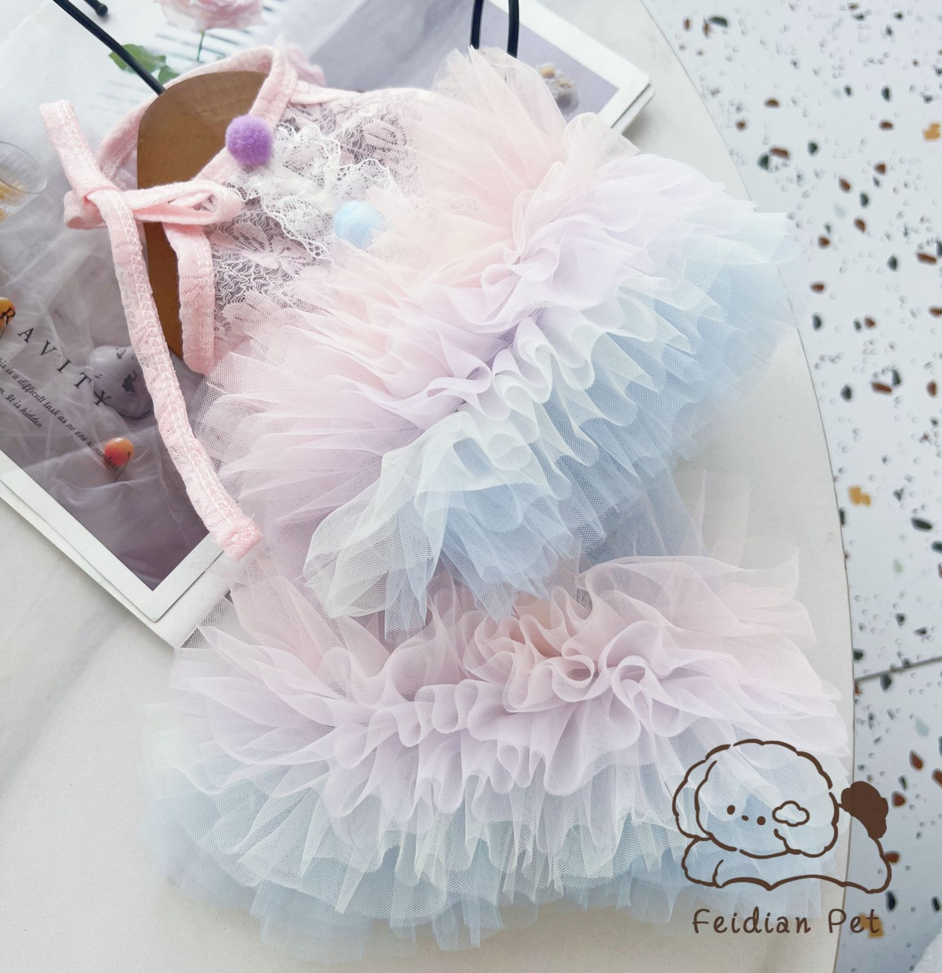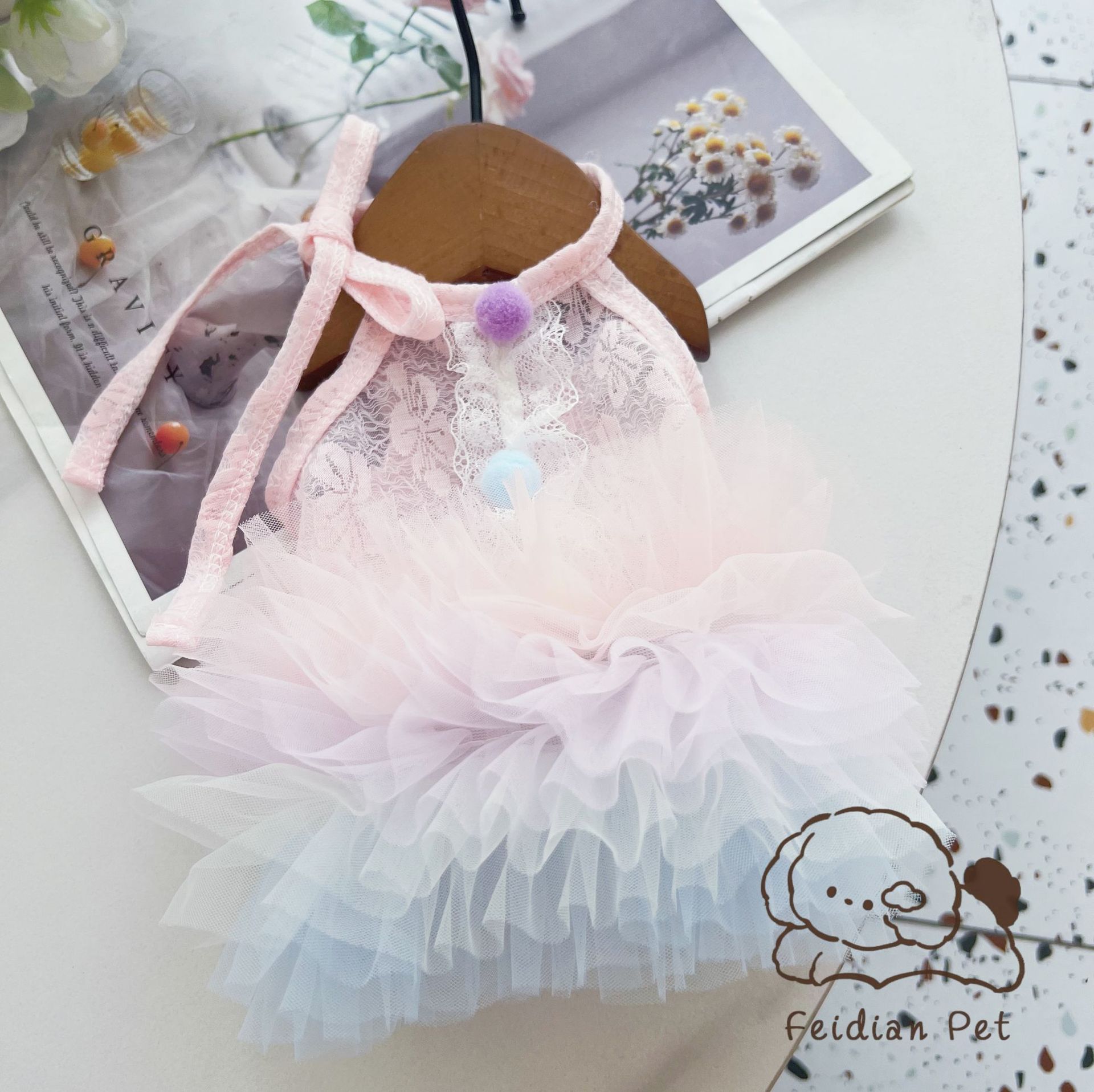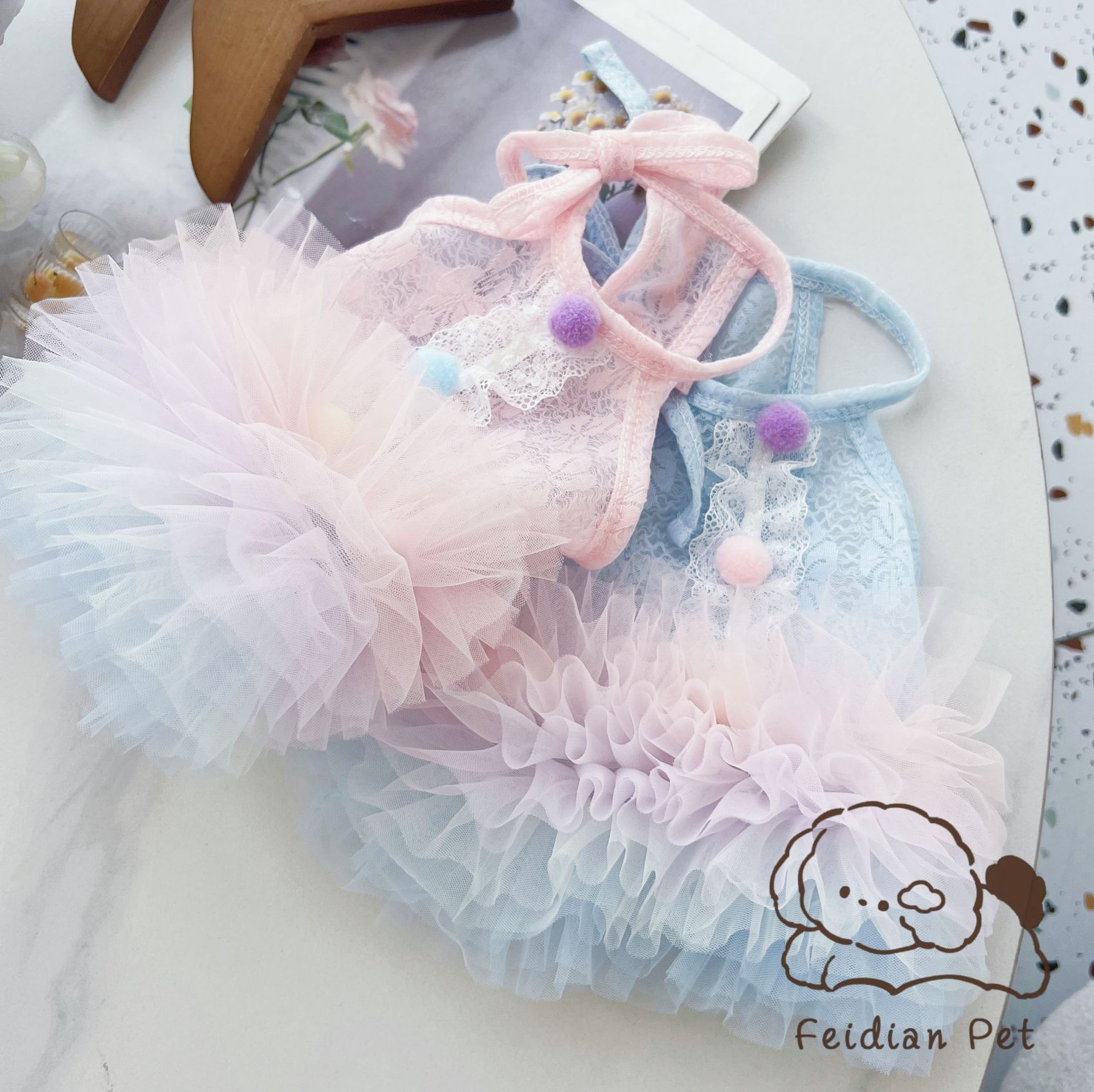 끓는 포인트 애완 동물 25 봄과 여름 새로운 레이스 그라디언트 대형 스커트 발레 작은 개 Malzis 레이디 원피스