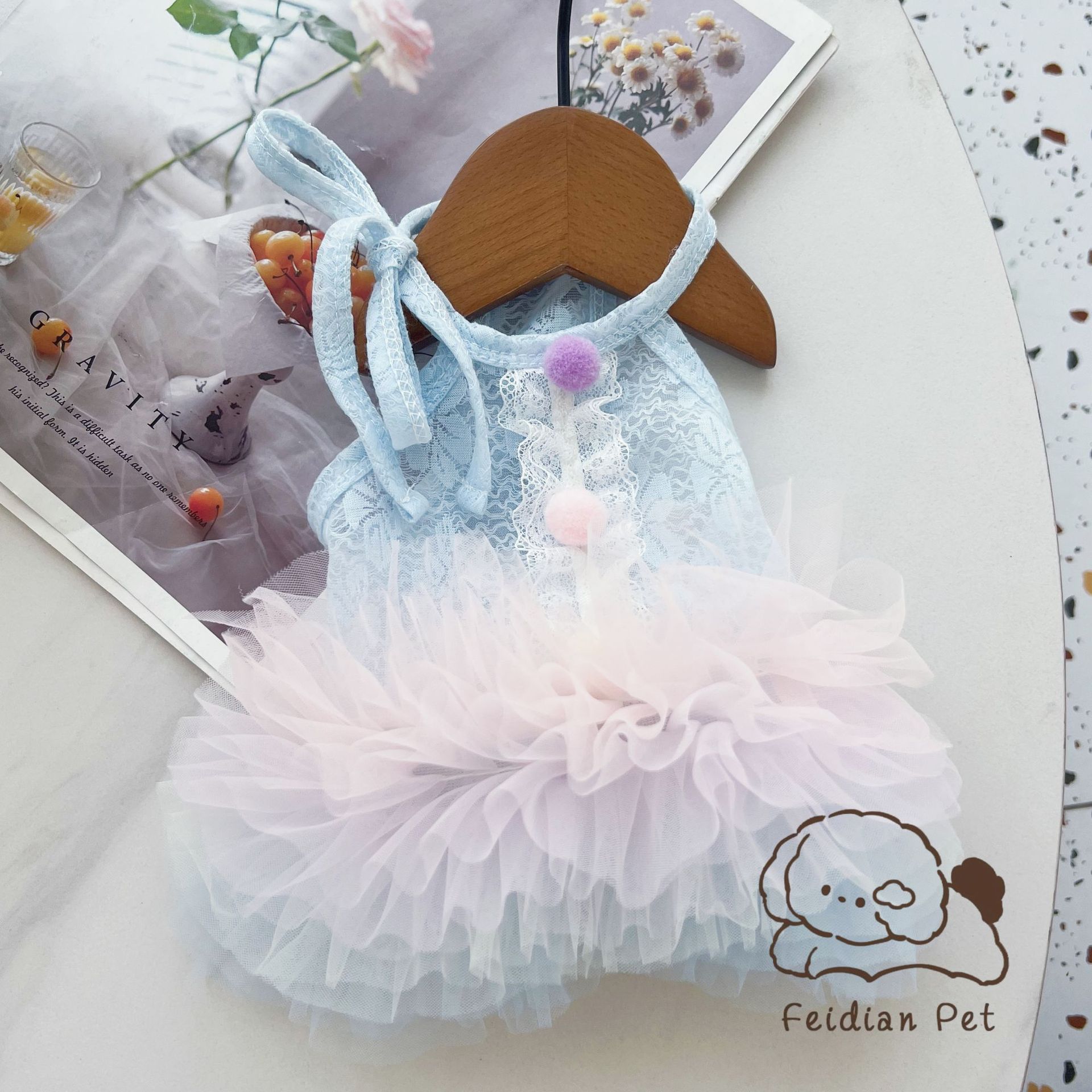 끓는 포인트 애완 동물 25 봄과 여름 새로운 레이스 그라디언트 대형 스커트 발레 작은 개 Malzis 레이디 원피스스토어 가기