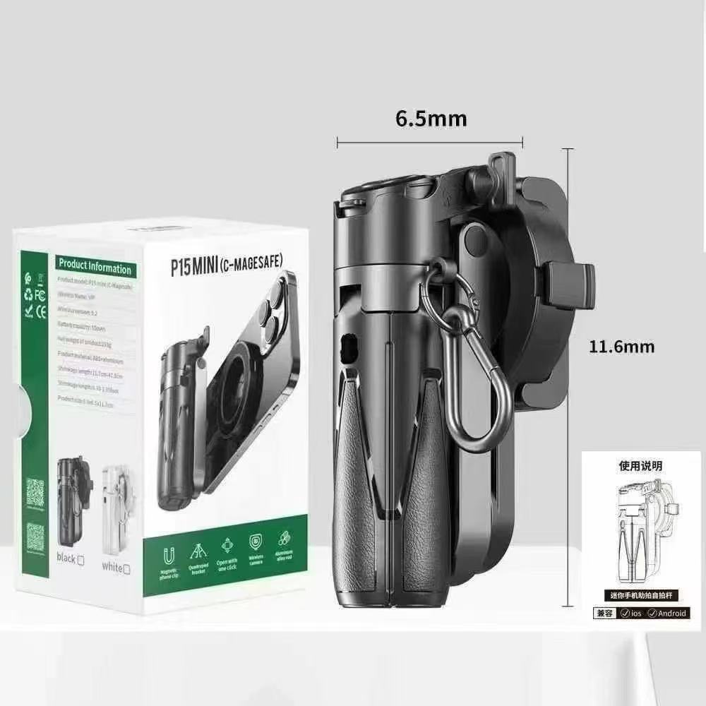 국경 폭발 휴대용 P15MINI 전화 셀카 스틱 마그네틱 블루투스 원격 제어 원격 전화 카메라 브래킷