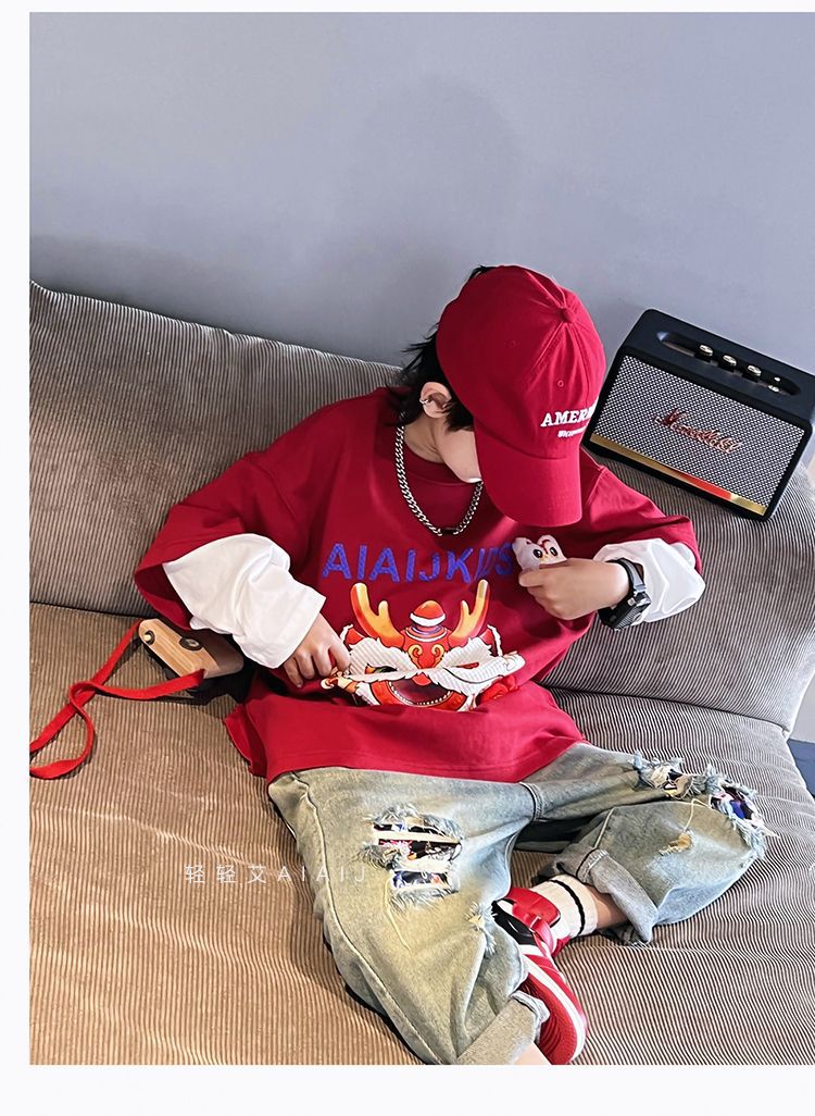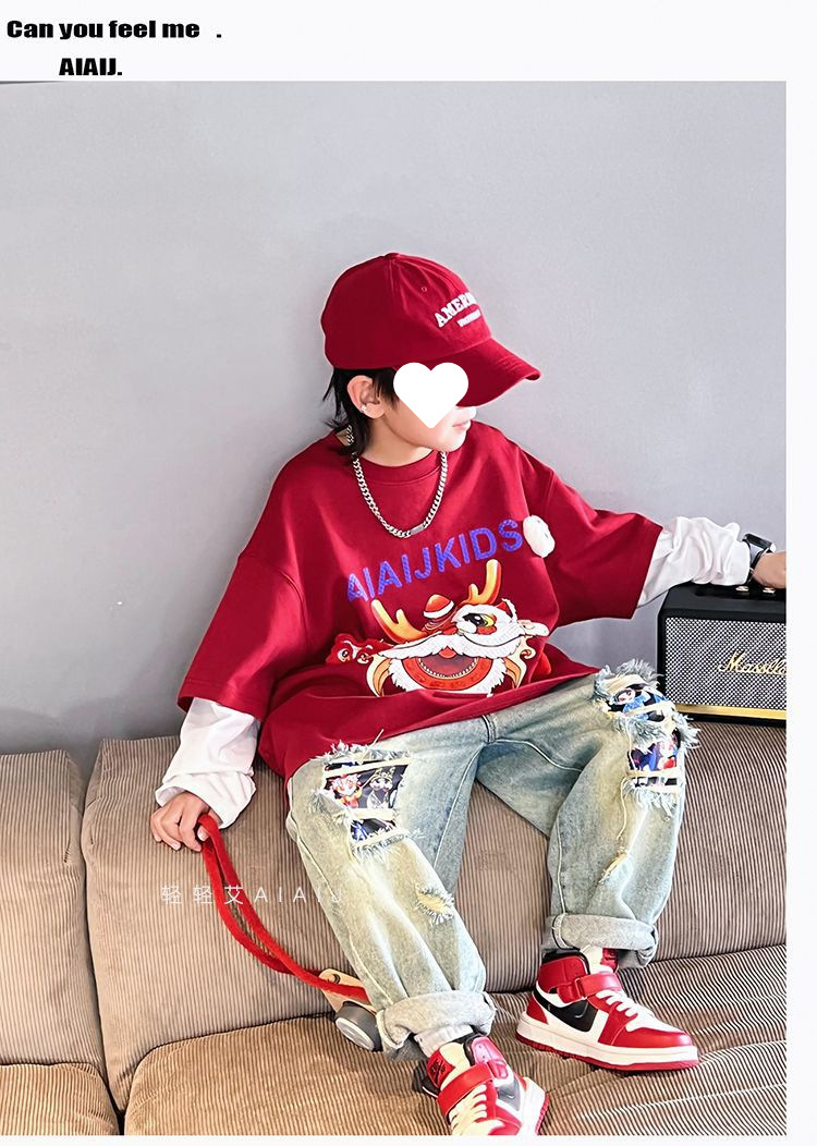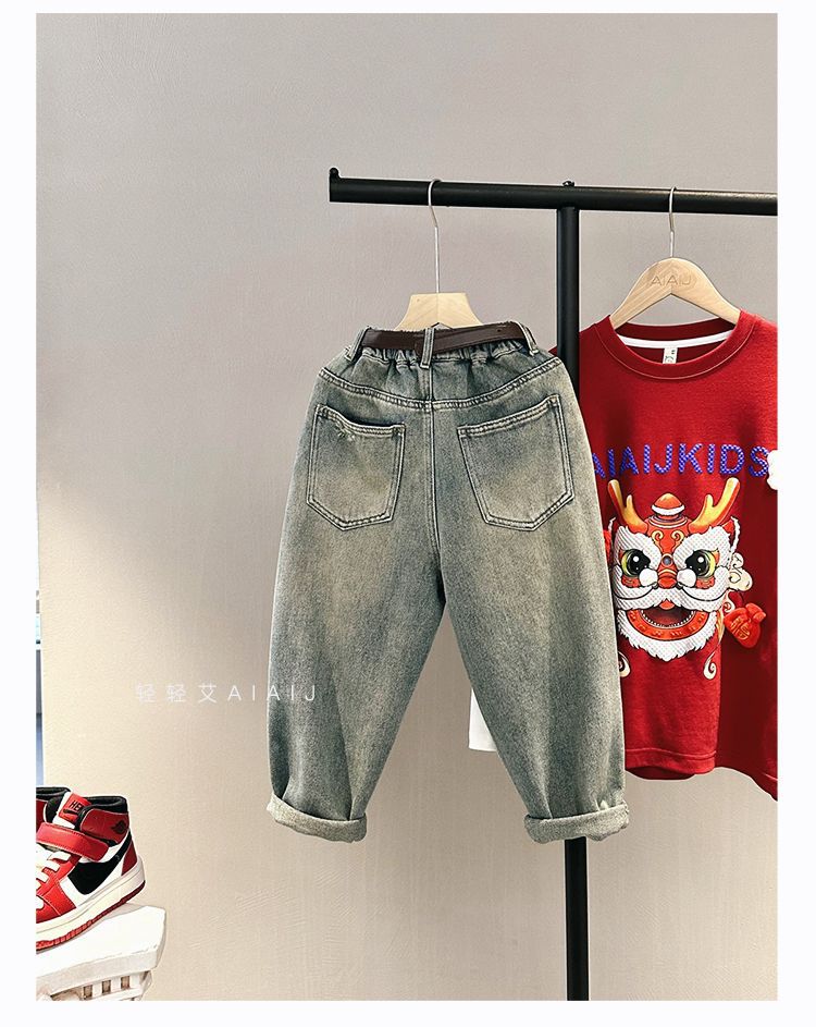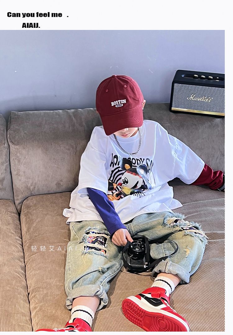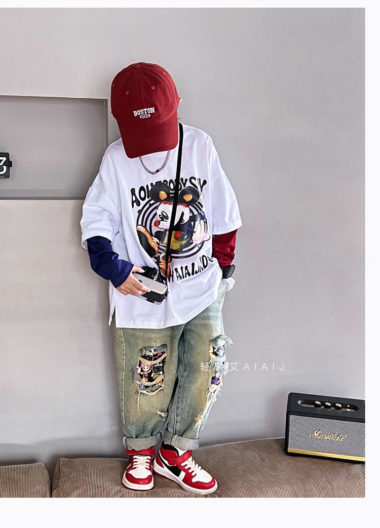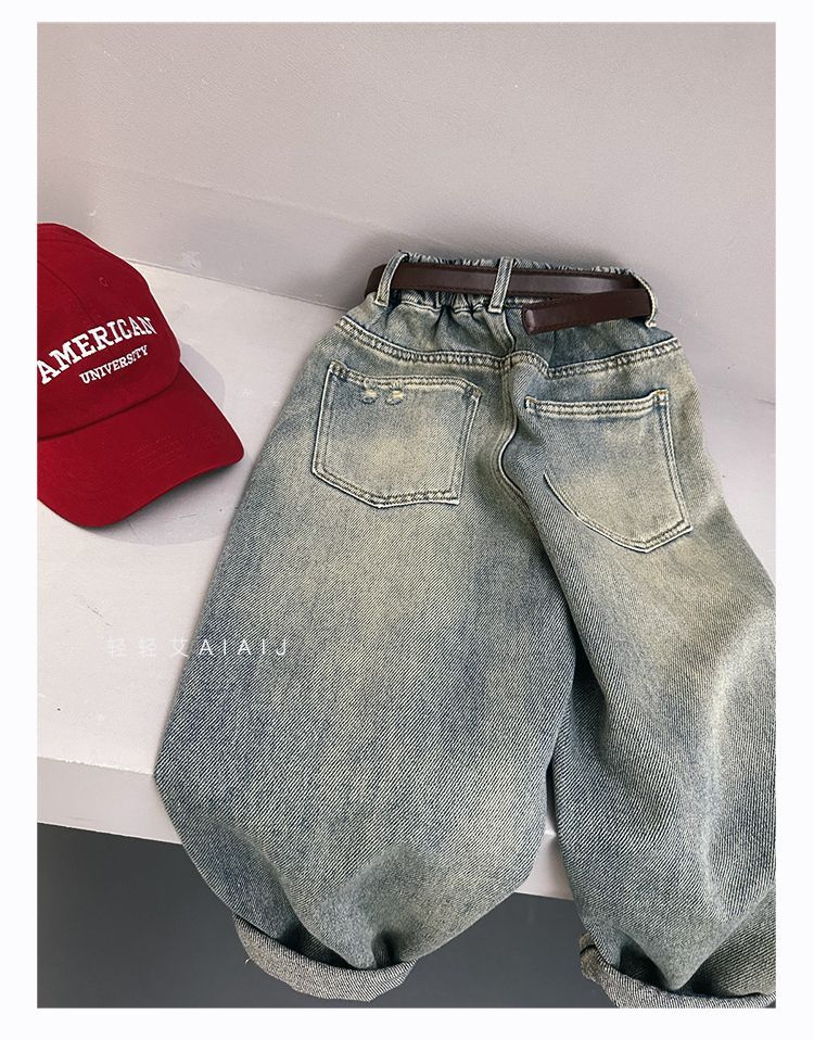 소년 봄 얇은 찢어진 청바지 2025 새로운 스타일 중대형 어린이 개성있는 멋진 스타일 캐주얼 바지 스트레이트 팬츠 유행스토어 가기