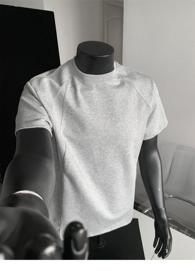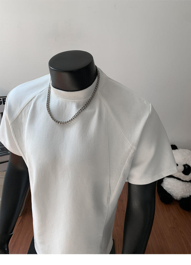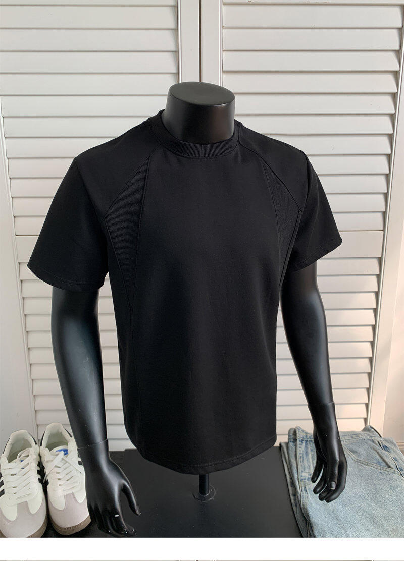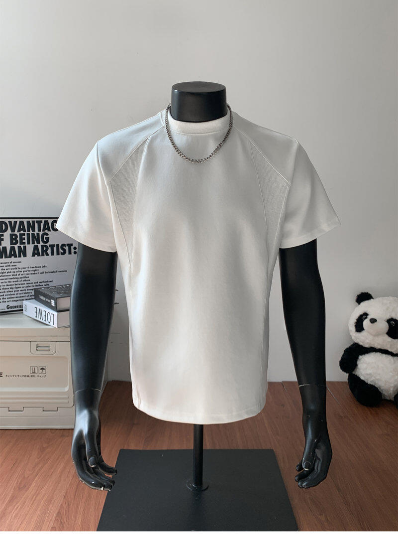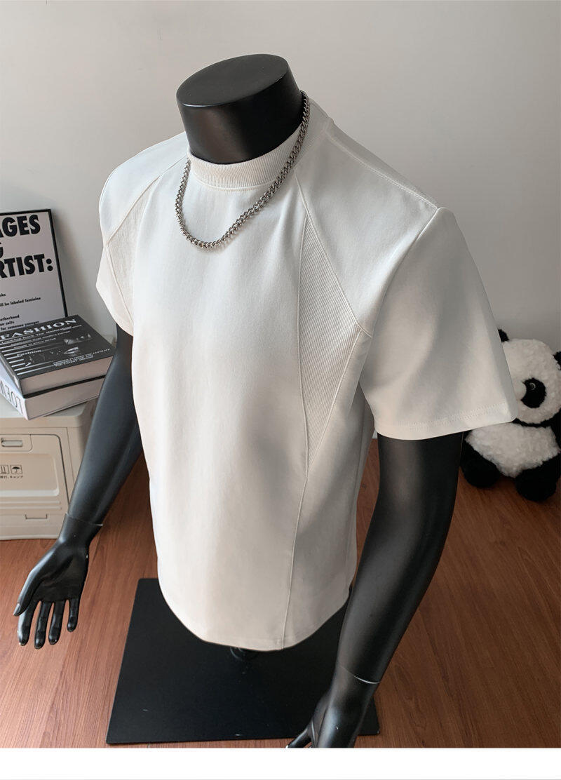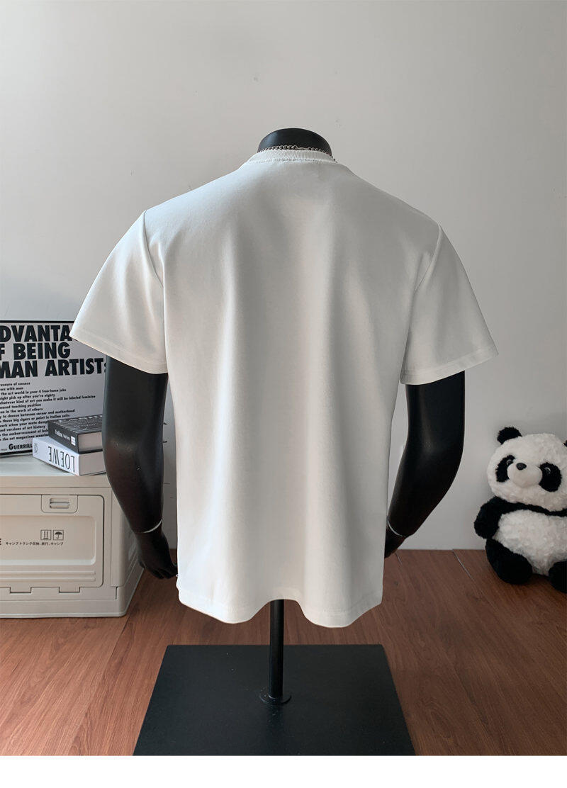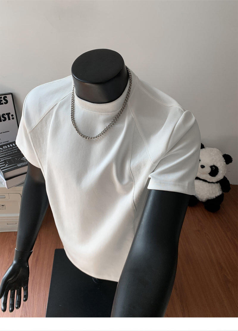 오리지널 여름 신상 남성용 헤비웨이트 숏 슬리브 티셔츠, 스몰 칼라, 골지 스티치 티셔츠, 라지 사이즈, 청소년용스토어 가기