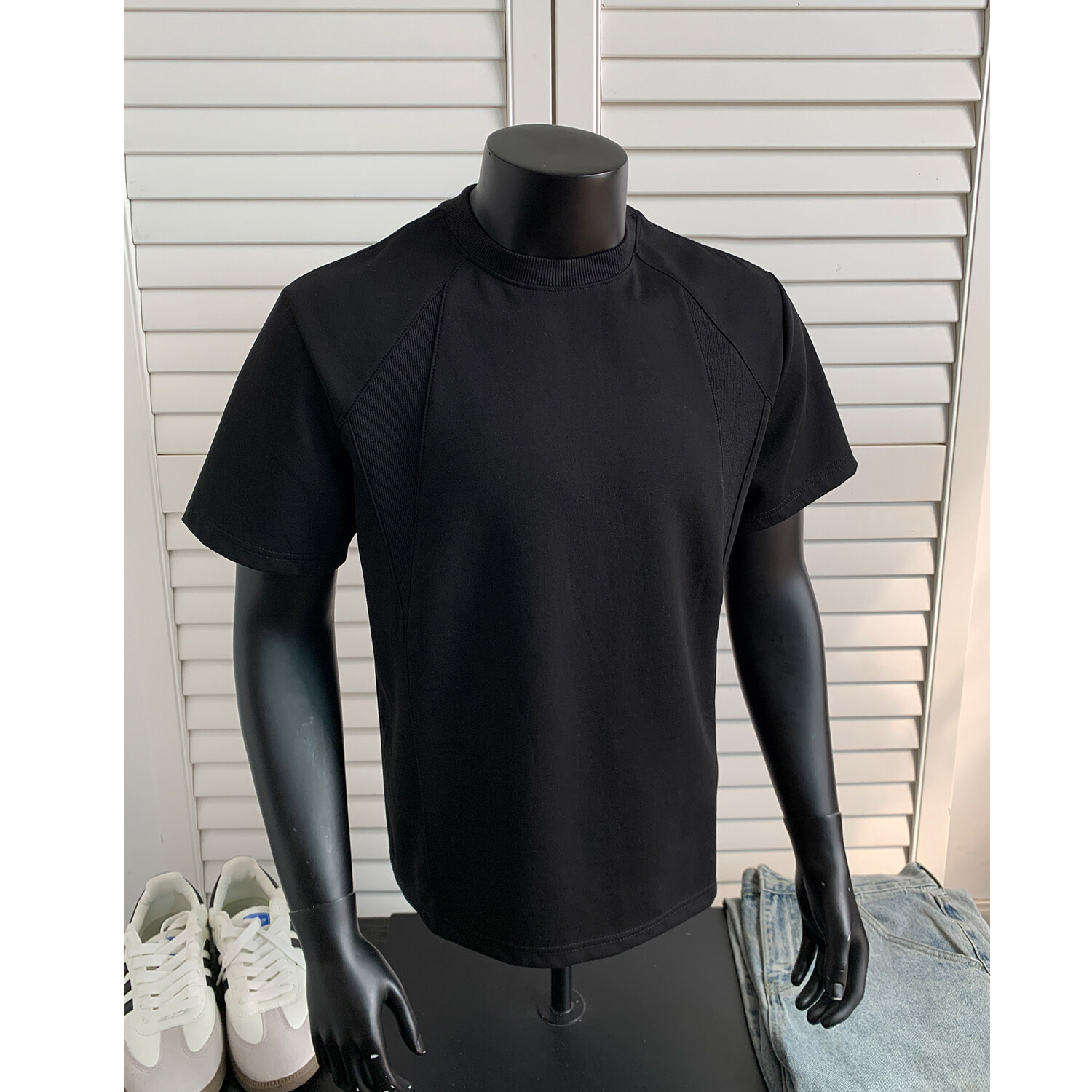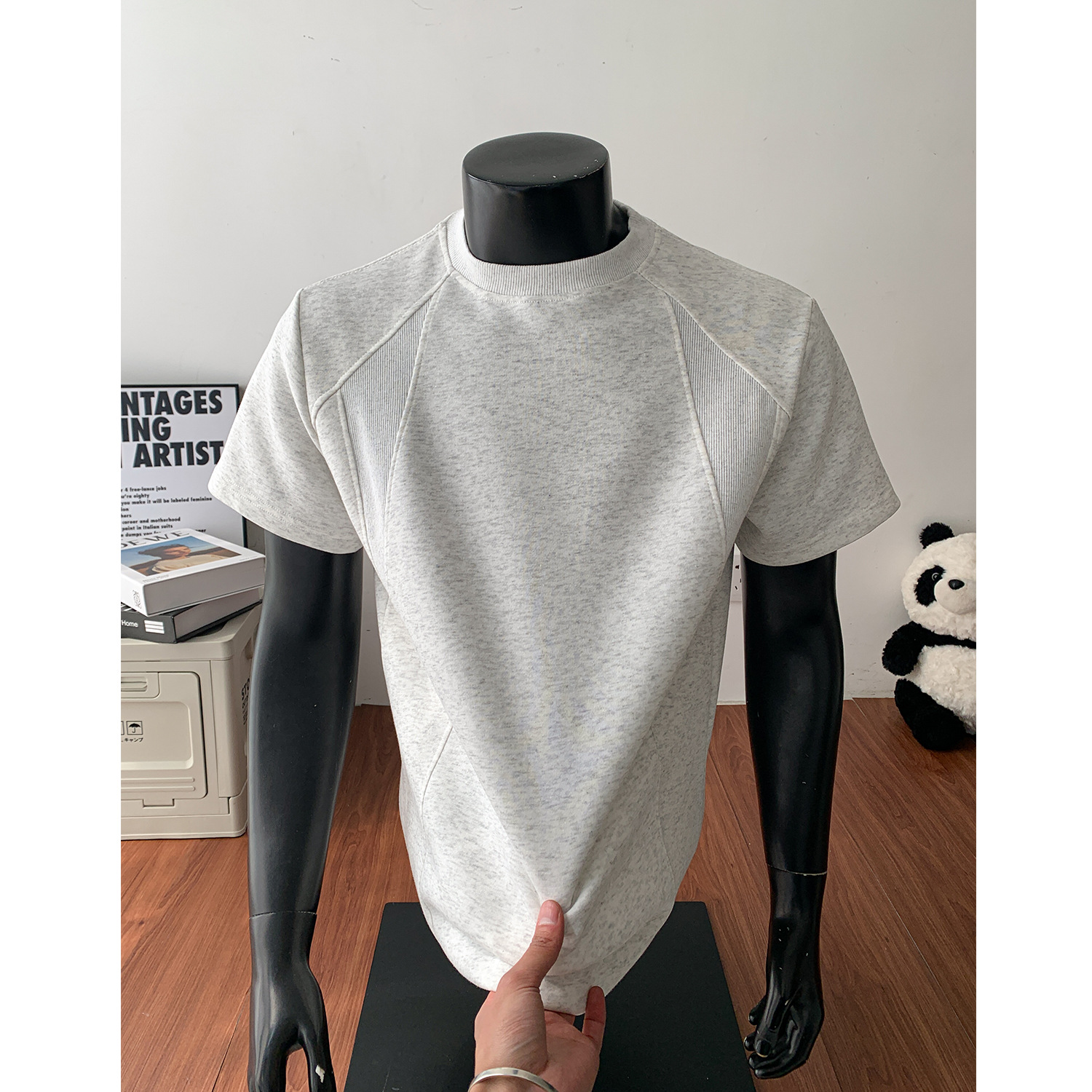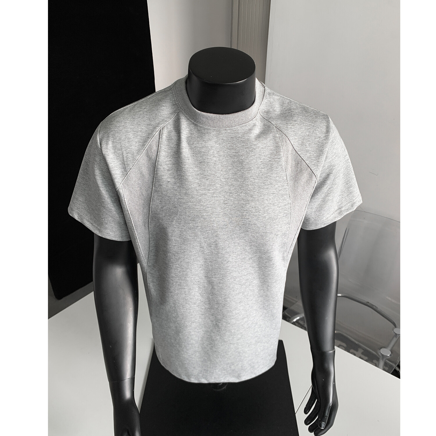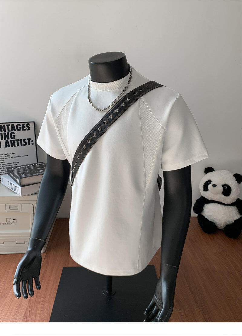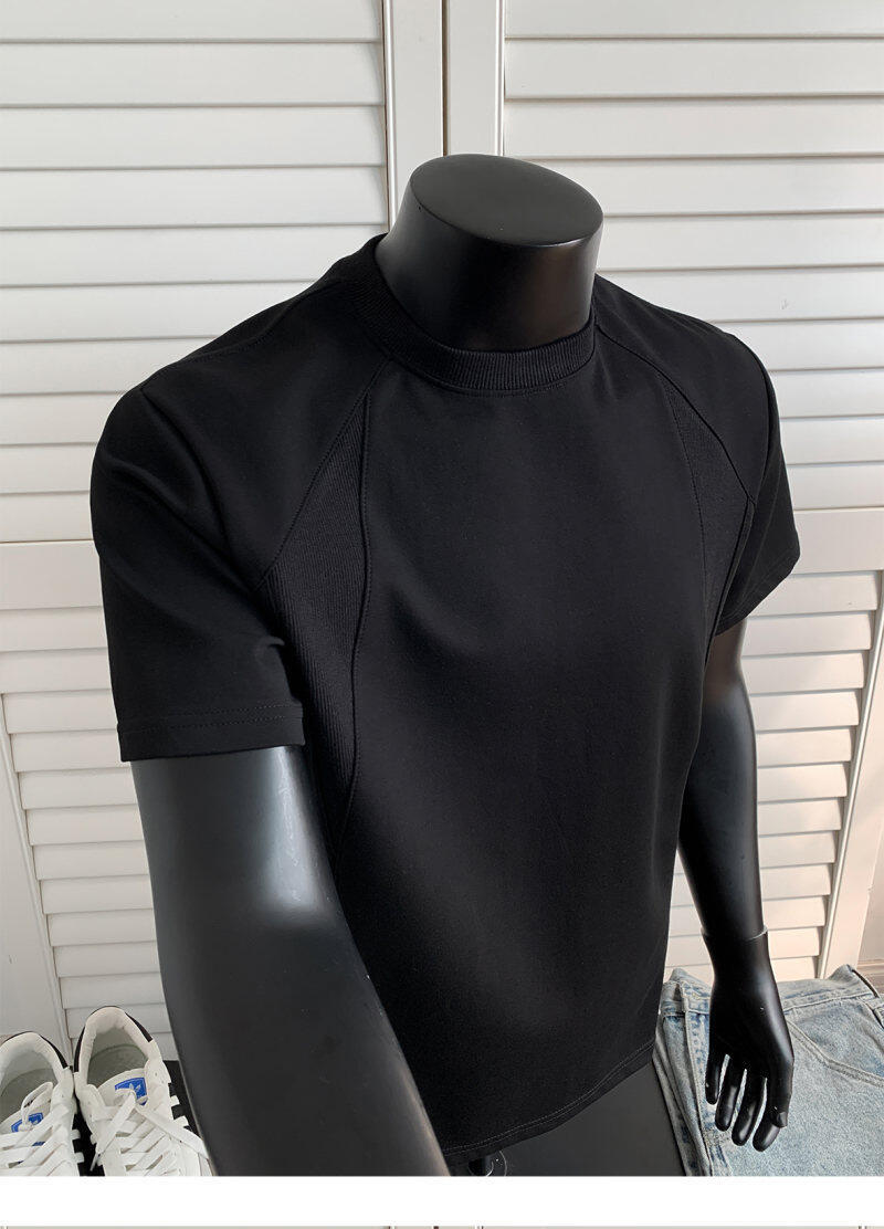 오리지널 여름 신상 남성용 헤비웨이트 숏 슬리브 티셔츠, 스몰 칼라, 골지 스티치 티셔츠, 라지 사이즈, 청소년용스토어 가기