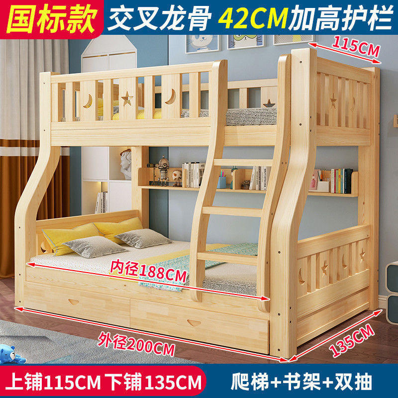 • 사다리형 네이키드 침대 - 상단 침대 폭 115cm/하단 침대 135cm(모두 원목)