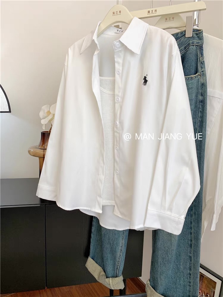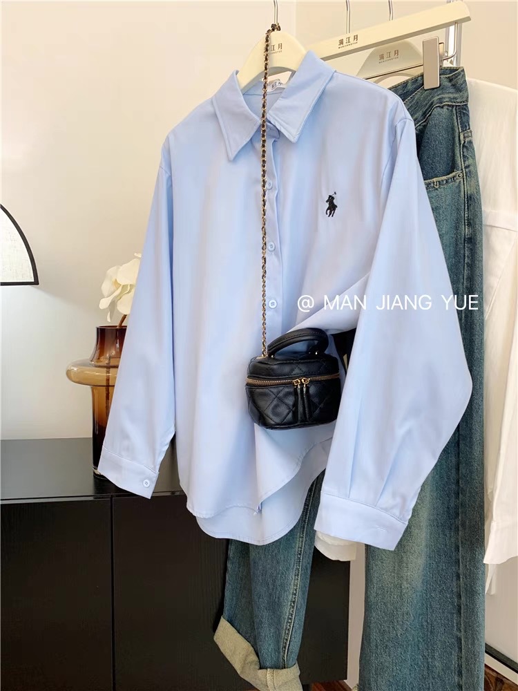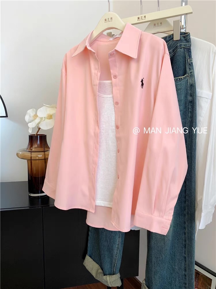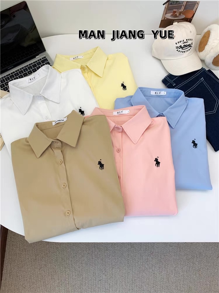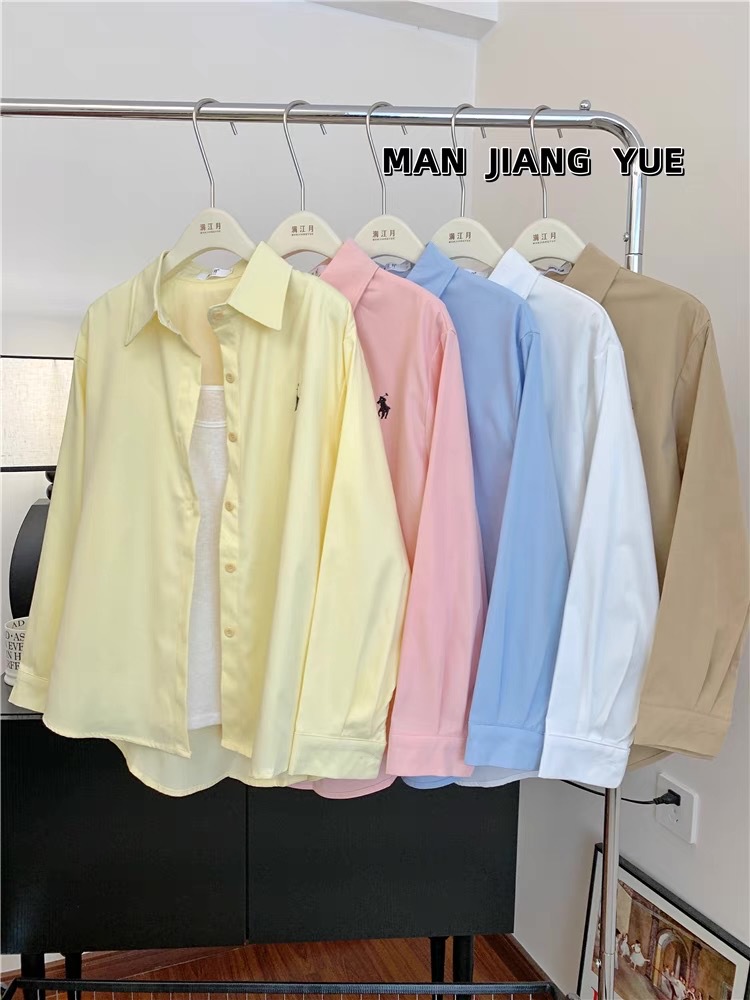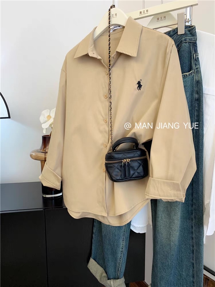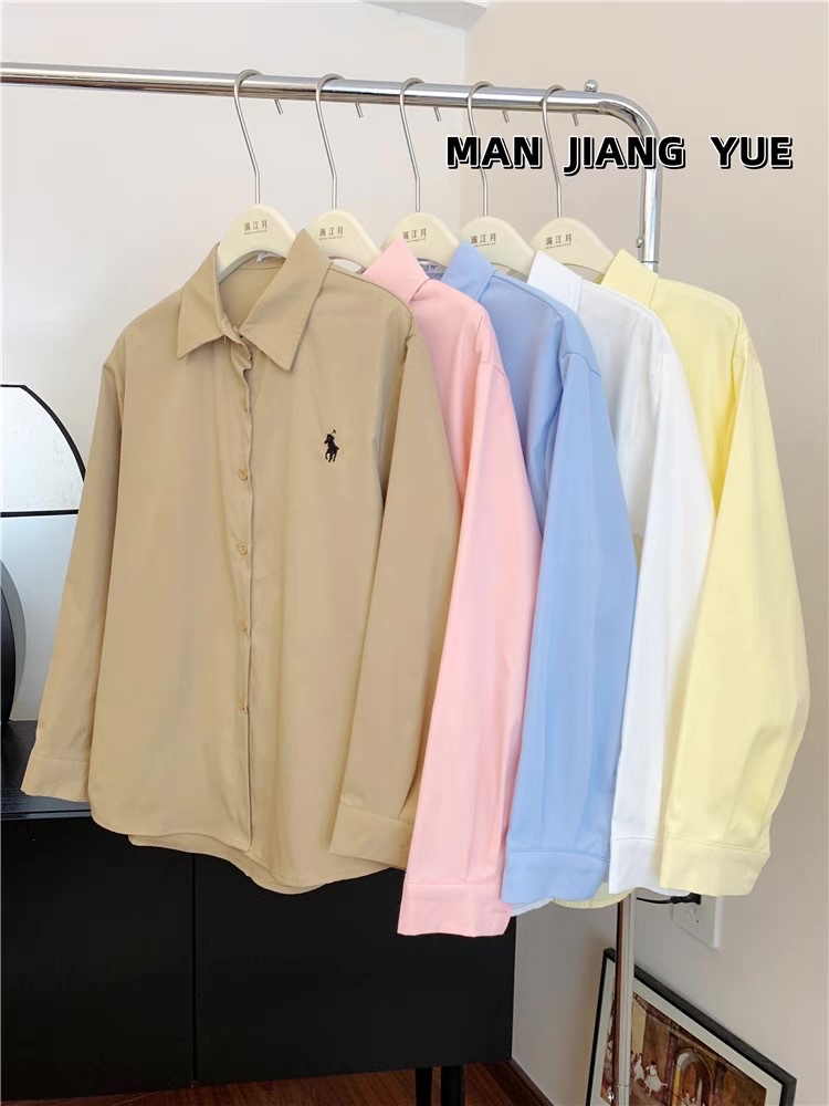 도파민 한국 포니 자수 폴로 칼라 셔츠 여성 봄 여름 새로운 틈새 디자인 루즈 캐주얼 셔츠스토어 가기