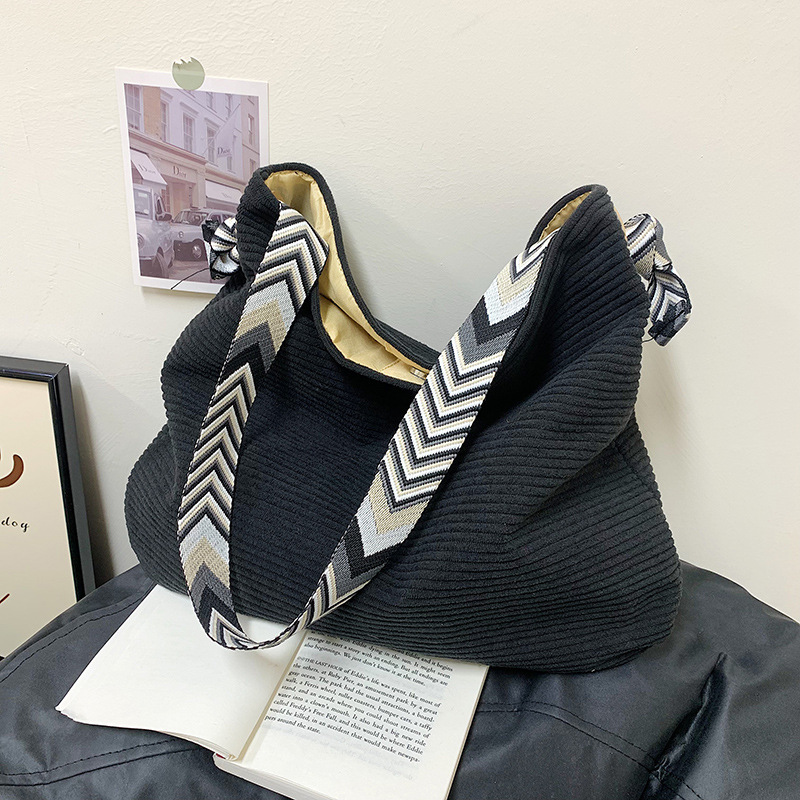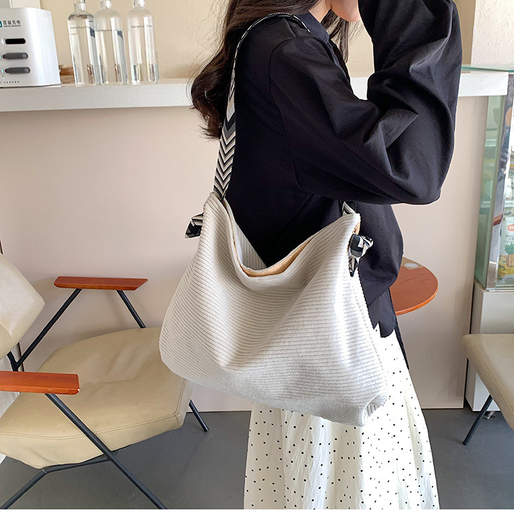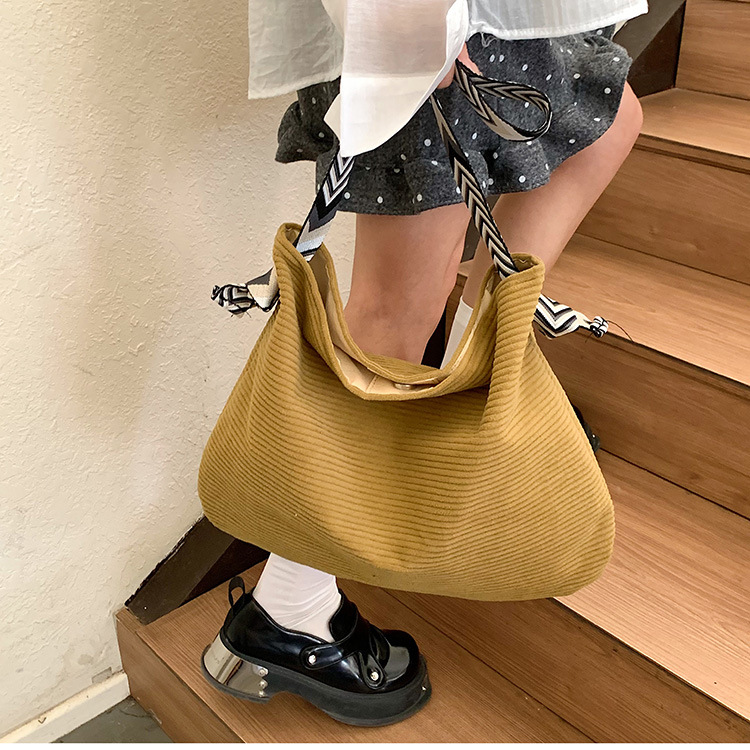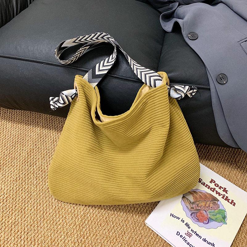여성을위한 게으른 스타일 대용량 겨드랑이 가방 2025 가을, 겨울 새로운 코듀로이 숄더 백 코듀로이 토트 백스토어 가기