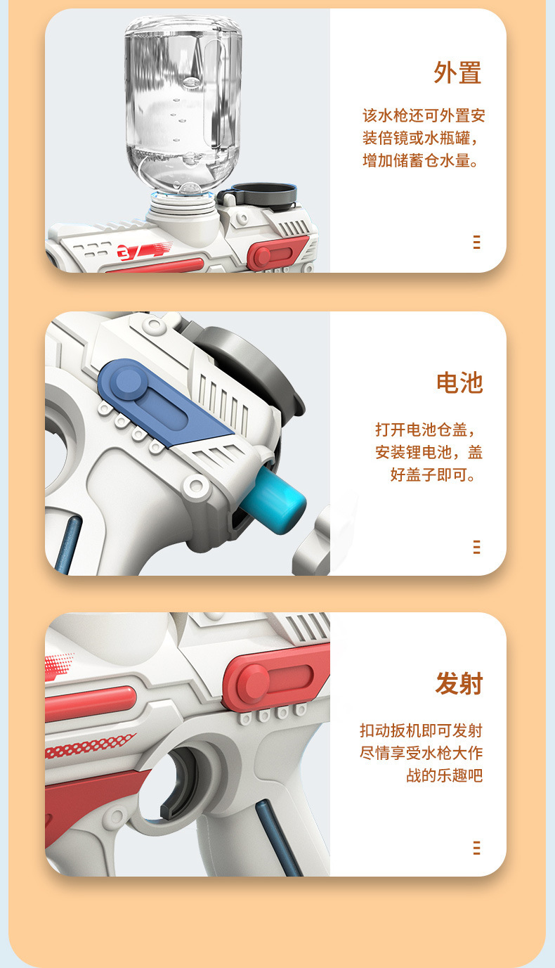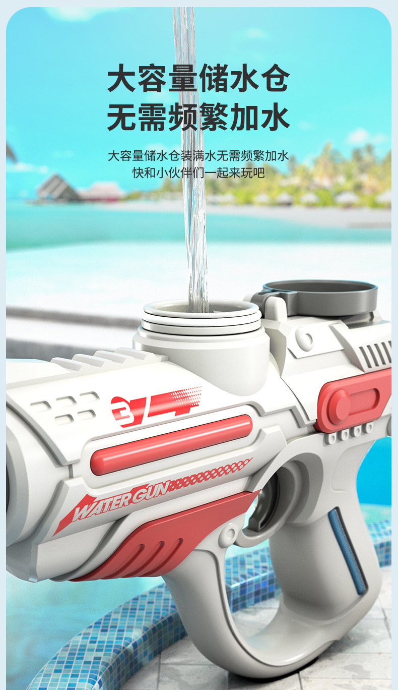국경 간 우주 공상 과학 스타일 전기 고속 연속 물총 완전 자동 물 싸움 어린이 물총 장난감스토어 가기