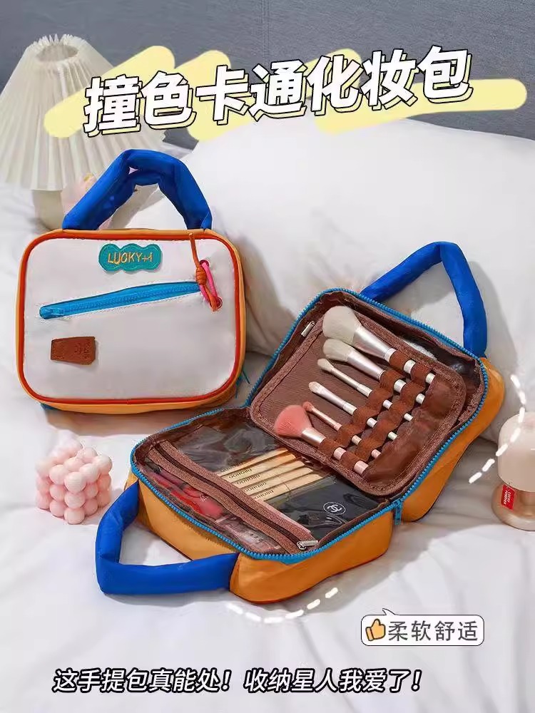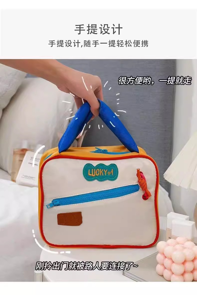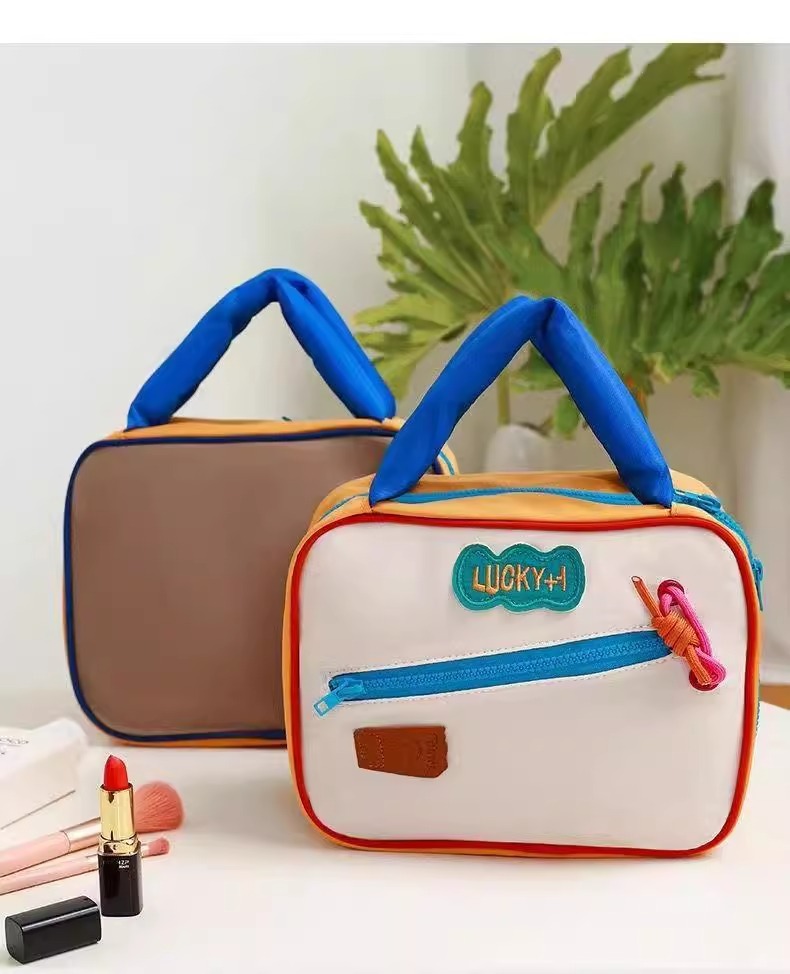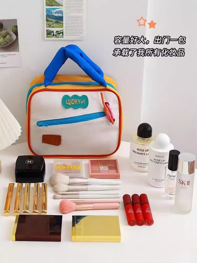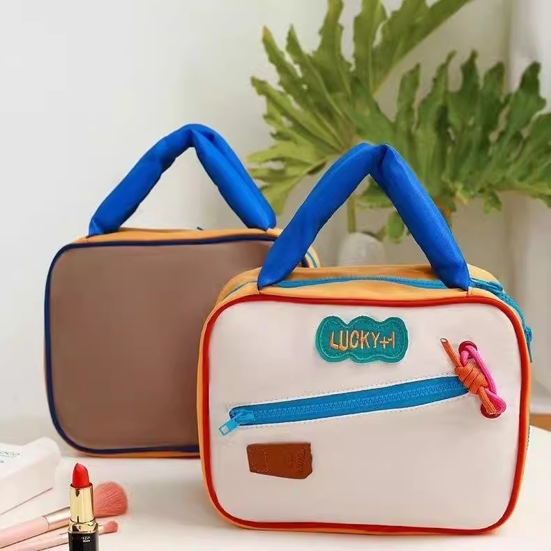 귀여운 대비 컬러 화장품 가방 도매 대용량 여행 휴대용 워시 백 새로운 스타일 맞춤형 스토리지 백스토어 가기