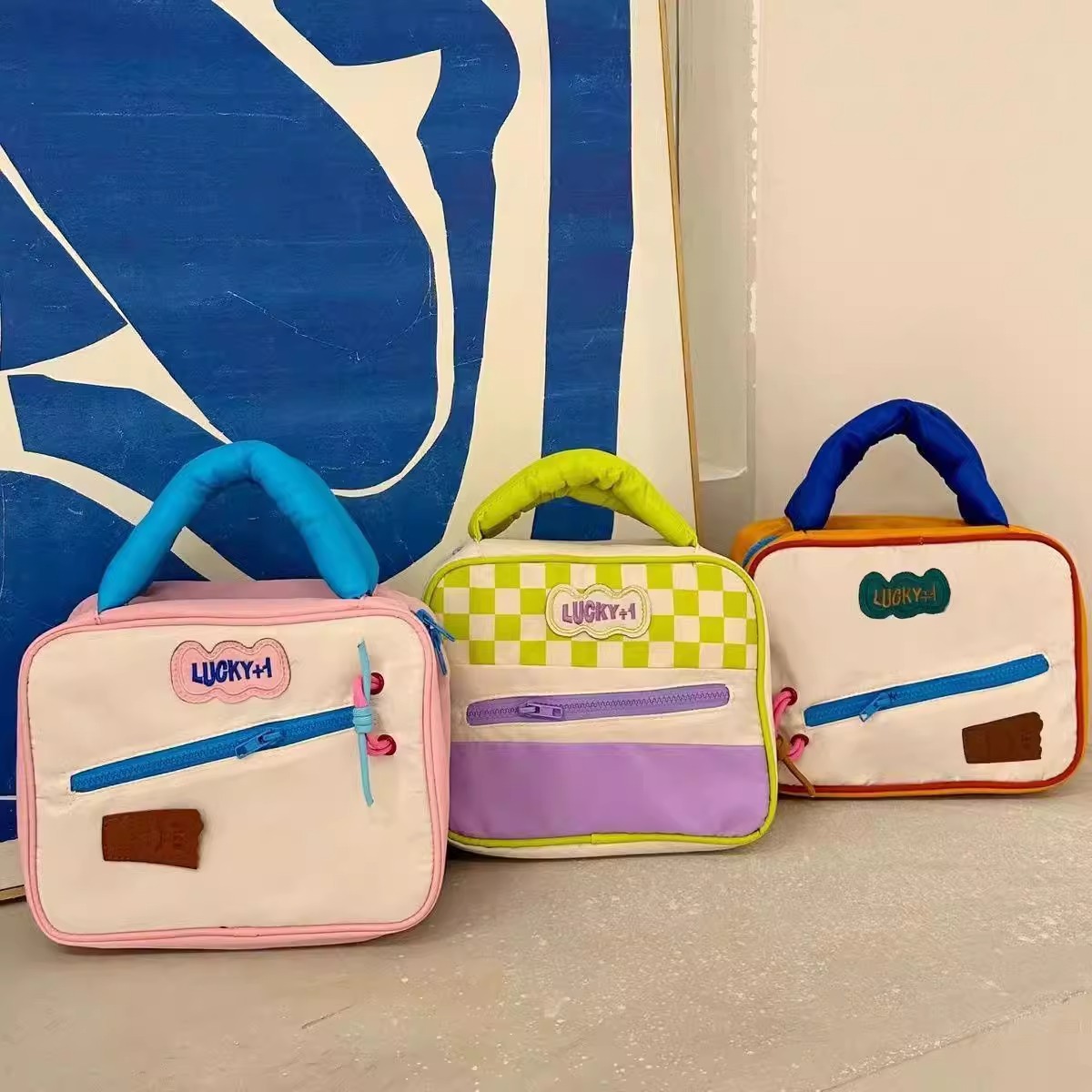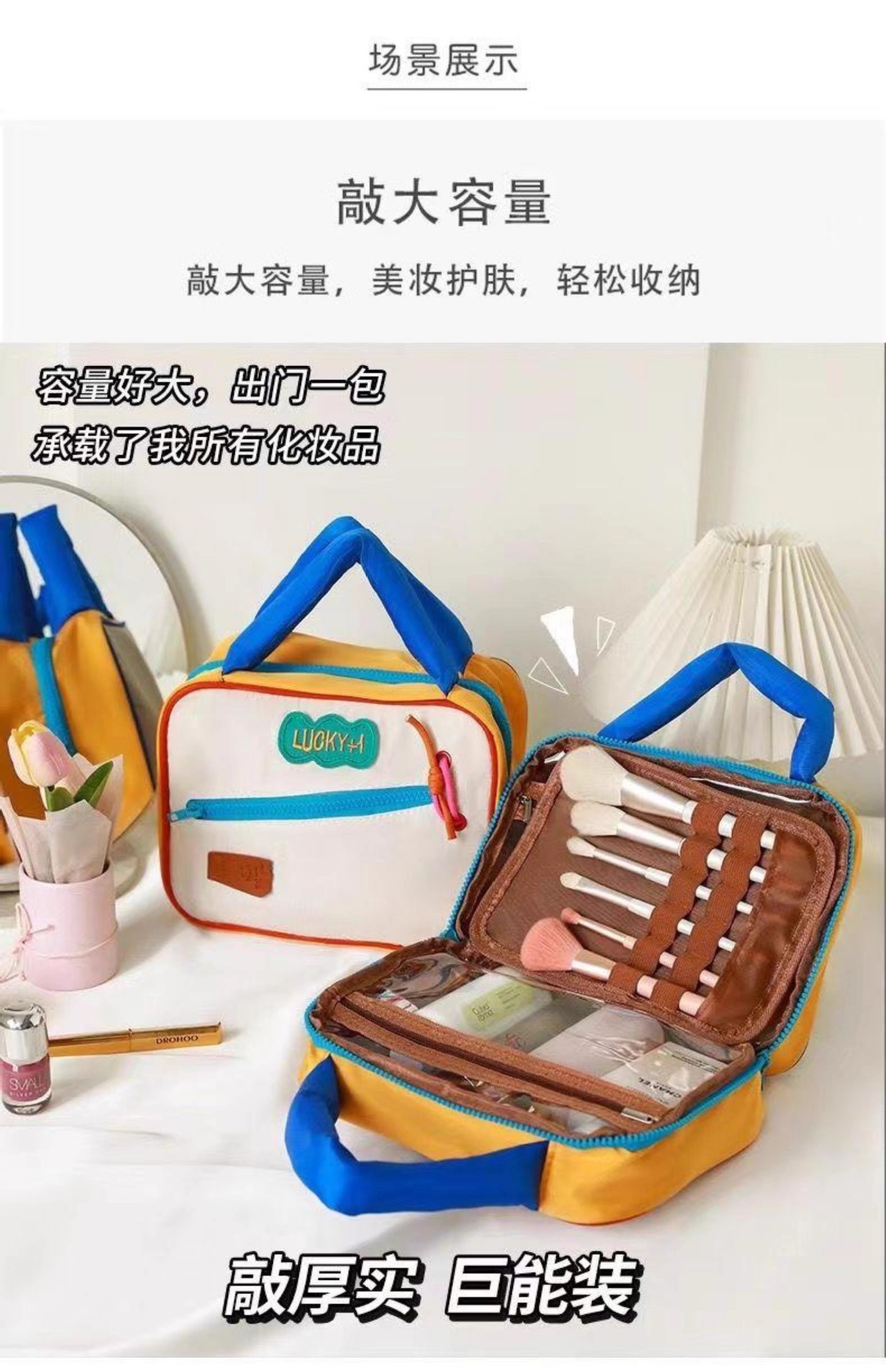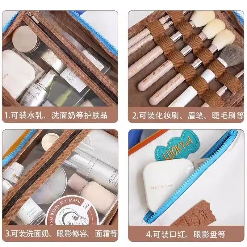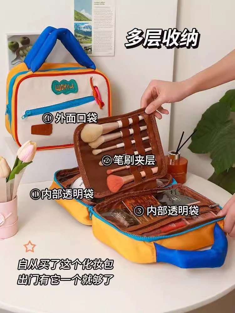 귀여운 대비 컬러 화장품 가방 도매 대용량 여행 휴대용 워시 백 새로운 스타일 맞춤형 스토리지 백스토어 가기