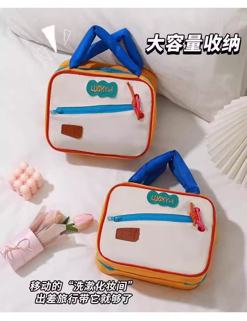 귀여운 대비 컬러 화장품 가방 도매 대용량 여행 휴대용 워시 백 새로운 스타일 맞춤형 스토리지 백
