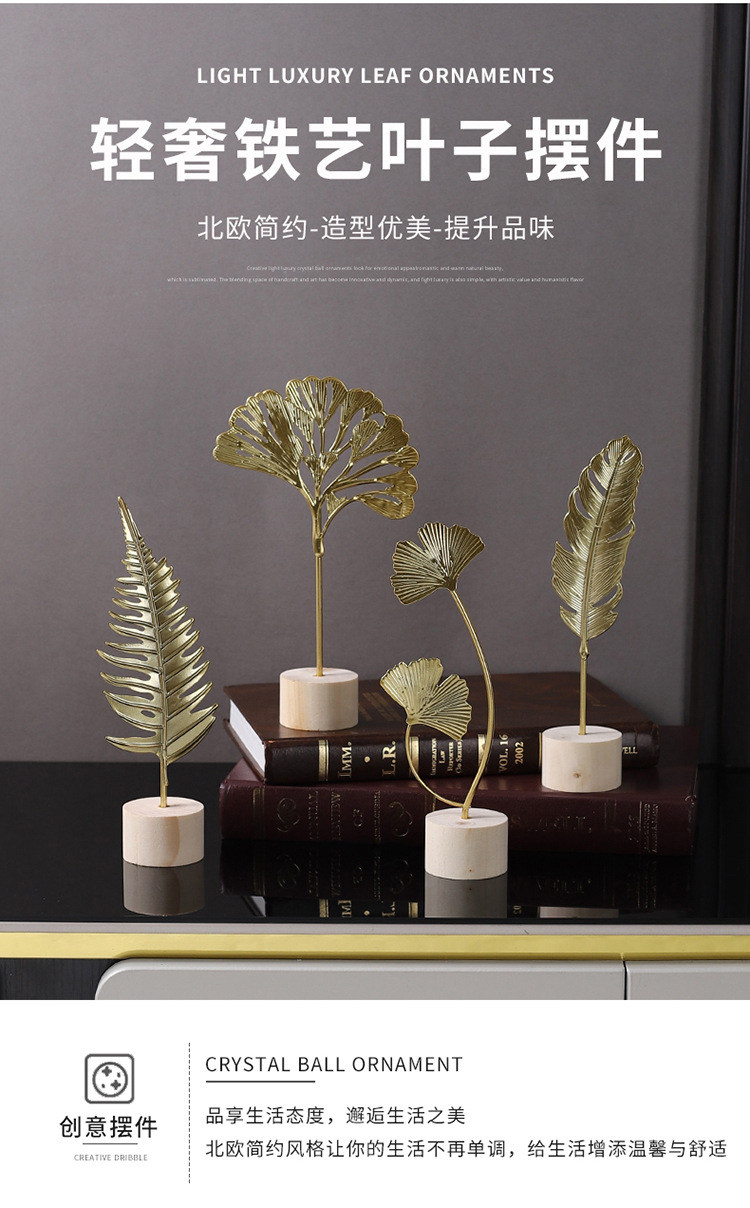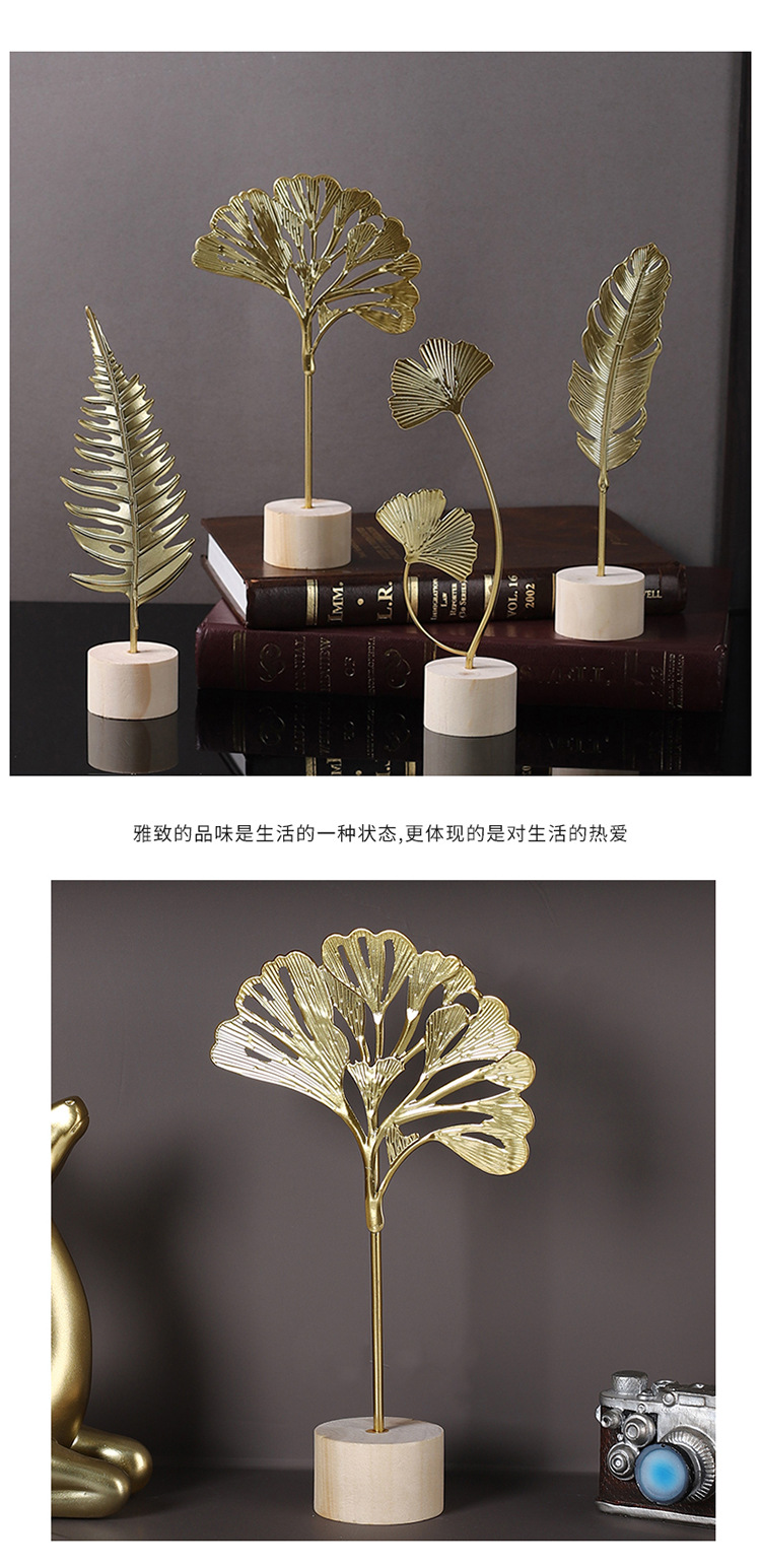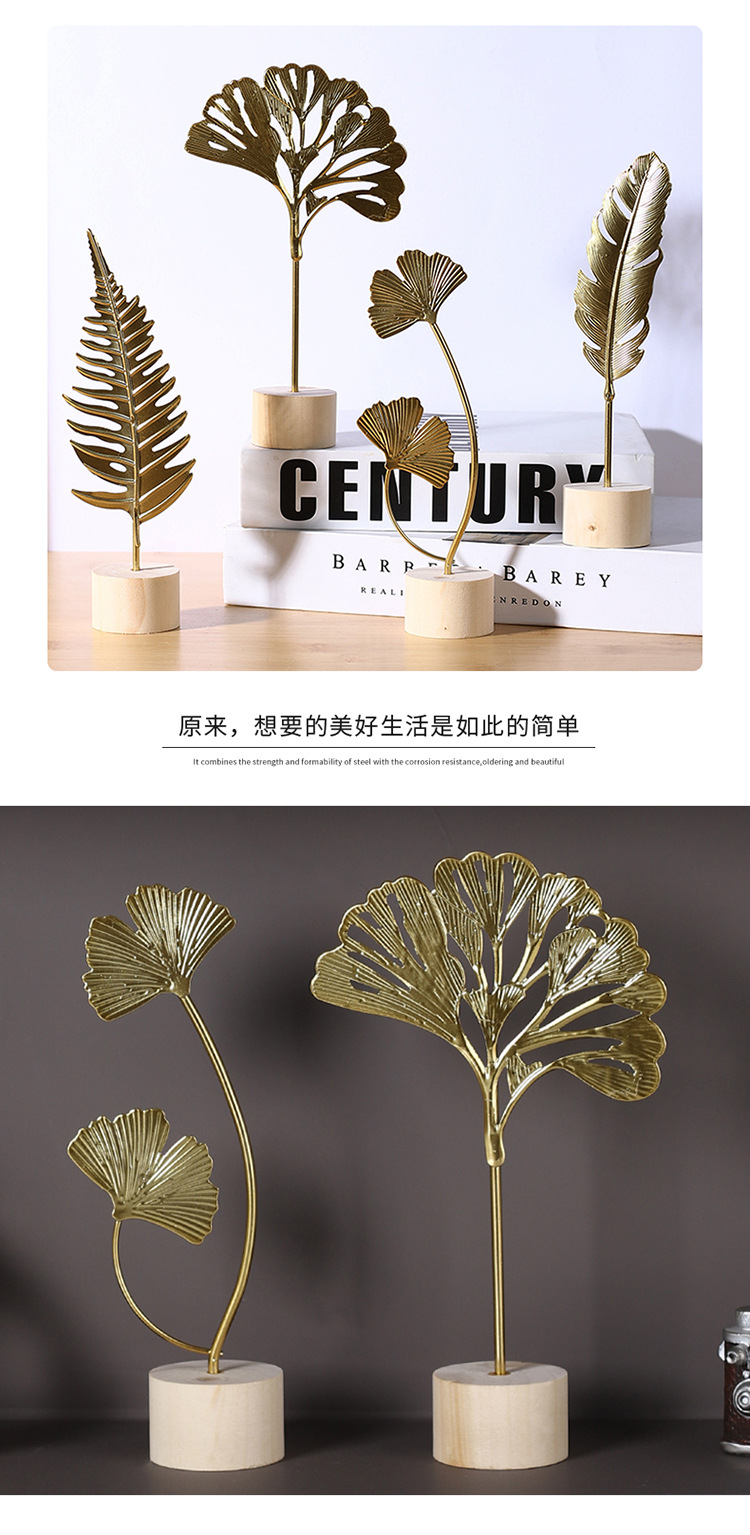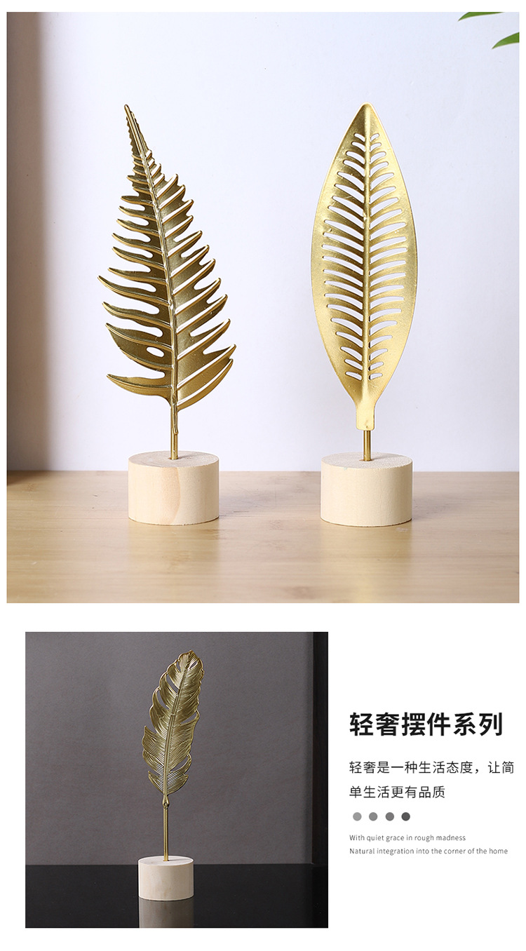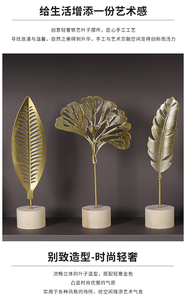 가벼운 고급 철 잎 장식품 나무베이스 공예 사무실 장식 홈 입구 TV 캐비닛 장식스토어 가기