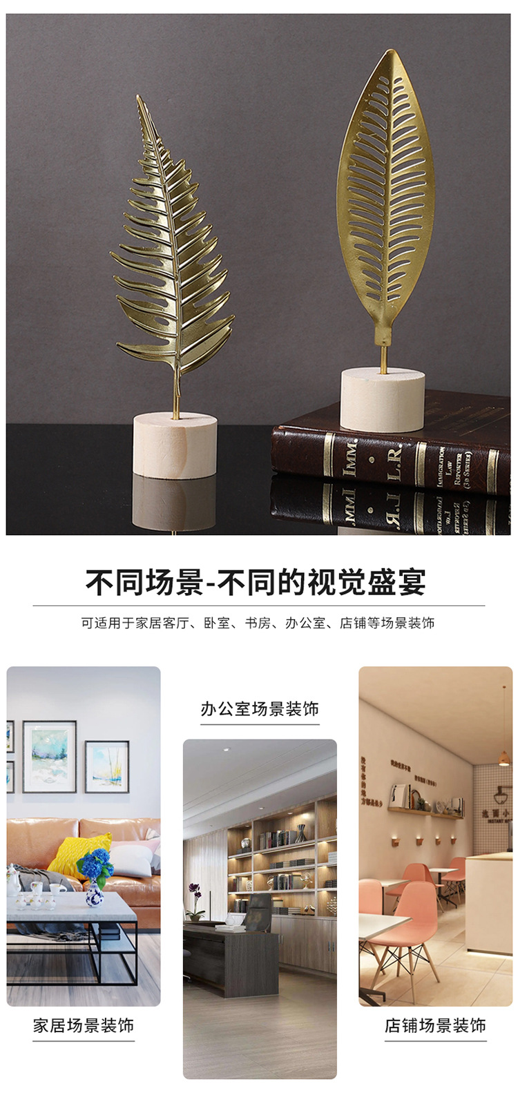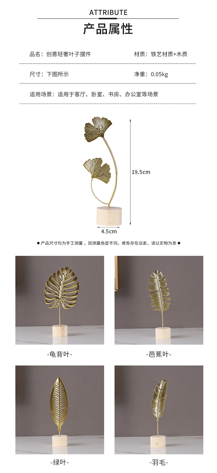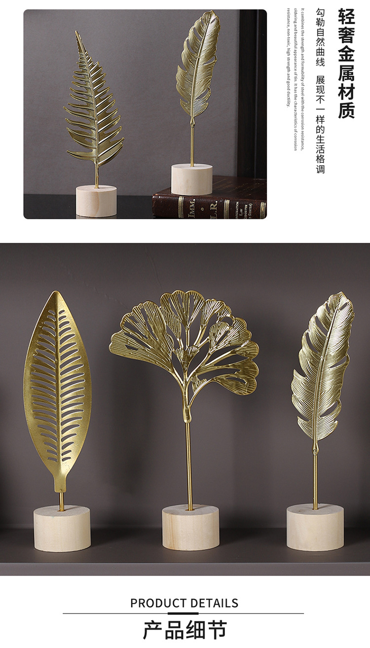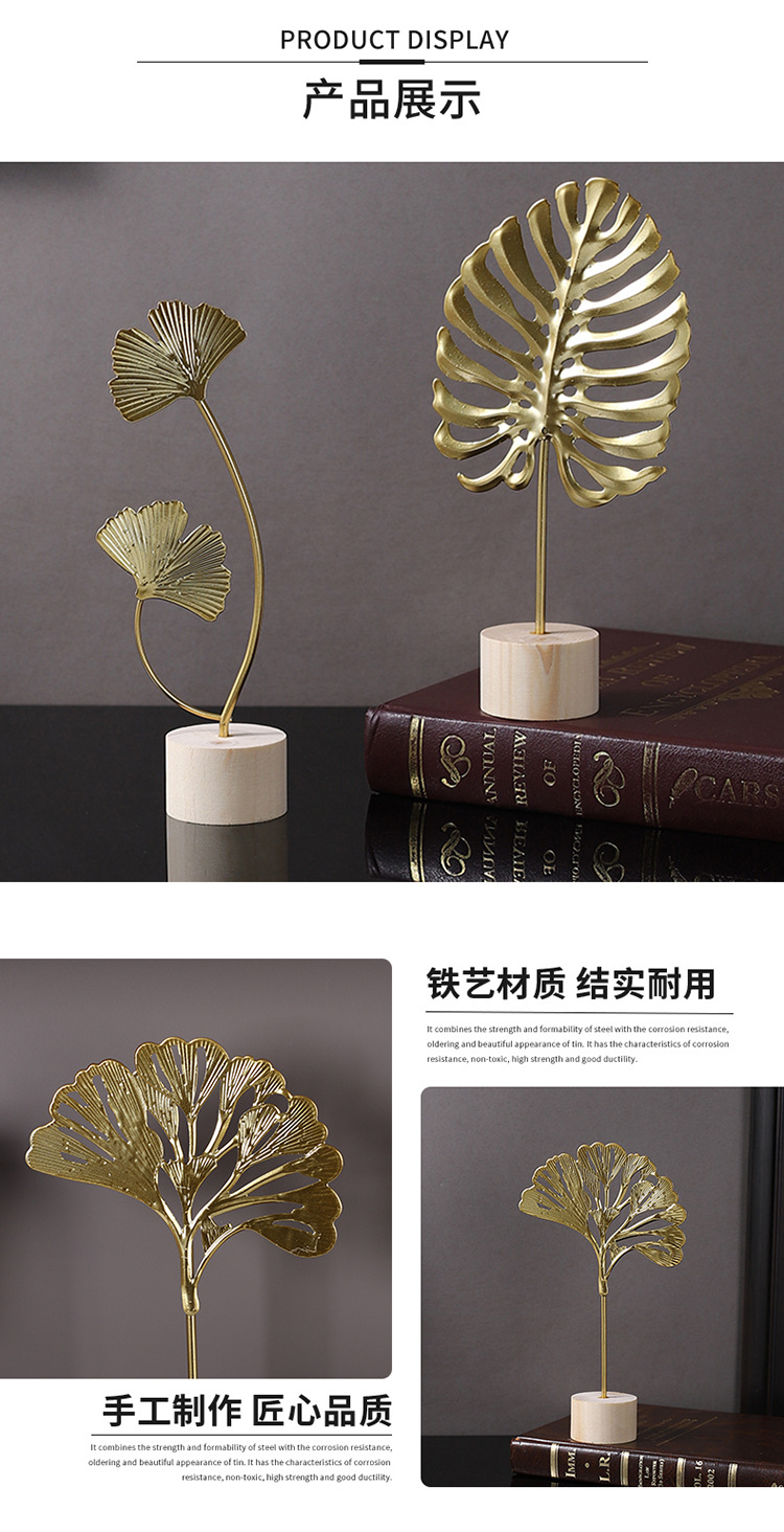 가벼운 고급 철 잎 장식품 나무베이스 공예 사무실 장식 홈 입구 TV 캐비닛 장식스토어 가기