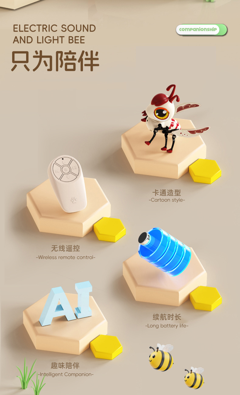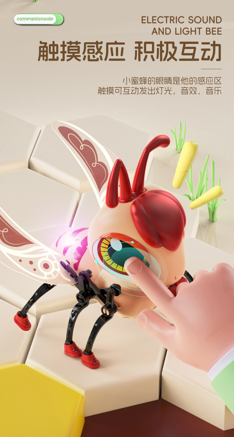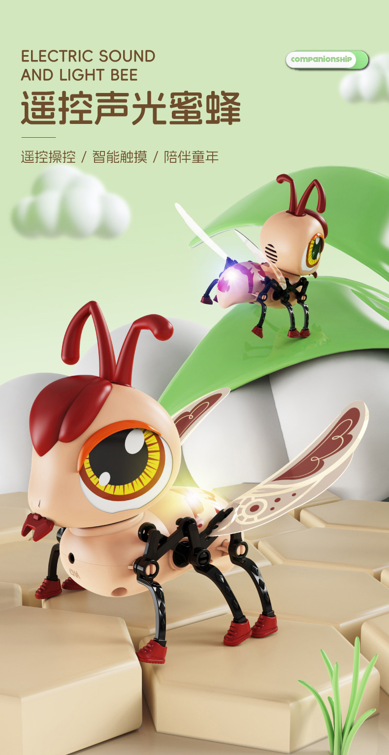 국경 간 새로운 원격 제어 소리와 빛 꿀벌 지능형 터치 감지 다기능 원 클릭 데모 전기 애완 동물 장난감