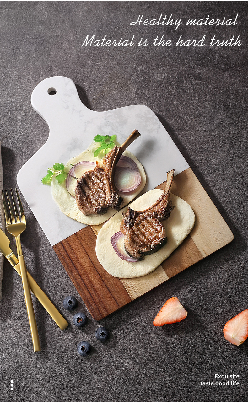 대리석 접합 아카시아 나무 식사 트레이 천연 단단한 나무 레스토랑 상업용 디너 플레이트 플랫 플레이트 스테이크 커팅 보드스토어 가기