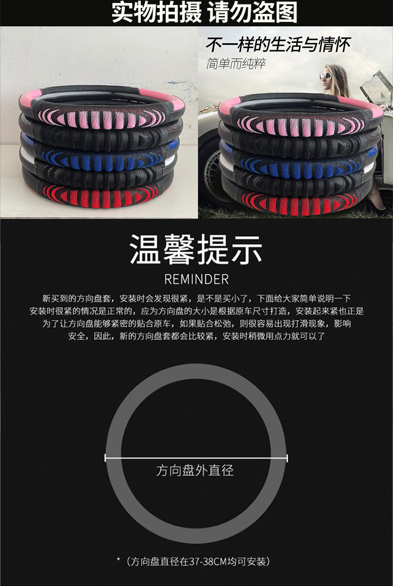 买家注意:标准M号(38中号),适合百分之九十五的车型,个别小型车或大型车需要大小号的可联系客服发大小号。尺寸有38圆形D型 36圆形D型上下平。需要35cm上下平底的留言或者联系客服。