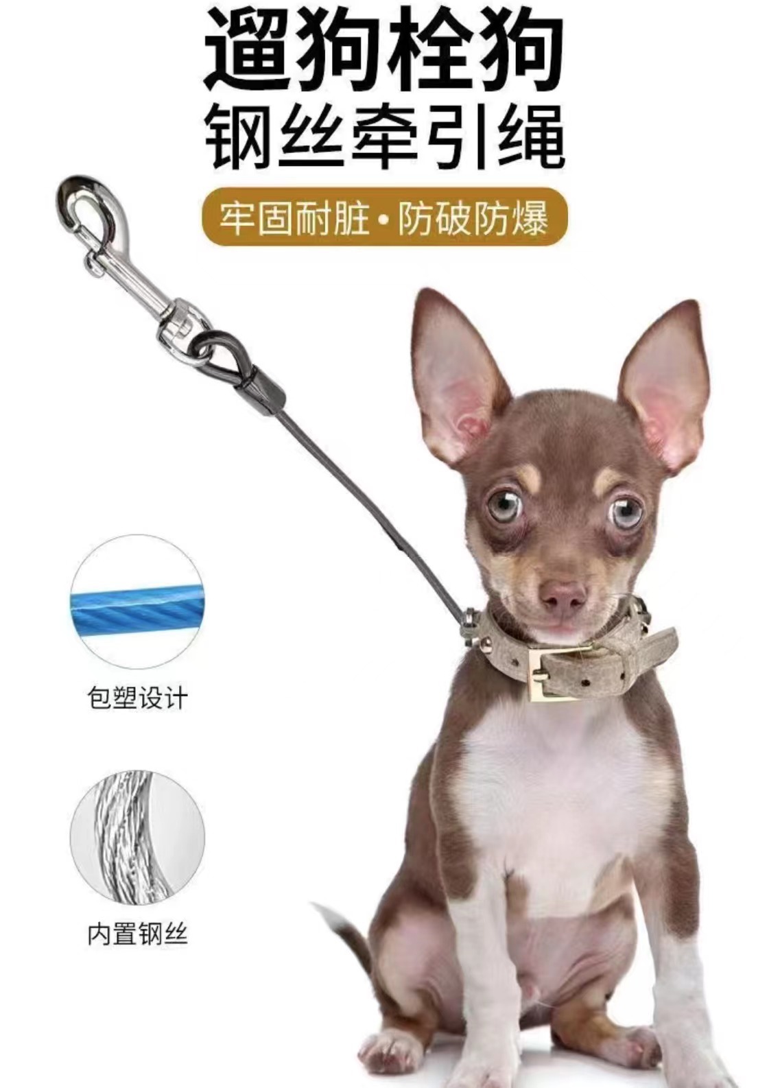 애완견 목줄, 물림 방지, 내구성, 파손 방지, 폭발 방지, 스프링 금속 회전 고리, 대형견용 목줄