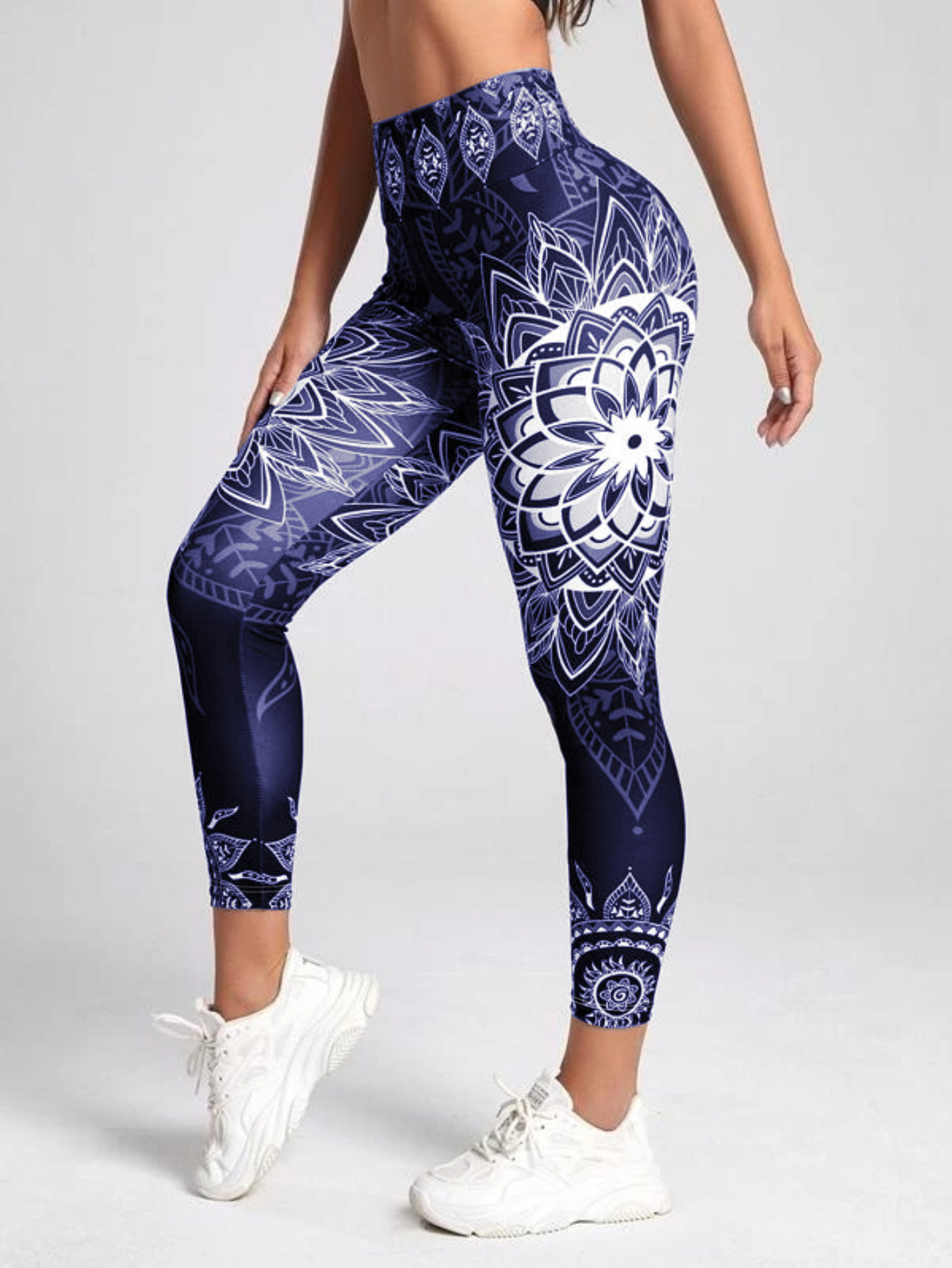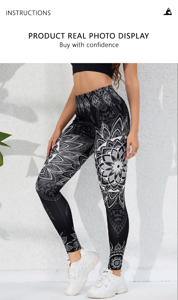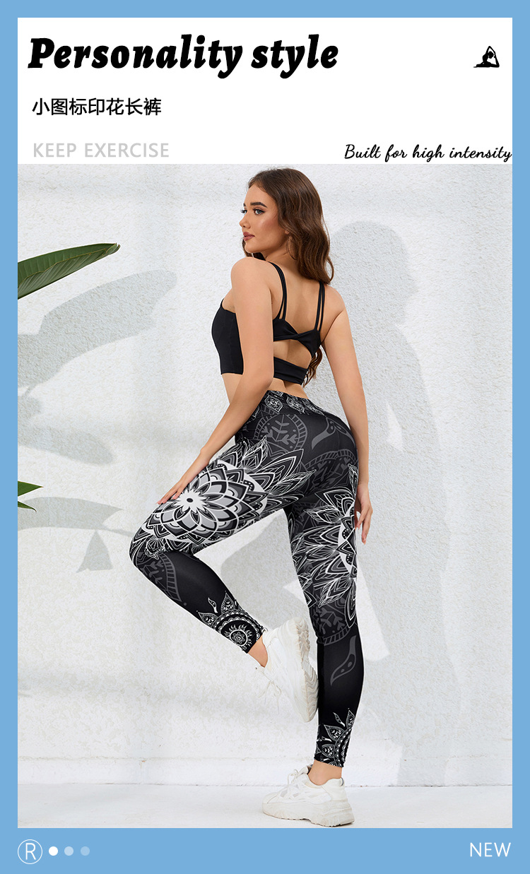 여성용 잉크 프린트 요가복, 타이트한 핏, 하이웨이스트, 엉덩이 리프팅, 속건성 발굽 바지, 유럽 및 미국 스포츠 피트니스 요가 바지스토어 가기