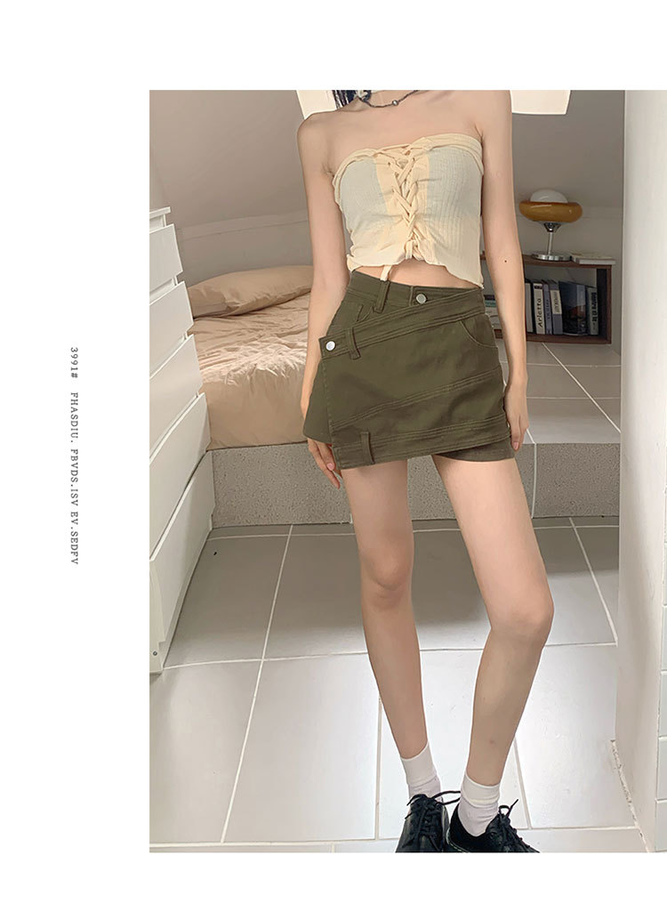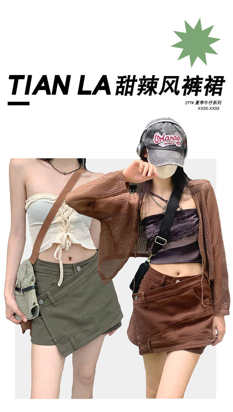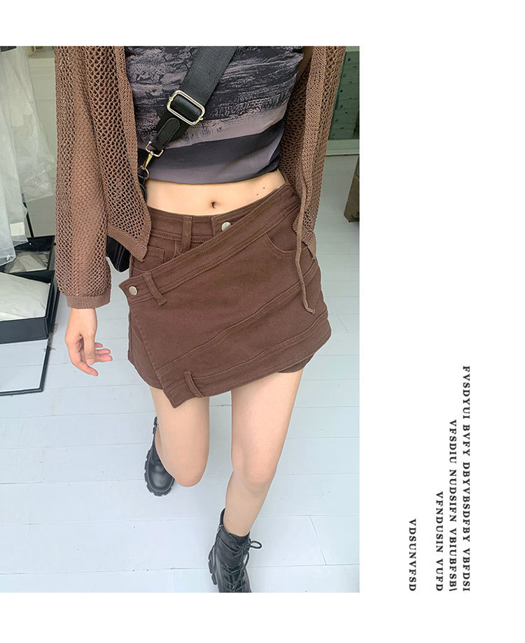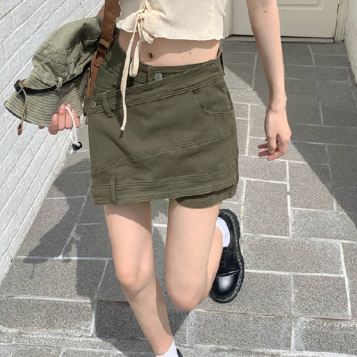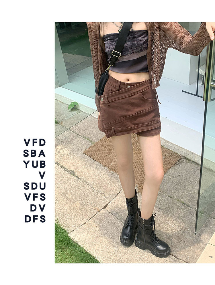 YC 불규칙한 핫 소녀 데님 스커트 여성 여름 디자인 틈새 하이 웨이스트 슬리밍 a 라인 반바지 스커트스토어 가기