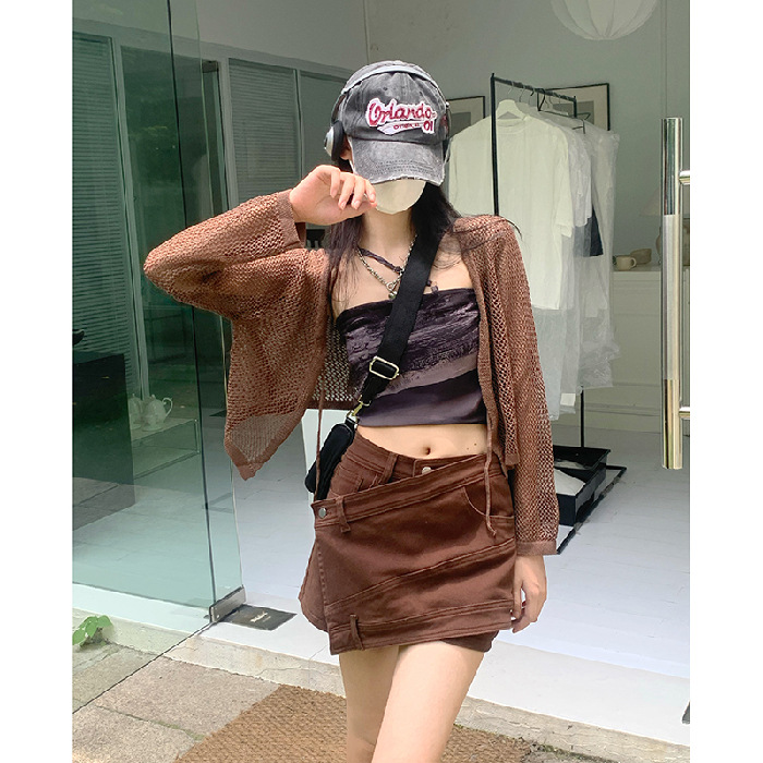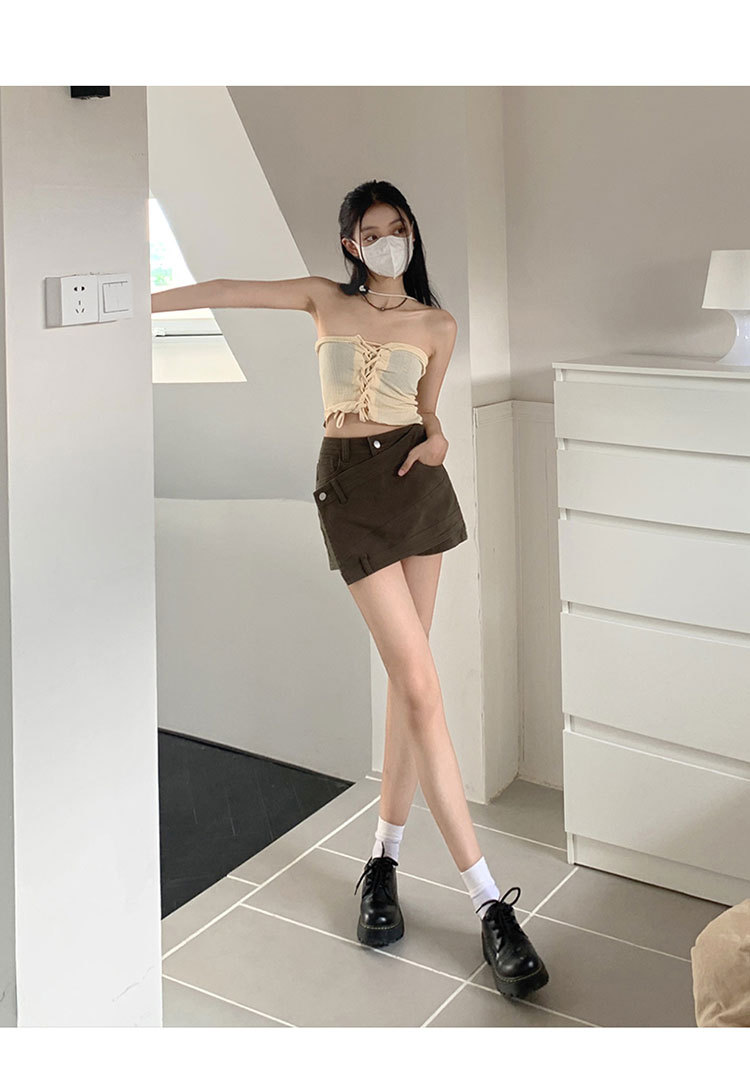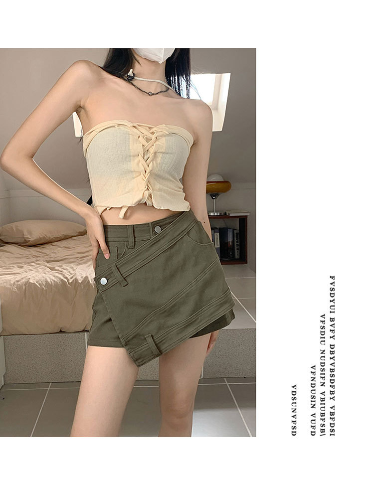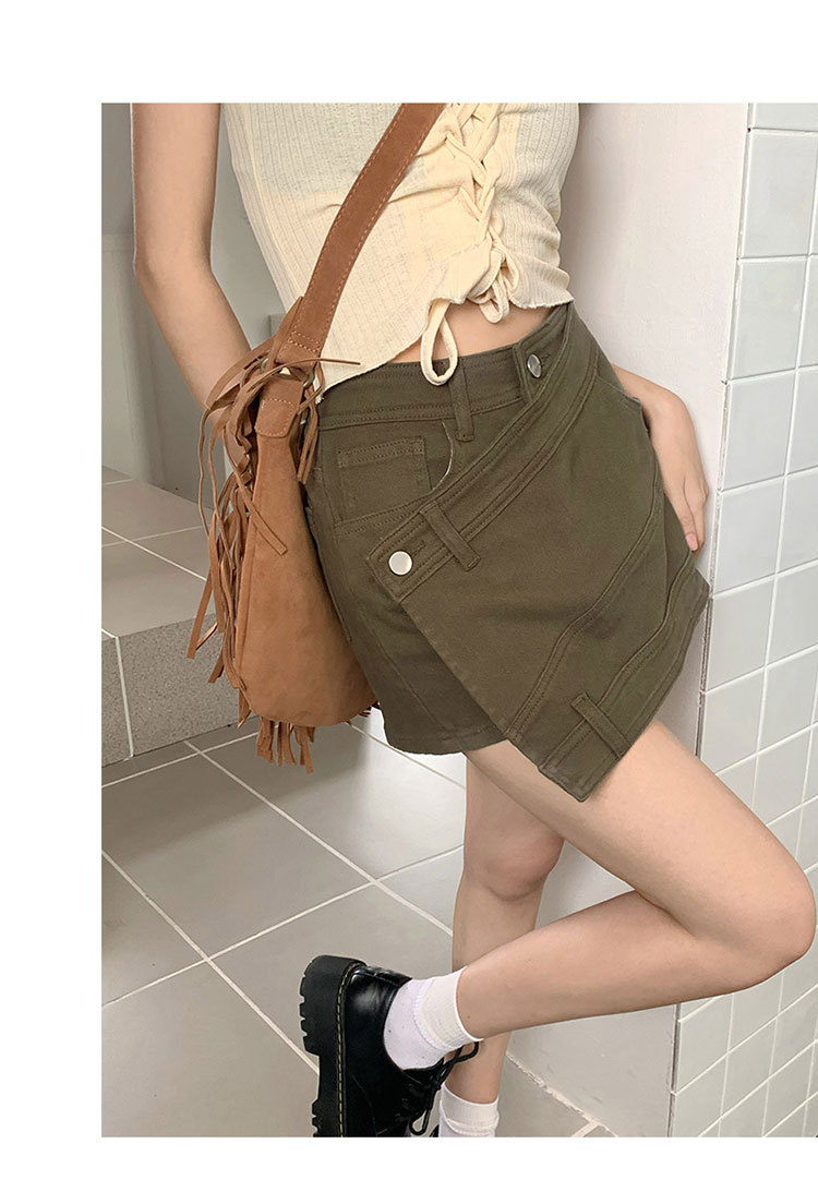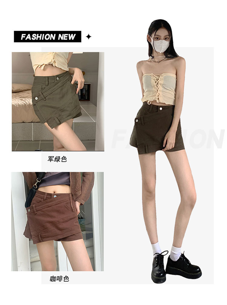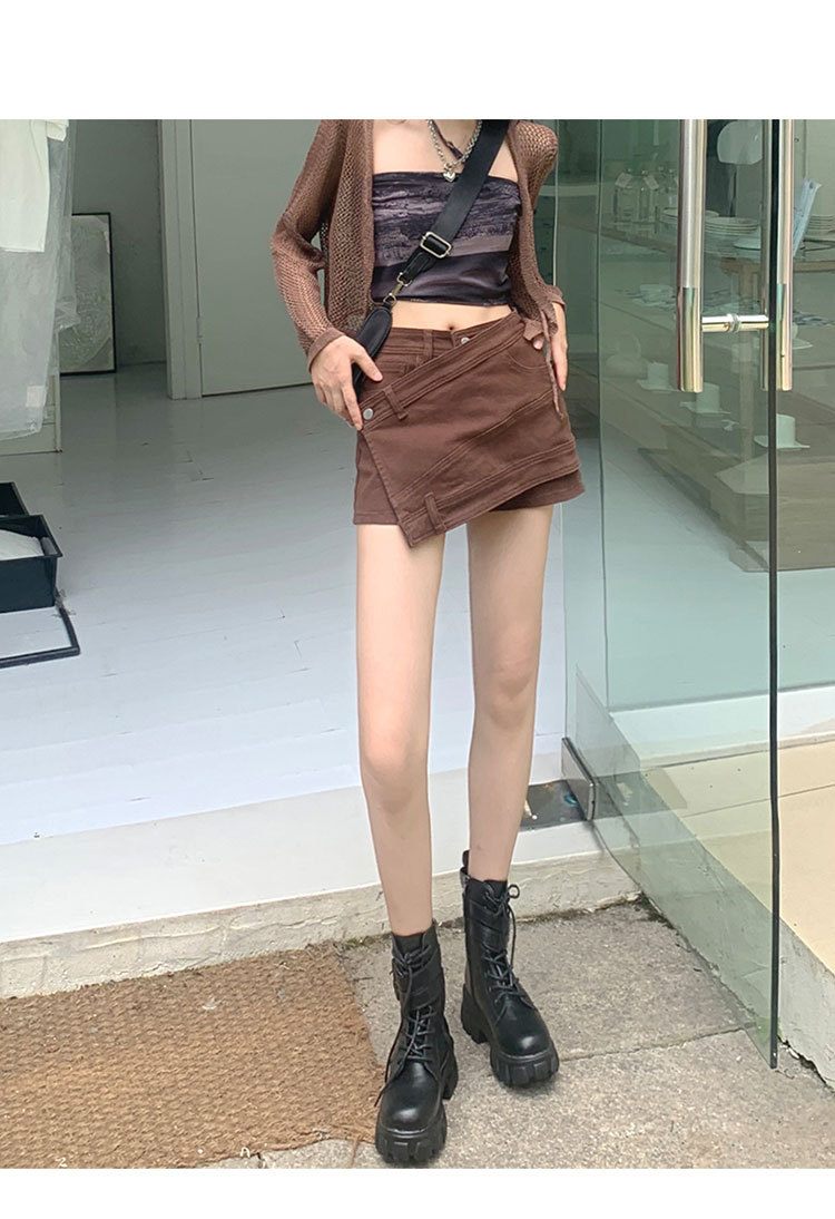 YC 불규칙한 핫 소녀 데님 스커트 여성 여름 디자인 틈새 하이 웨이스트 슬리밍 a 라인 반바지 스커트스토어 가기