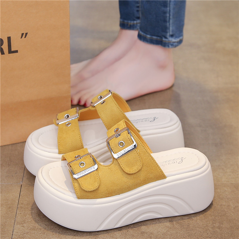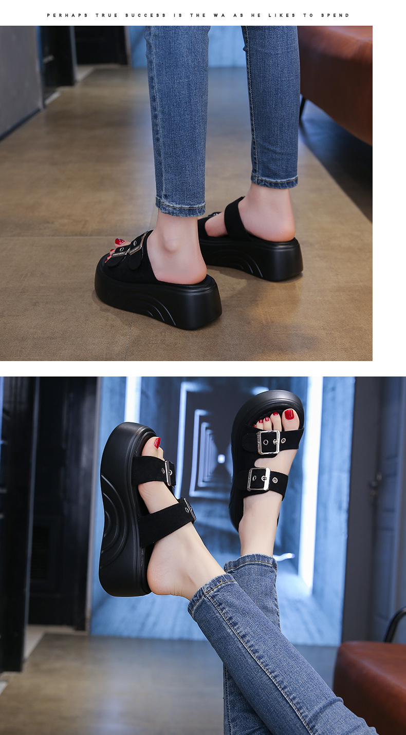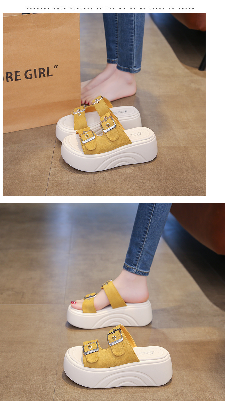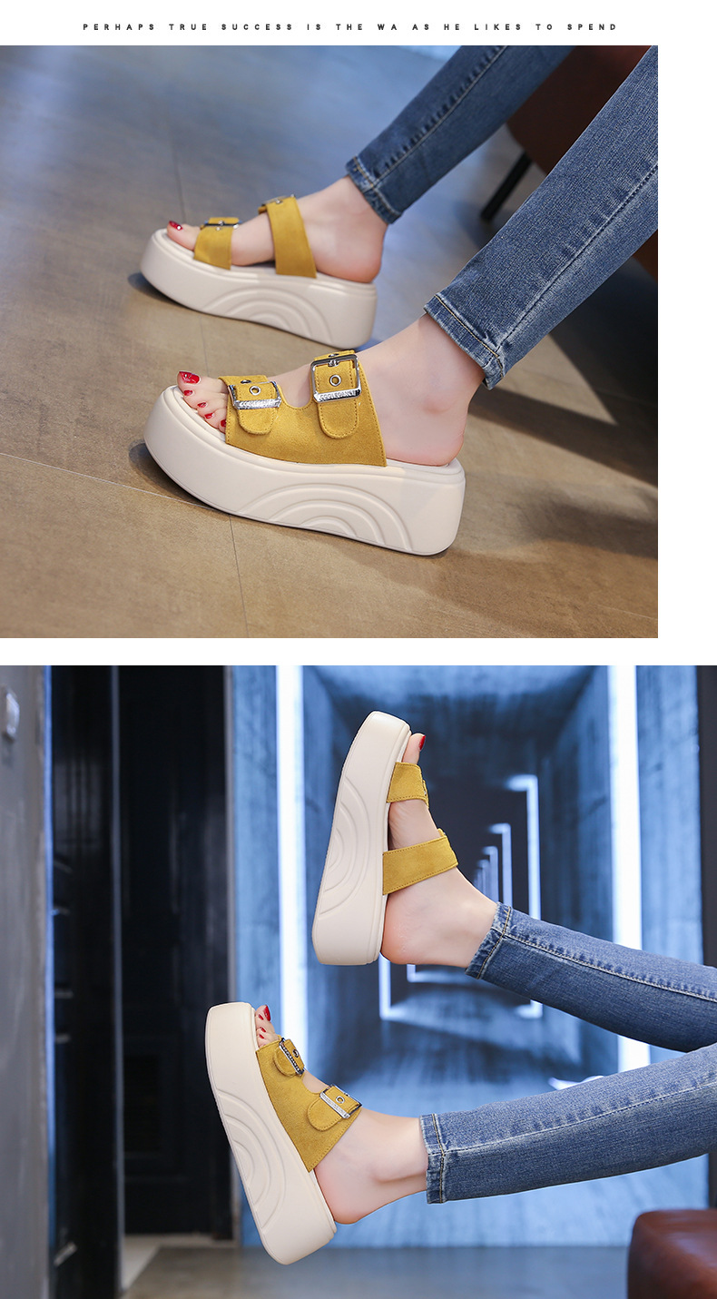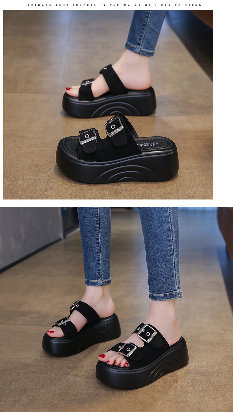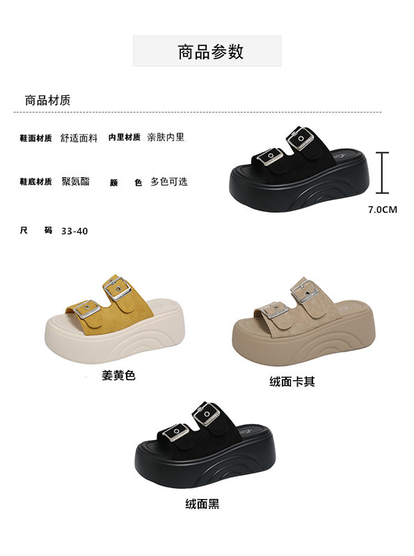 두꺼운 밑창 슬리퍼 여성용 스몰 사이즈 부드러운 밑창 샌들과 슬리퍼 2025 새로운 올 매치 머핀 웨지 힐 벨트 버클 한 단어 슬리퍼스토어 가기
