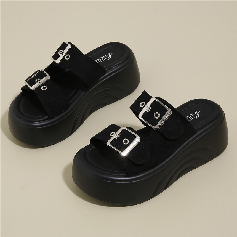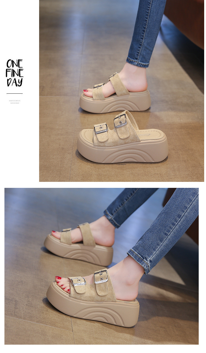 두꺼운 밑창 슬리퍼 여성용 스몰 사이즈 부드러운 밑창 샌들과 슬리퍼 2025 새로운 올 매치 머핀 웨지 힐 벨트 버클 한 단어 슬리퍼