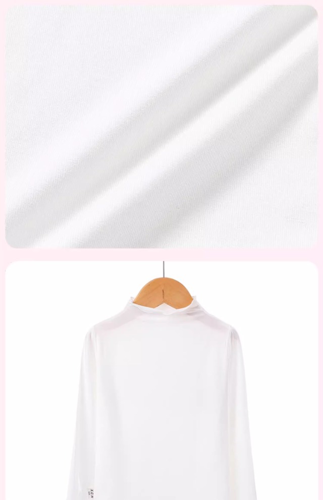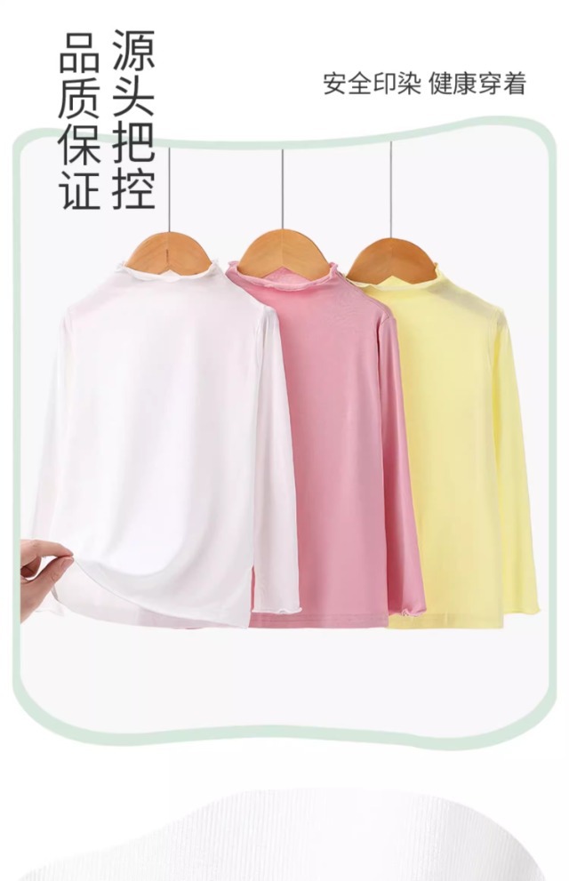 여아용 모달 보텀 셔츠, 얇은 아동용 긴팔 티셔츠, 화이트 하프 터틀넥, 봄, 가을, 중대형 아동용 여아 이너웨어스토어 가기