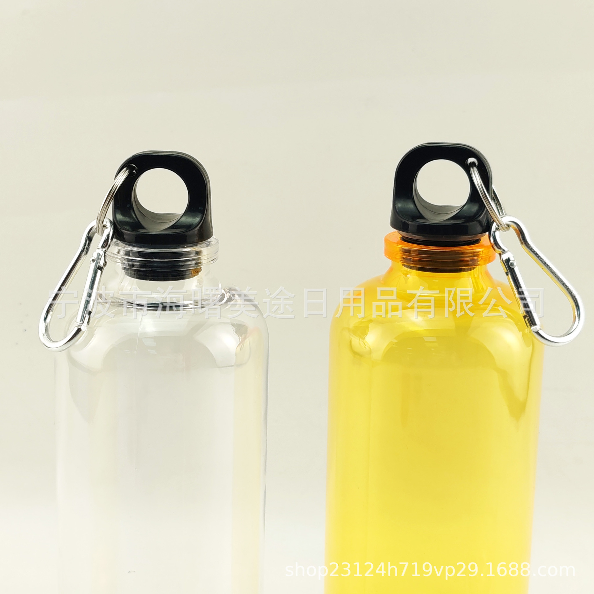 BSCI 공장 재활용 가능한 재료 친환경 400ml PET 스포츠 워터 컵 카라비너 ​​소형 플라스틱 알루미늄 물병