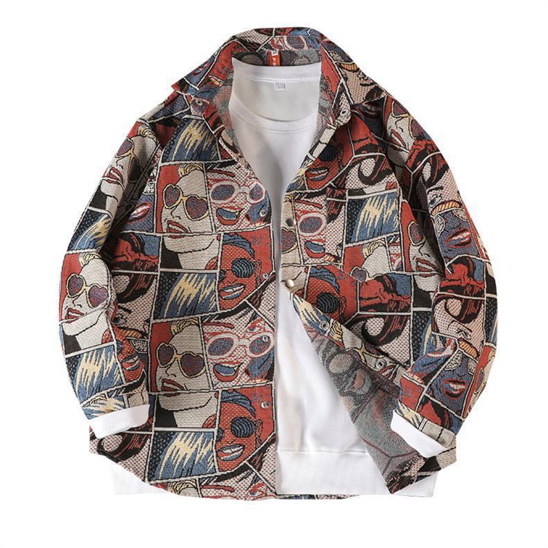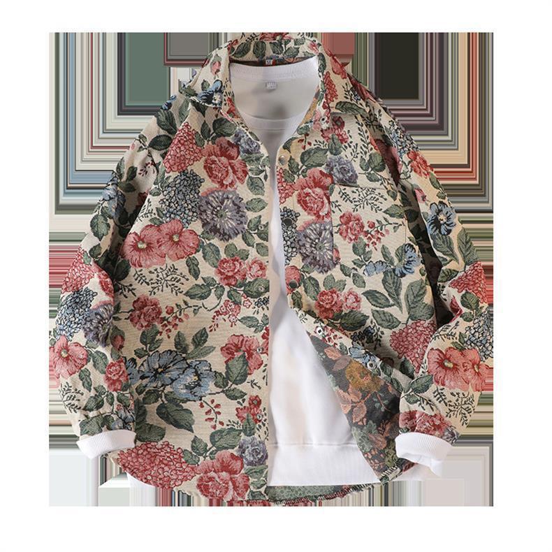 남성 셔츠 재킷 가을 인기 원사 염색 자카드 캐주얼 라펠 재킷 트렌디하고 다재다능한 루즈한 스왈로우 테일 탑스토어 가기