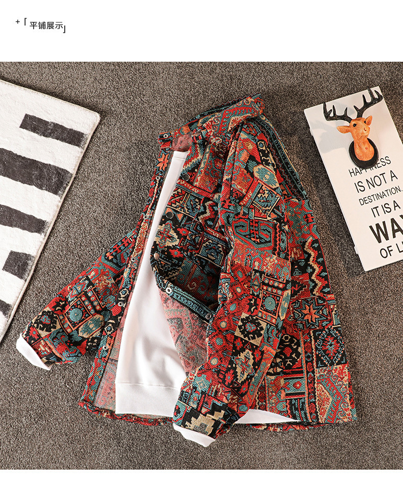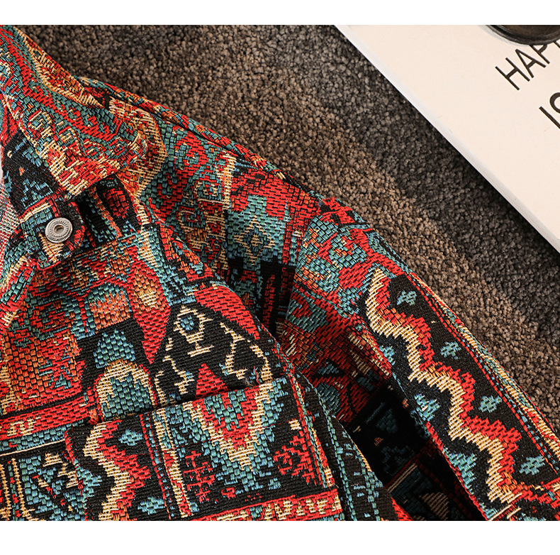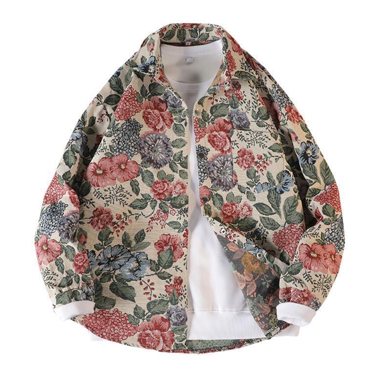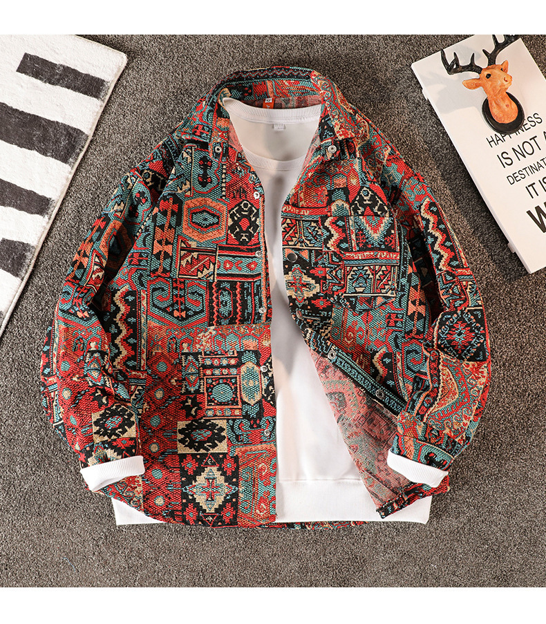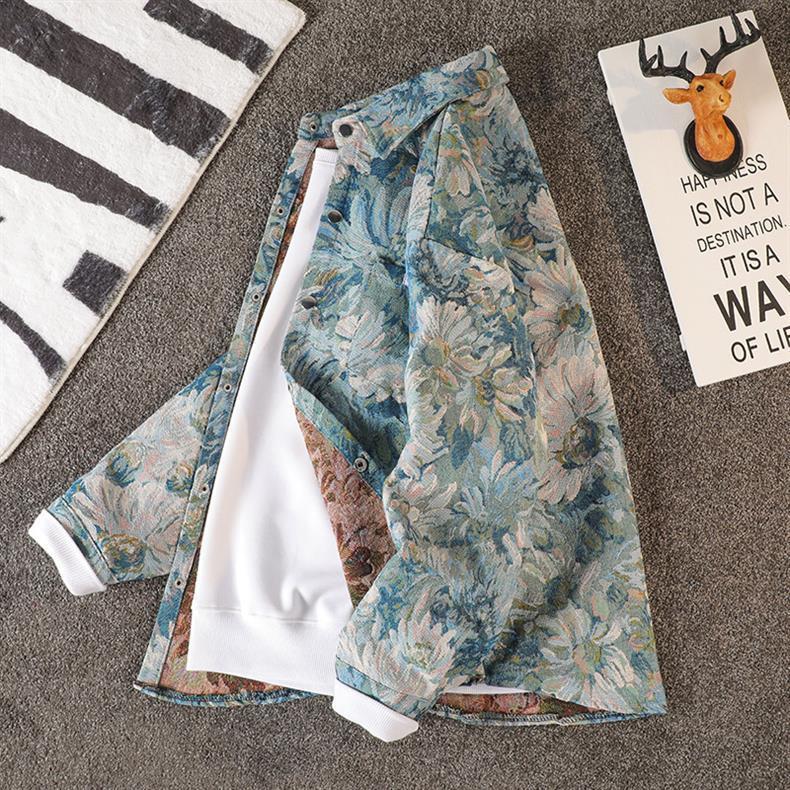 남성 셔츠 재킷 가을 인기 원사 염색 자카드 캐주얼 라펠 재킷 트렌디하고 다재다능한 루즈한 스왈로우 테일 탑