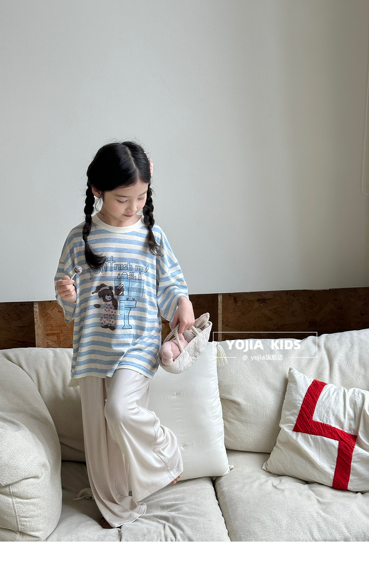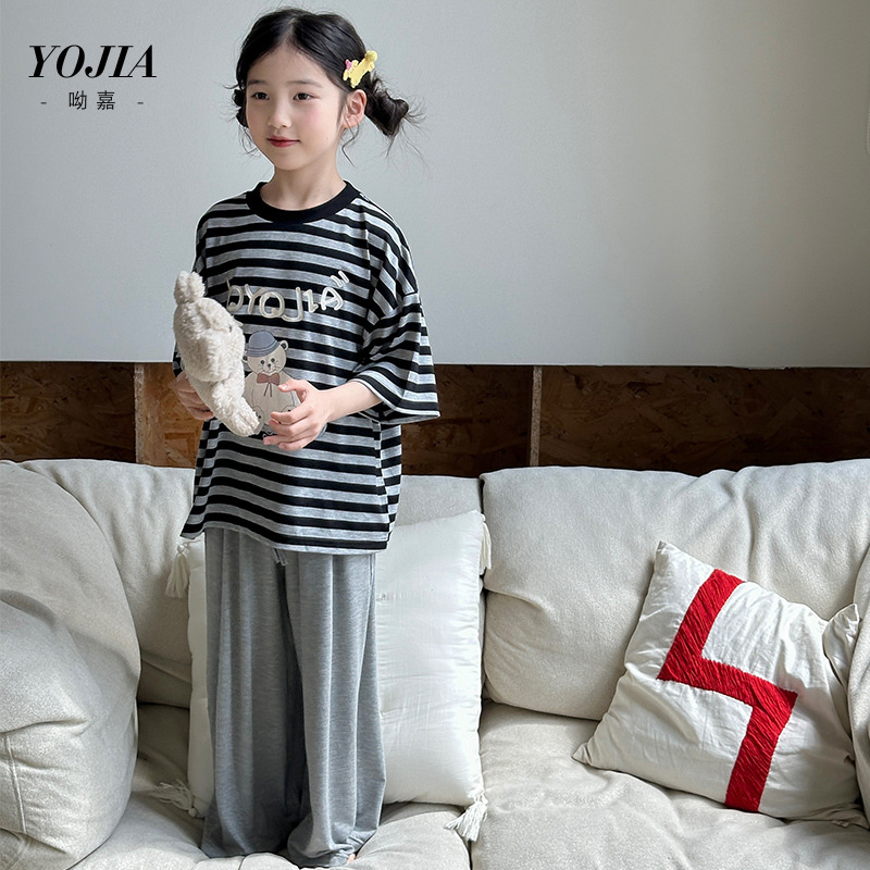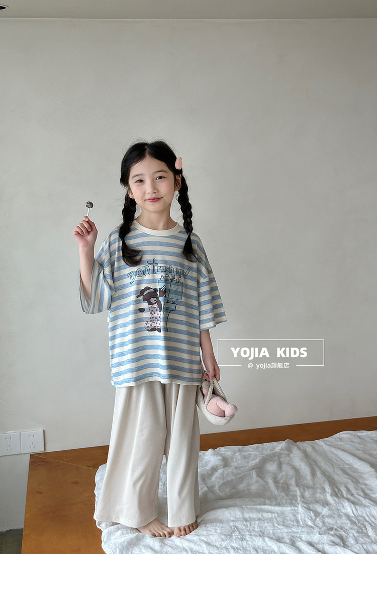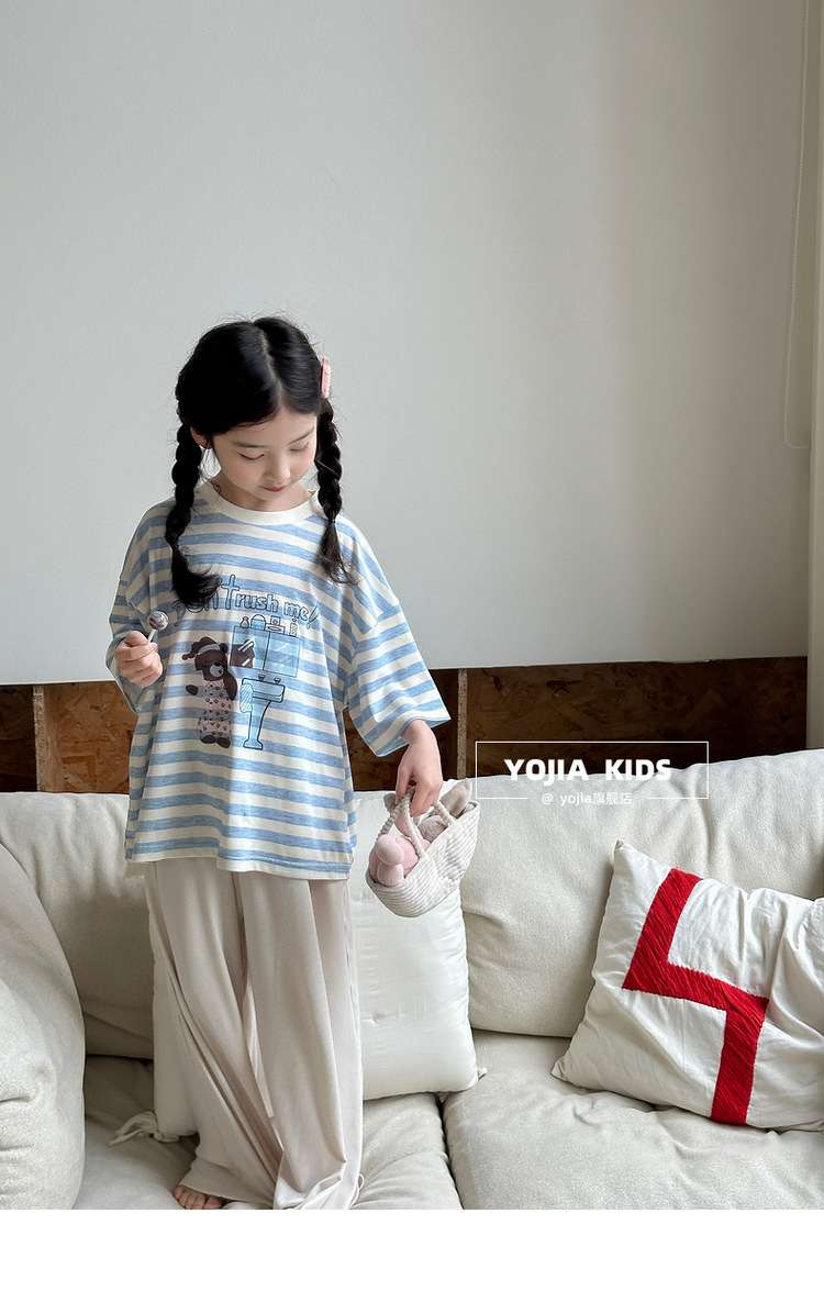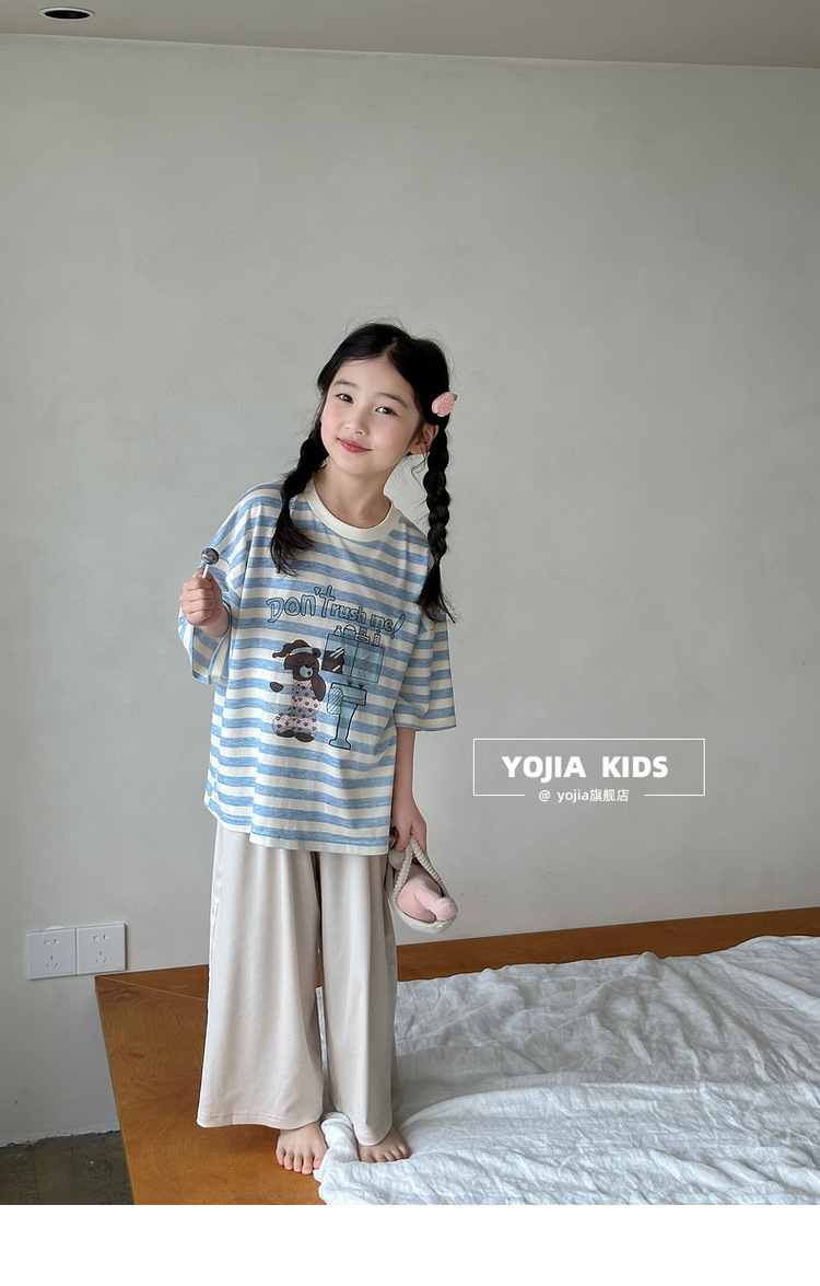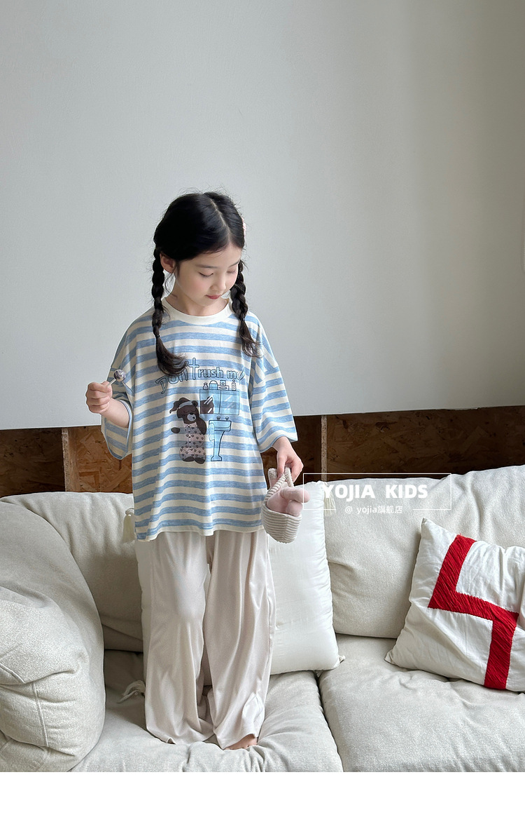 YOJIA 여자 잠옷 여름 2025 새로운 스타일 어린 소녀 여름 정장 어린이 가정 의류 투피스 세트