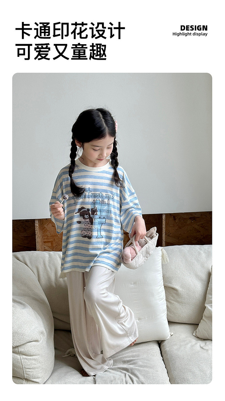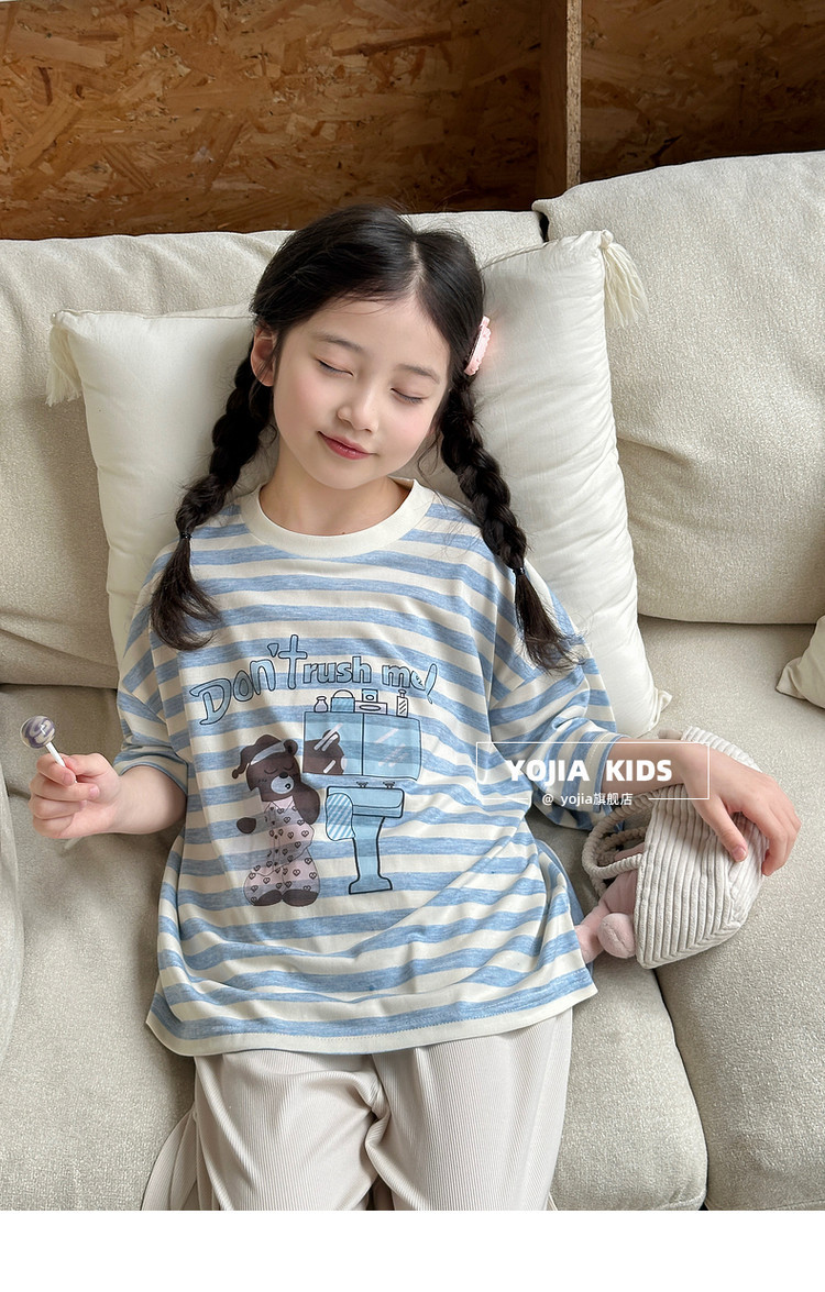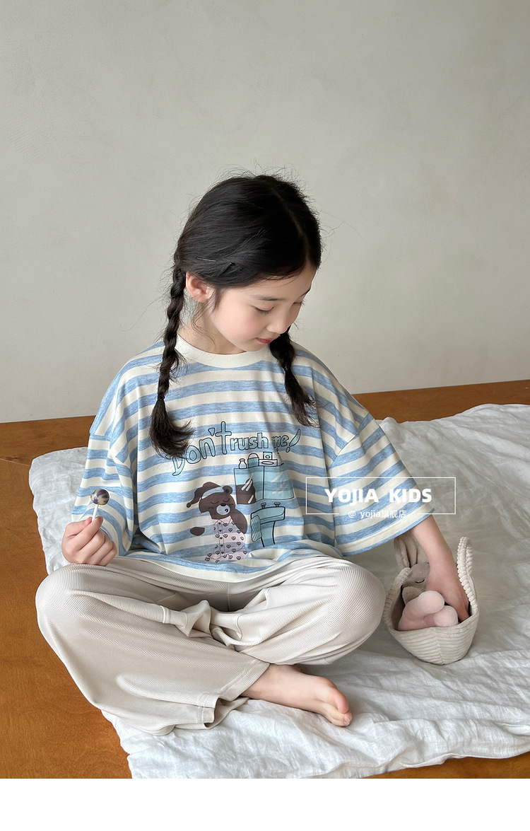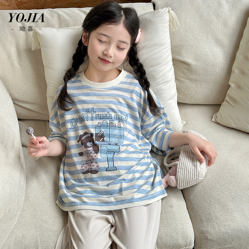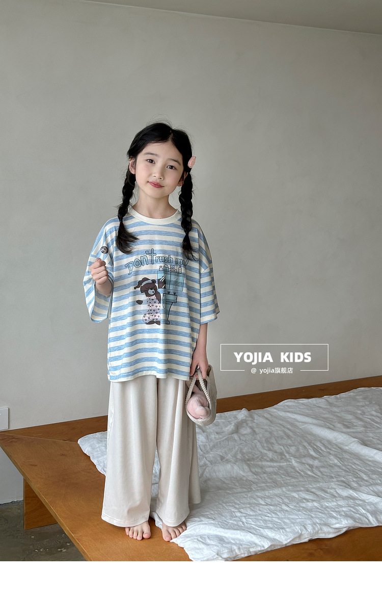YOJIA 여자 잠옷 여름 2025 새로운 스타일 어린 소녀 여름 정장 어린이 가정 의류 투피스 세트