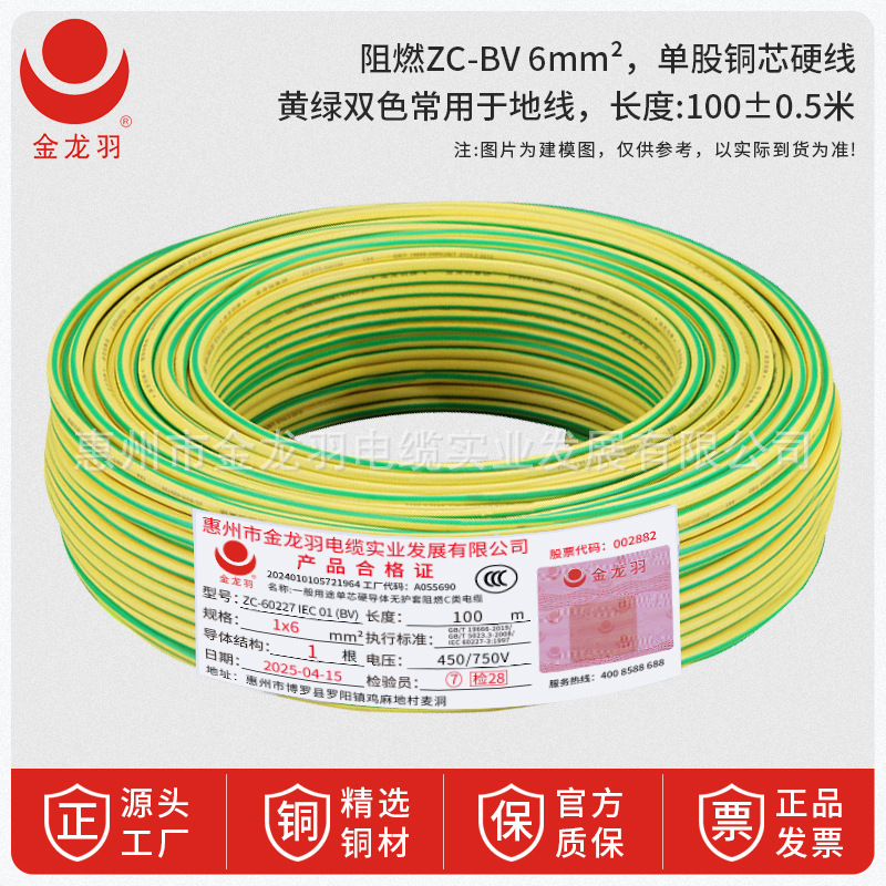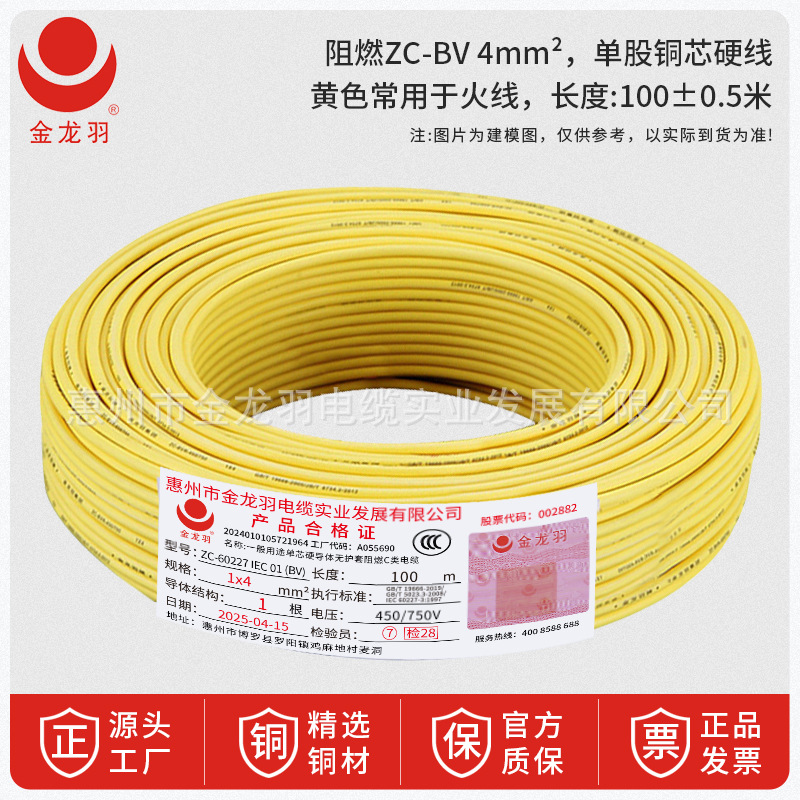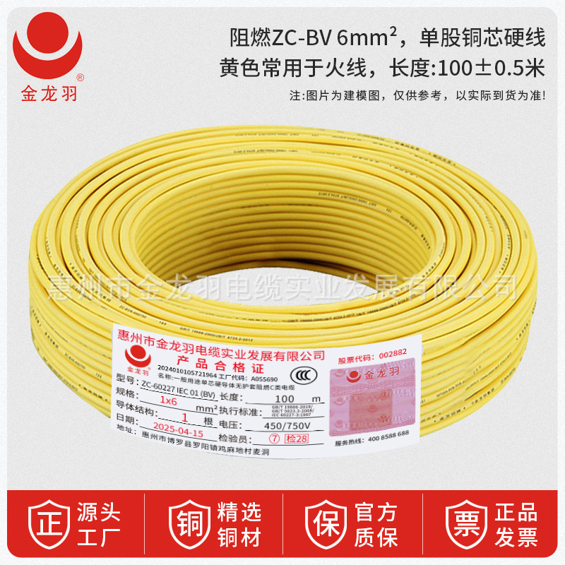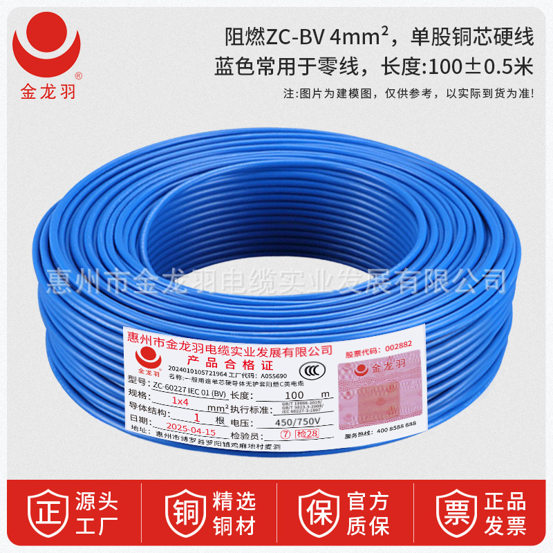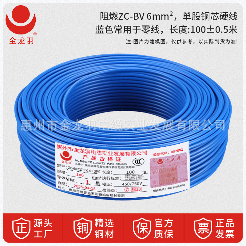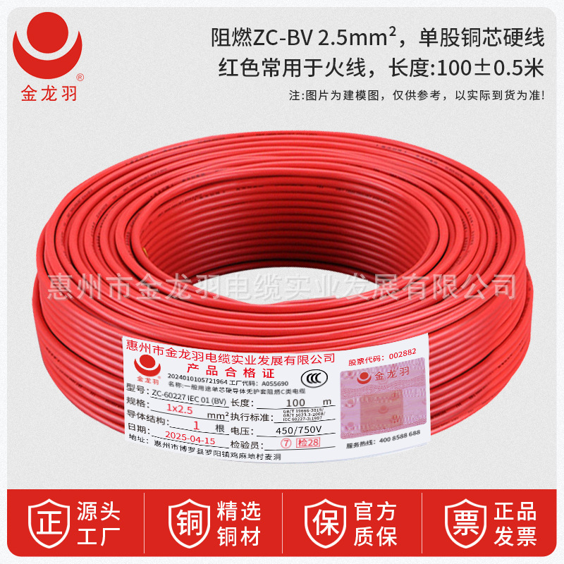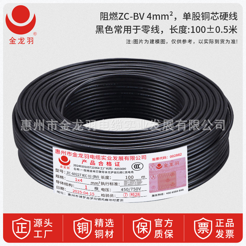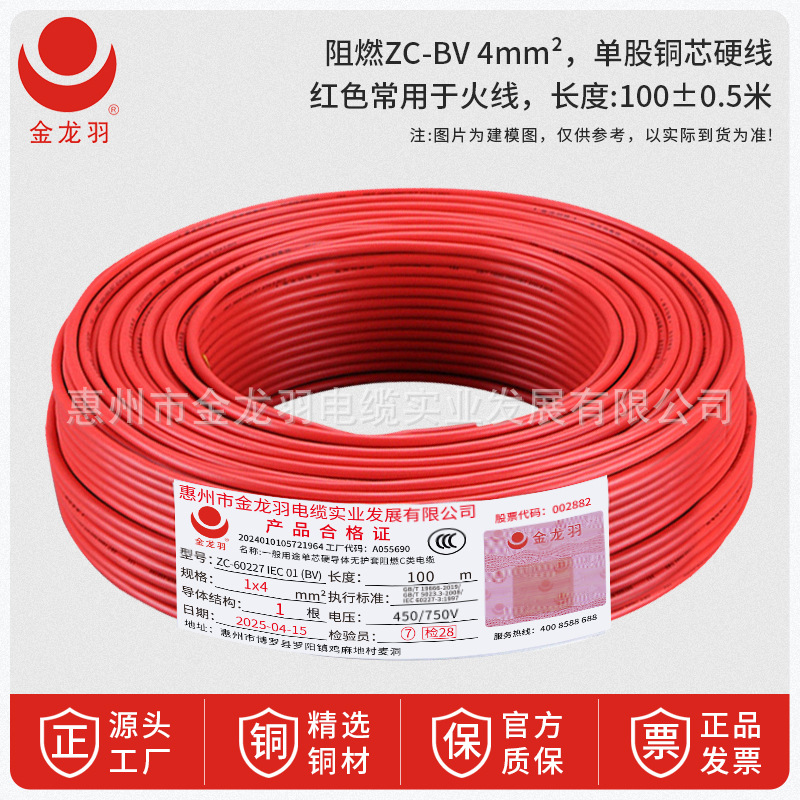 진롱규 철사 및 케이블 ZC-BV 1.5/2.5/4/6 광장 국가 표준 난연 단일 코어 단일 구리 와이어